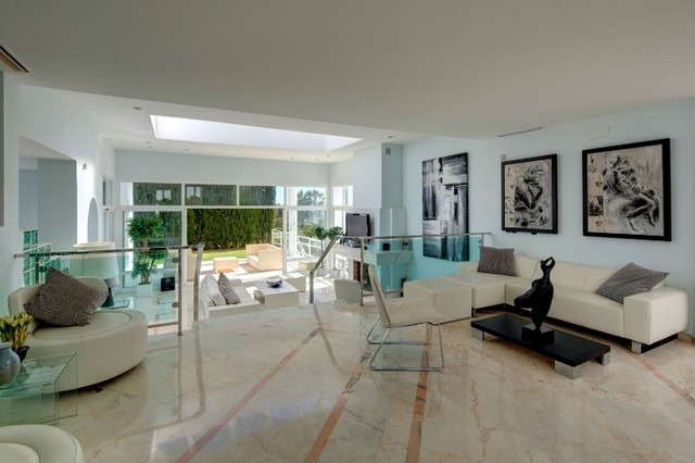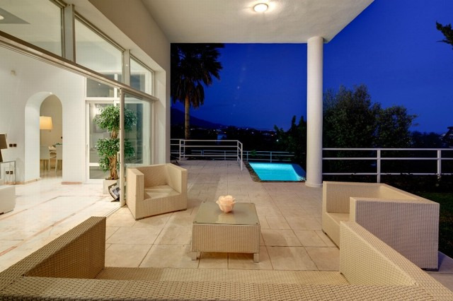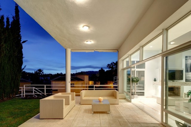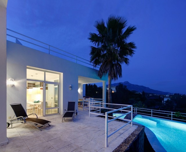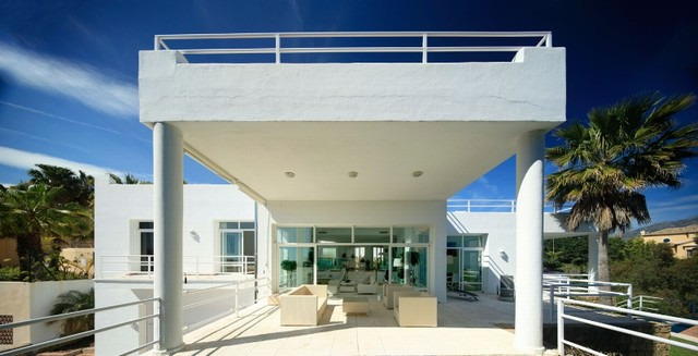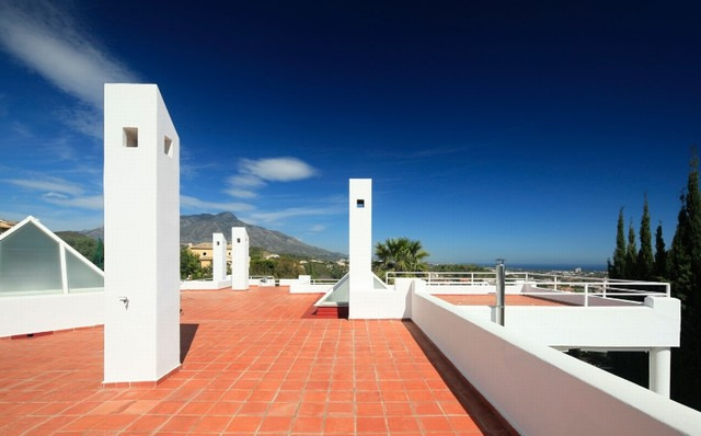 Superb contempoary villa in an elevated position in La Quinta.The main accomodation is built over one level offerining an open plan living area, Siematic kitchen, and 4 bedrooms. In addition on the lower level is separate guest accommodation. The villa features a large rooftop solarium, 3 car garage and sea views, laundry room and storage rooms, large heated pool and Jacuzzi and much more. Must be reserved!