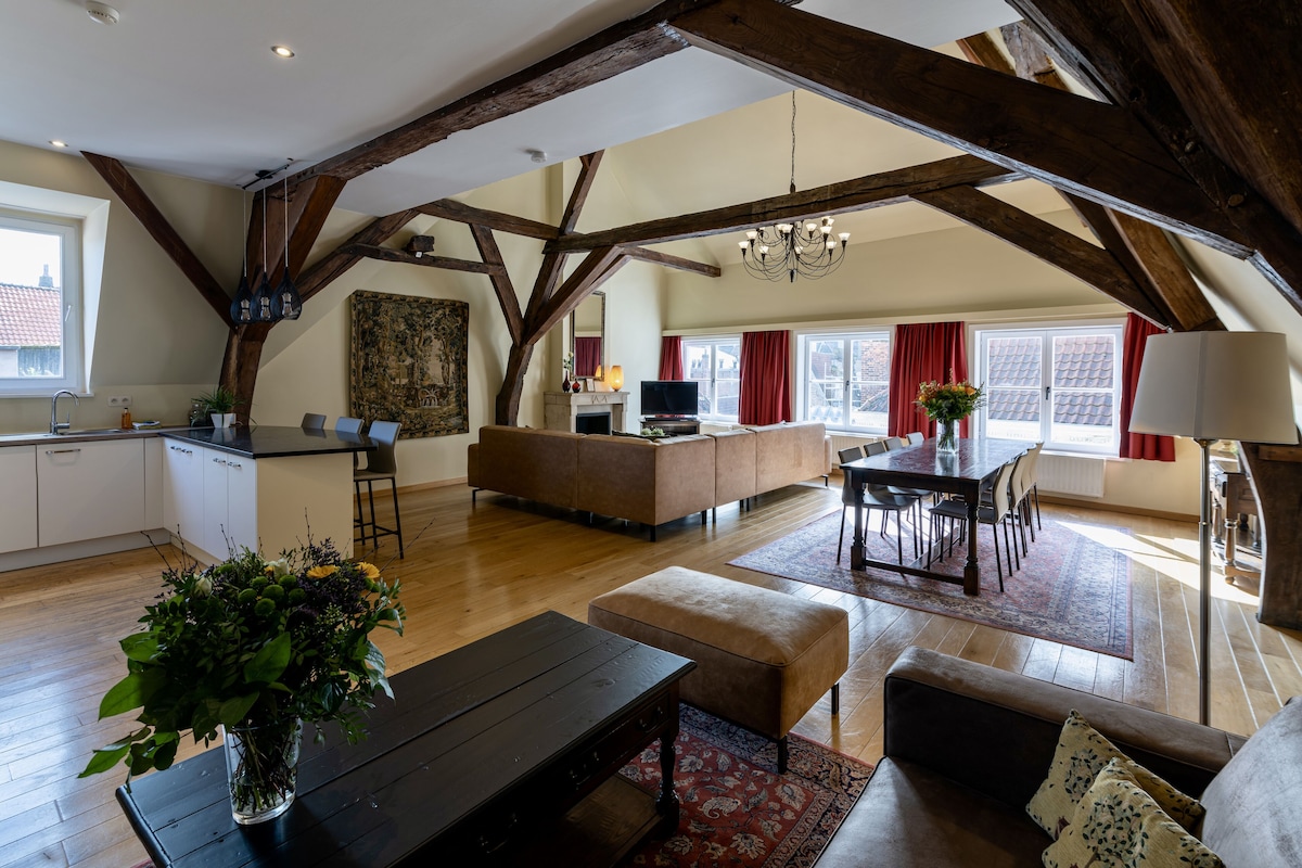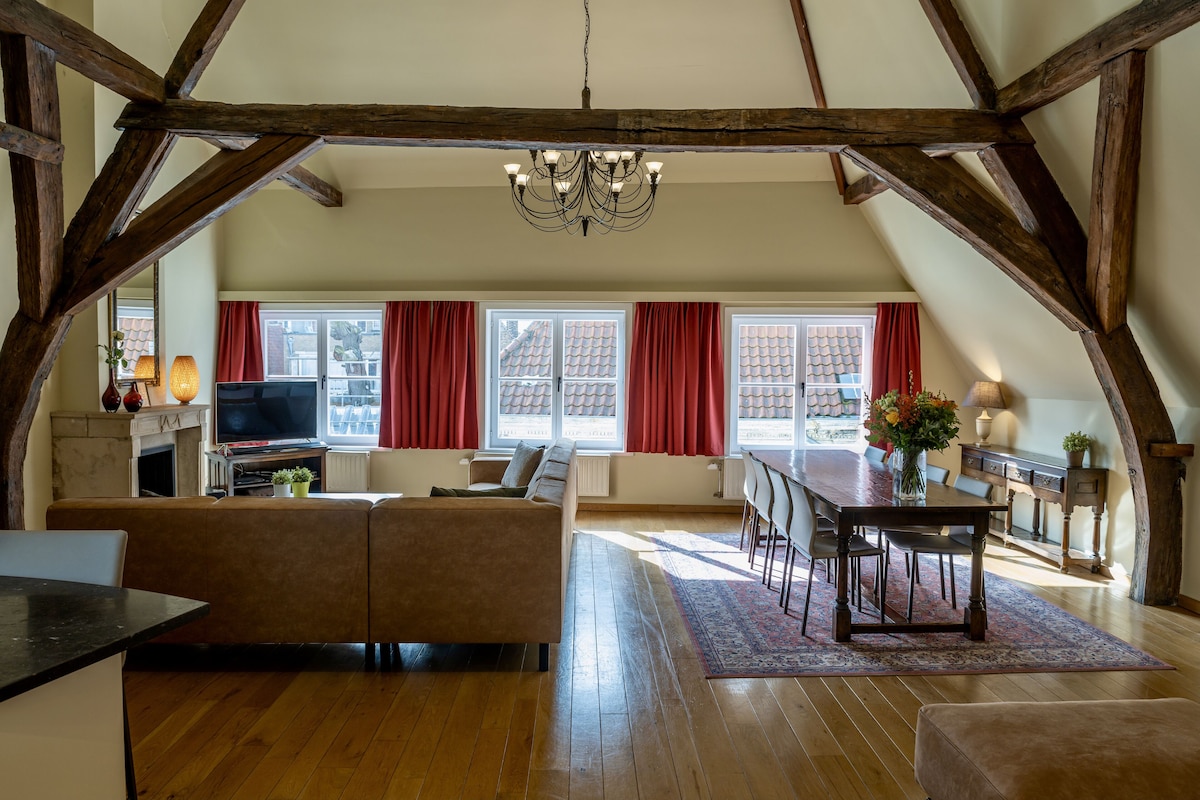 Despite its splendor, this apartment also has limitations. It is located on the top floor of the building and can only be reached along a stately spiral staircase and narrow stairway since no elevator may be installed. So travel light packed. There is also no (roof) terrace. For visitors who are less mobile, we recommend that you consider our other apartment St-Jan on the ground floor.