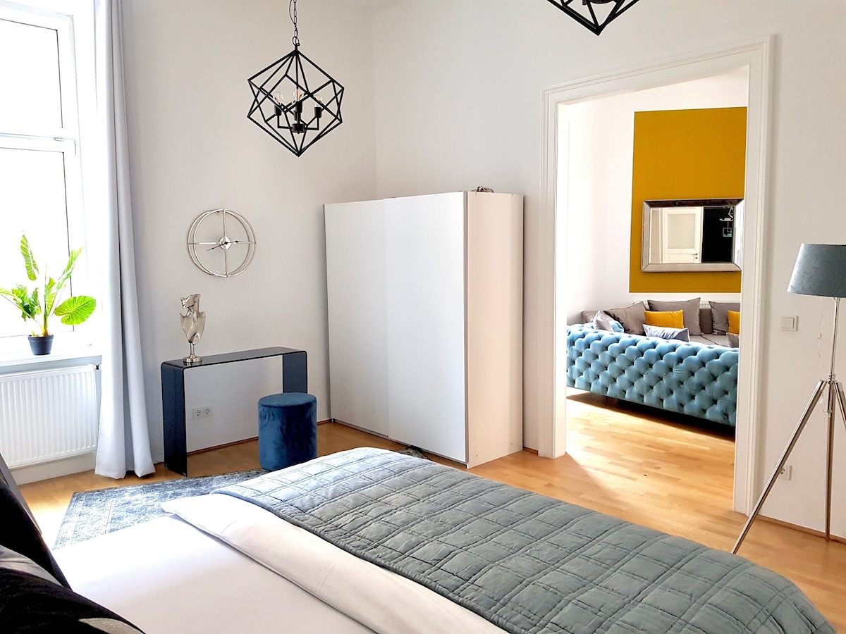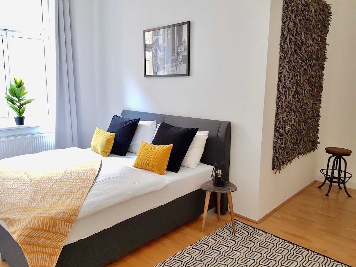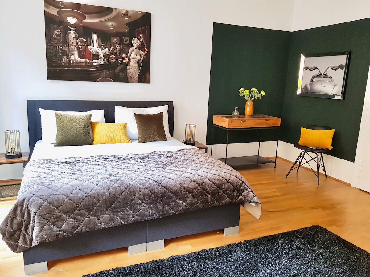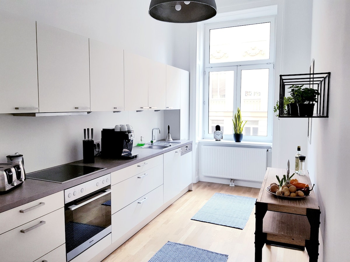 This new design apartment for 10 people is located in the well-known Mariahilferstr. and is therefore within walking distance to almost all sights of the city. The high ceilings of the old Viennese townhouses and the special taste of the designer makes you feel right when entering the apartment in the middle of the Viennese life. The 4 cozy bedrooms, 2 bathrooms, 1 extra toilet and the living-dining area and large kitchen offer plenty of space for nice days together.