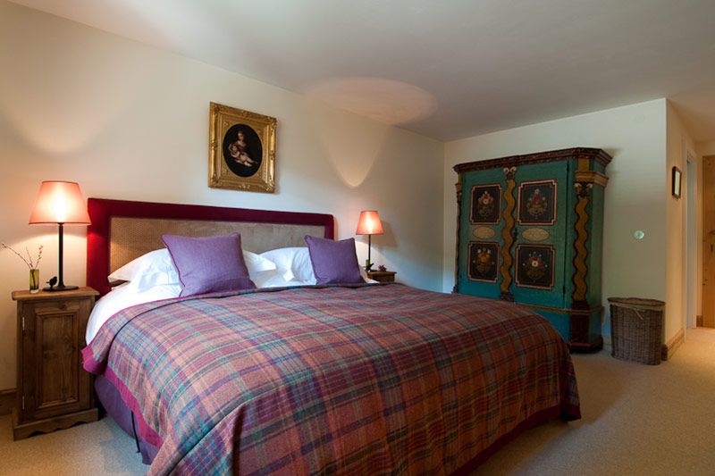 There is a staircase which leads from the main hallway to the first floor. A cosy enclave opens from the side of the staircase, with built-in wooden benches adorned with fur and a secret cupboard filled with Schnapps glasses. Also located between the ground and first floor is a twin/double bedroom with en-suite bathroom.
