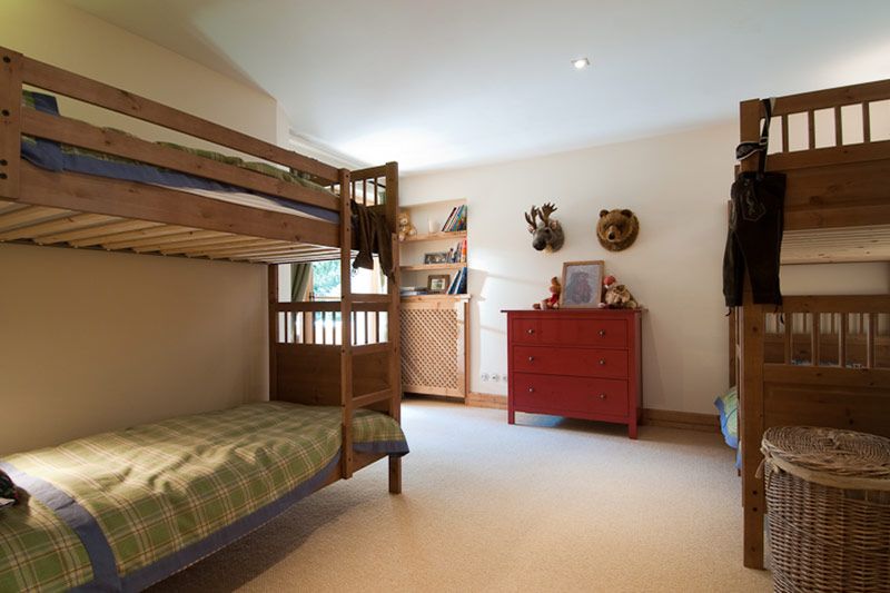 The lower ground floor has a further twin bedroom with an en-suite bathroom. A sunny 40 square metre playroom on this floor is the perfect venue for entertaining the children. The playroom converts into a high-tech cinema room. There is a wonderful sauna/steam room which fits four people comfortably and has a separate shower area and toilet. A laundry room, a professional kitchen, and a ski locker are also located on this floor.