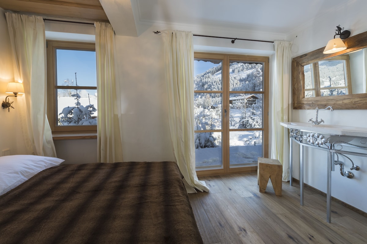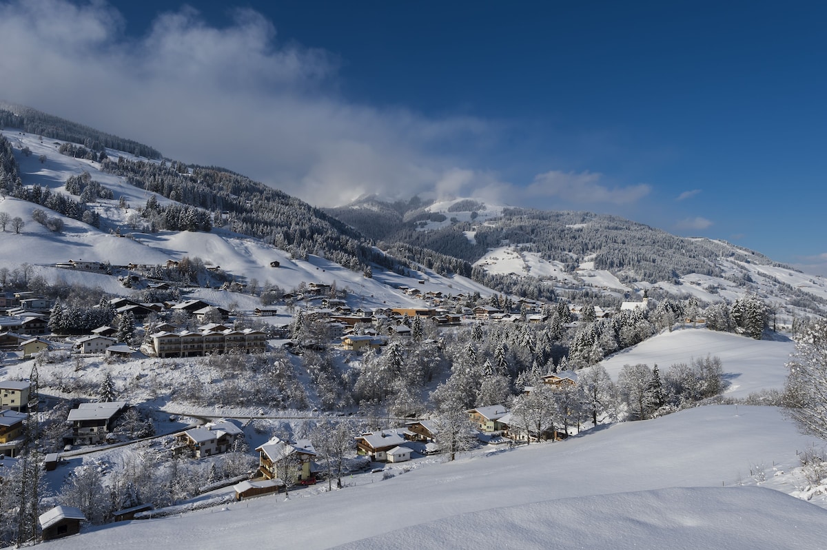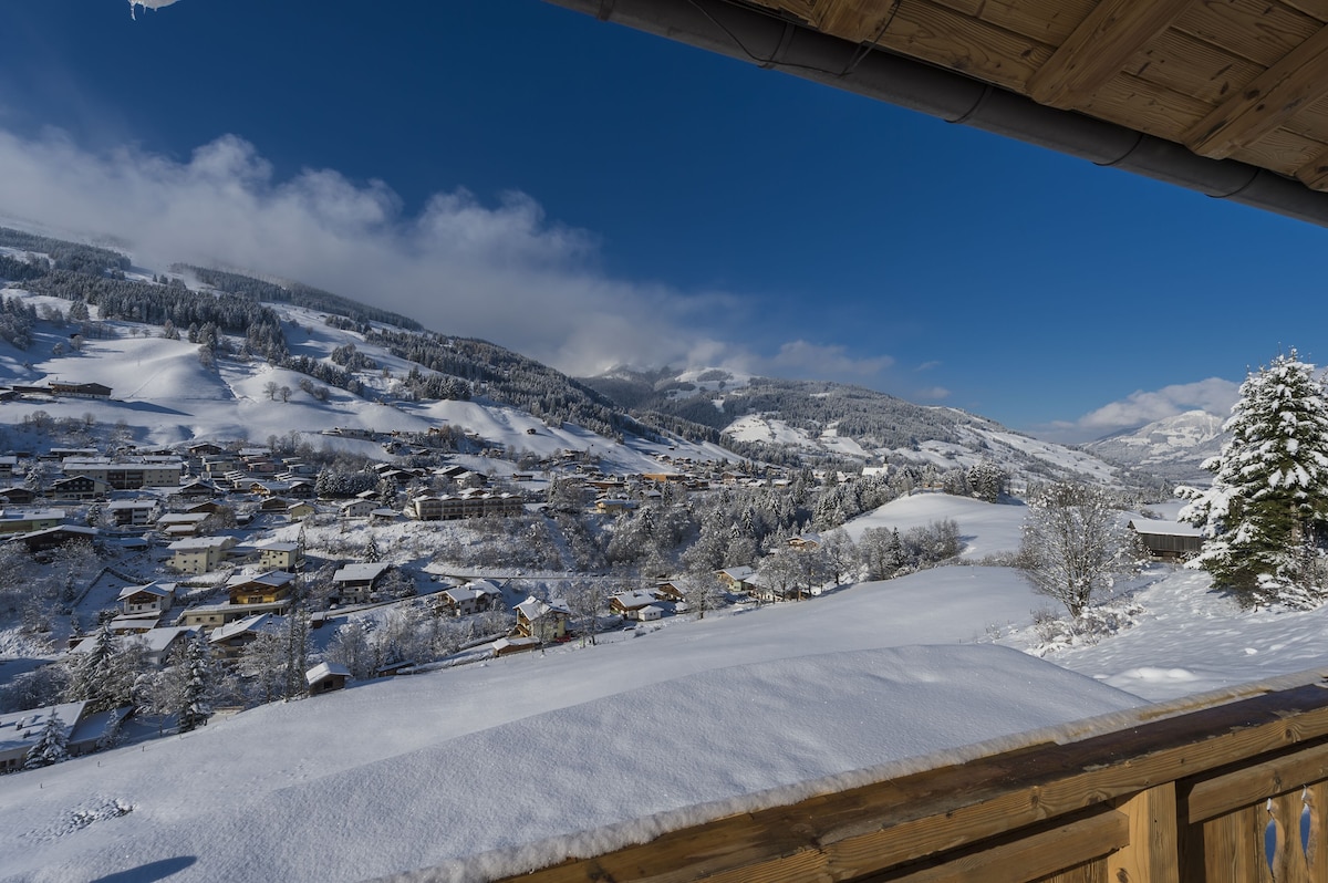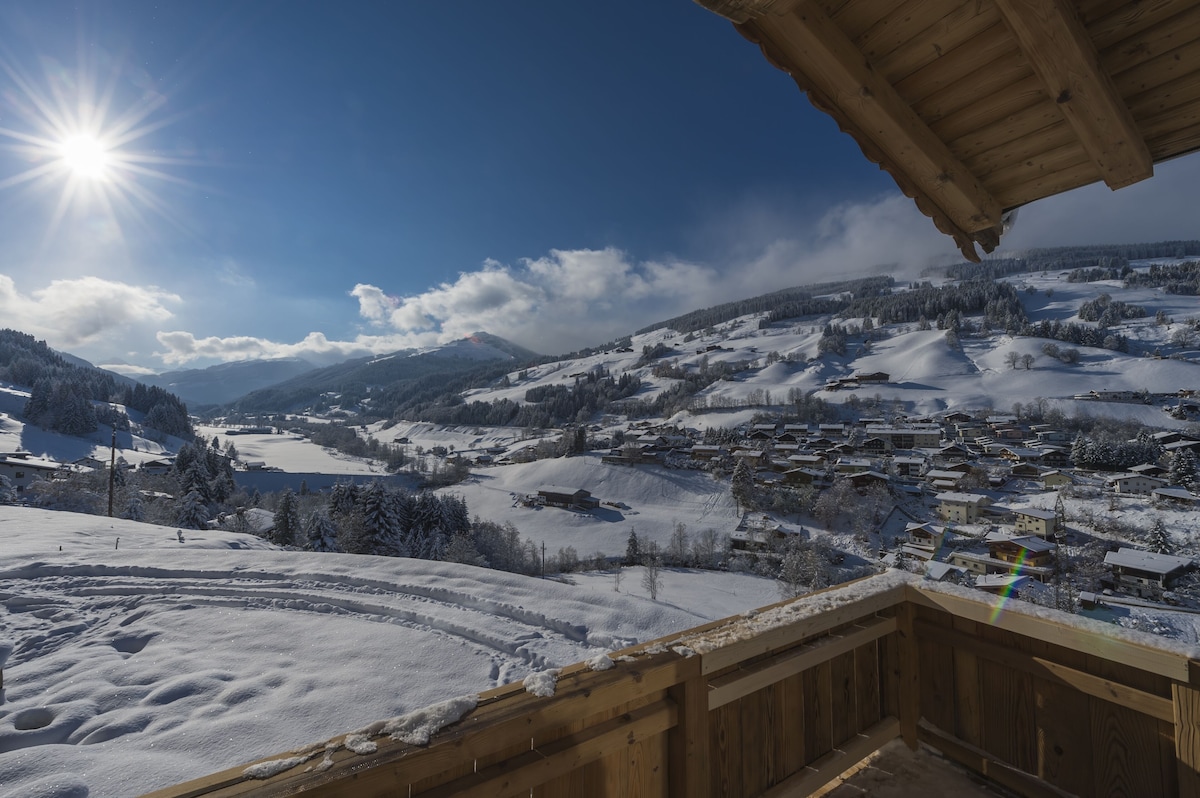 A luxury accommodation located a 5-minutes drive from the centre of Jochberg and the Kitzbühel Bergbahn Cable Cars. The luxurious chalet offers stunning views of the valley and towards the GrossGlockner, the village Jochberg and Kitzbühel and is built on highest standards with only natural and sustainable appliances. It features a full wooden wellness floor, several TVs, a well-equipped kitchen made from oak wood, a living room with an open fireplace in addition to a tiled stove. Guests can use a garden with a terrace with outdoor furniture and a ski storage room. Free private parking is possible on site.
