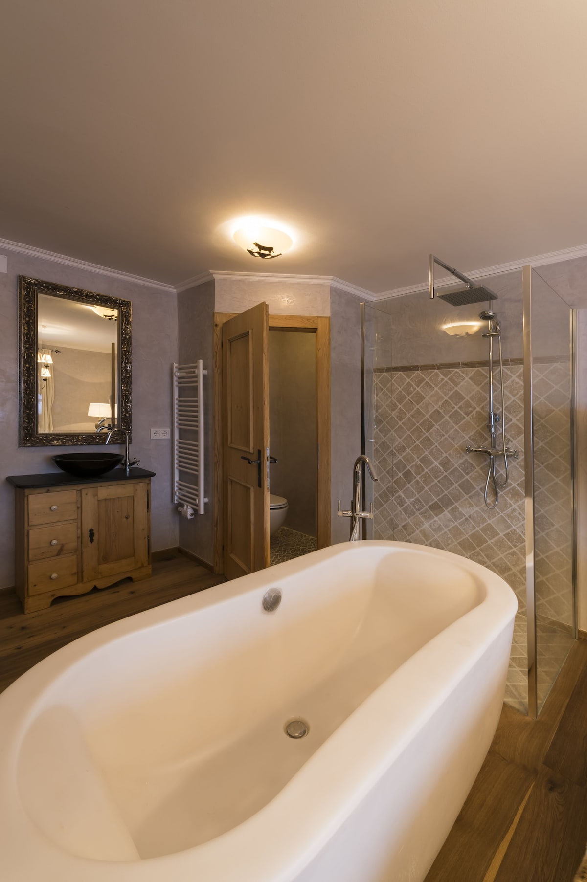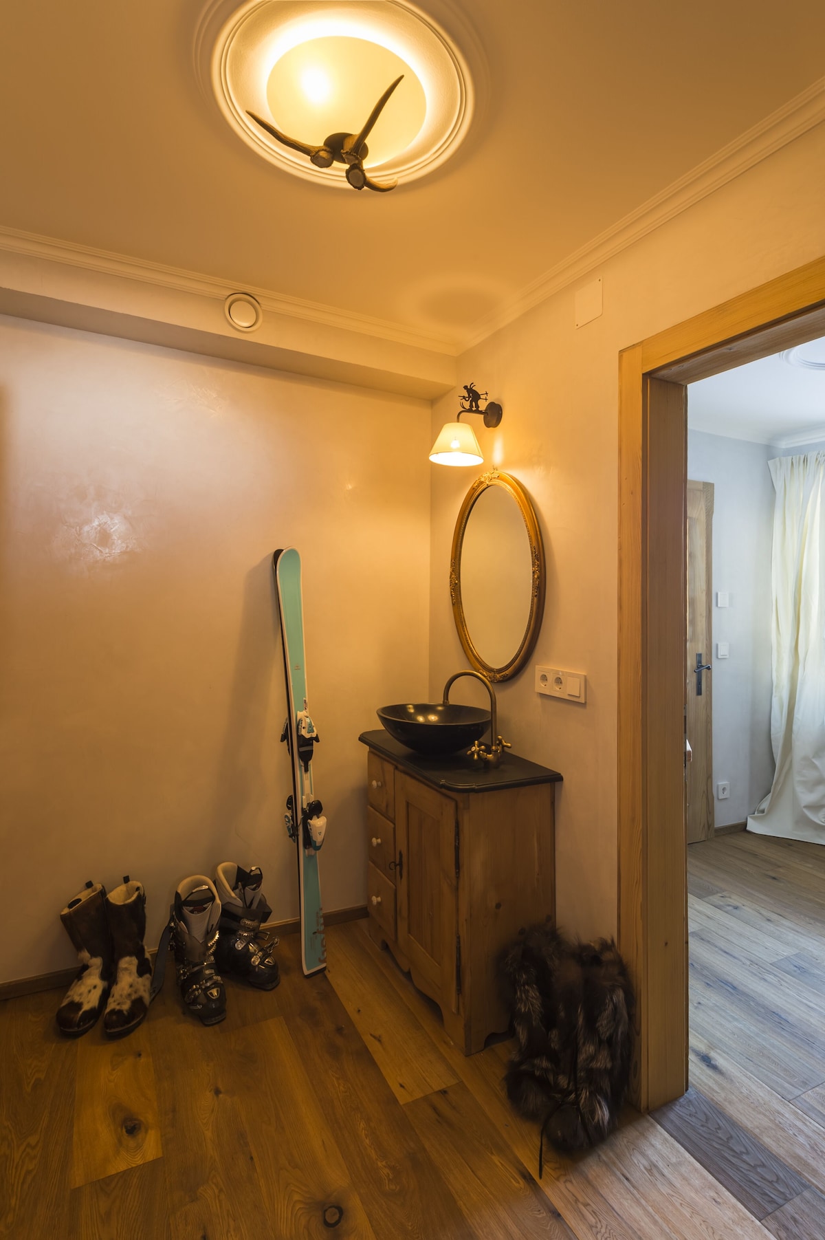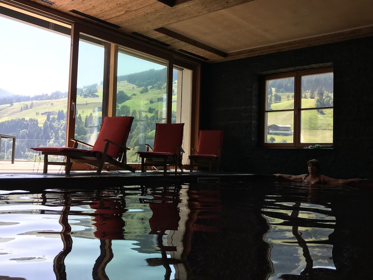A luxury accommodation located a 5-minutes drive from the centre of Jochberg and the Kitzbühel Bergbahn Cable Cars. The luxurious chalet offers stunning views of the valley and towards the GrossGlockner, the village Jochberg and Kitzbühel and is built on highest standards with only natural and sustainable appliances. It features a full wooden wellness floor, several TVs, a well-equipped kitchen made from oak wood, a living room with an open fireplace in addition to a tiled stove. Guests can use a garden with a terrace with outdoor furniture and a ski storage room. Free private parking is possible on site.