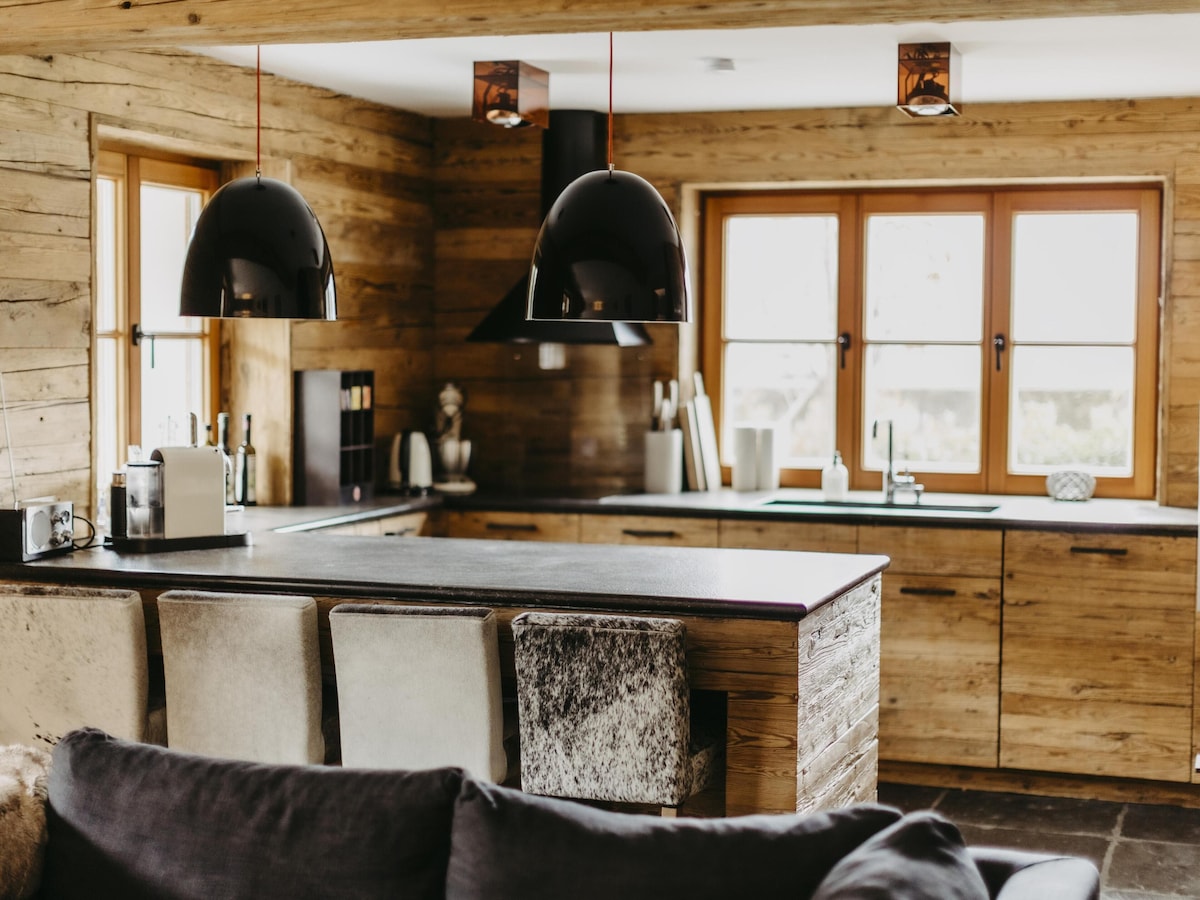 On the 1st floor: (open kitchen(dining table, seating area, radio, electric kettle, toaster, cooker, coffee machine, oven, dishwasher, fridge, fridge-freezer, Food processor, wine cooler), Living/diningroom(TV, dining table), Bedroom with bathroom(double bed, TV, bathtub with shower, washbasin, toilet), Bedroom with bathroom(double bed, TV, shower, washbasin, toilet), Bedroom with bathroom(double bed, TV, shower, washbasin, toilet), sauna, whirlpool, balcony, balcony, BBQ)