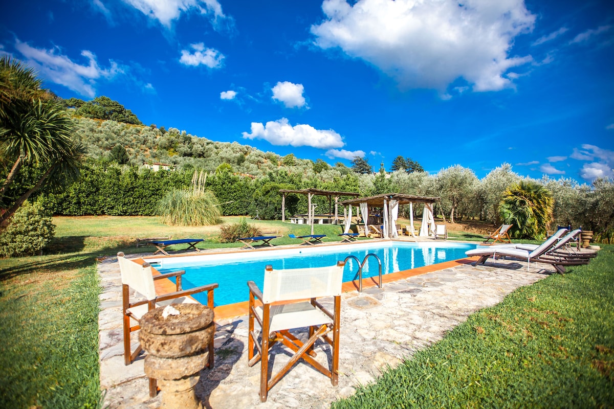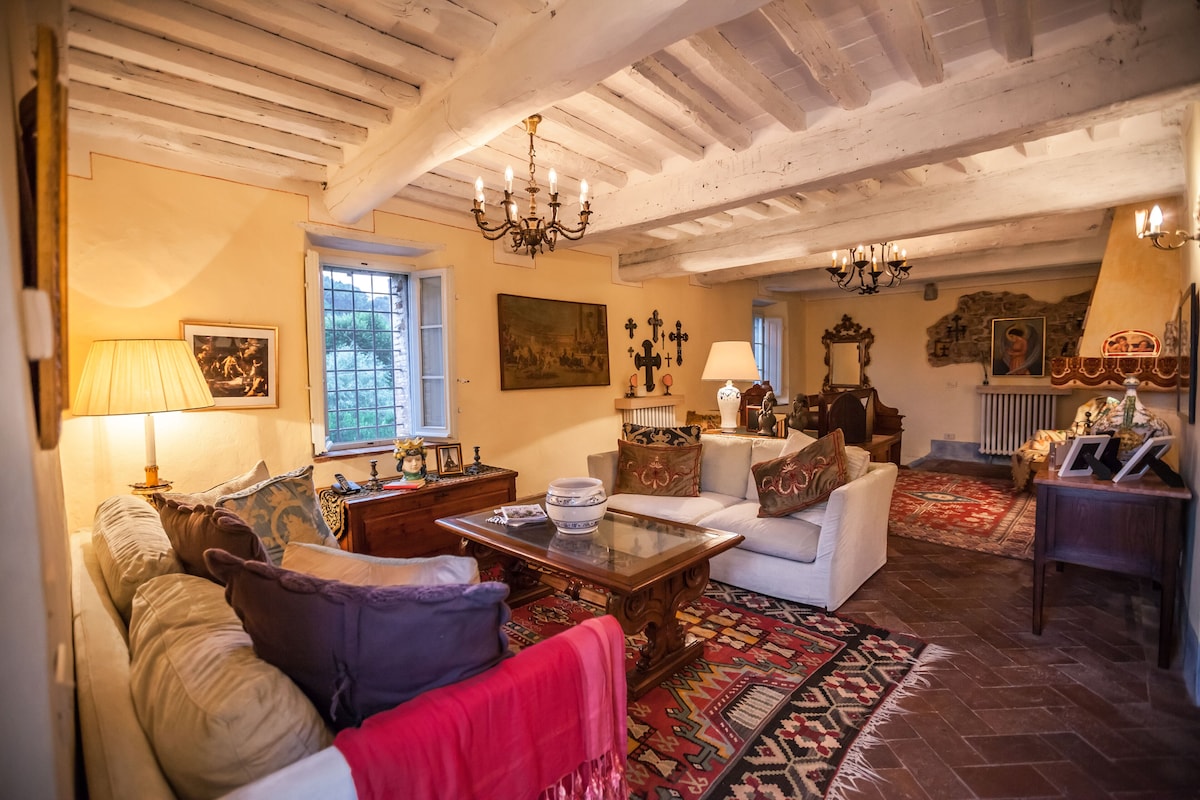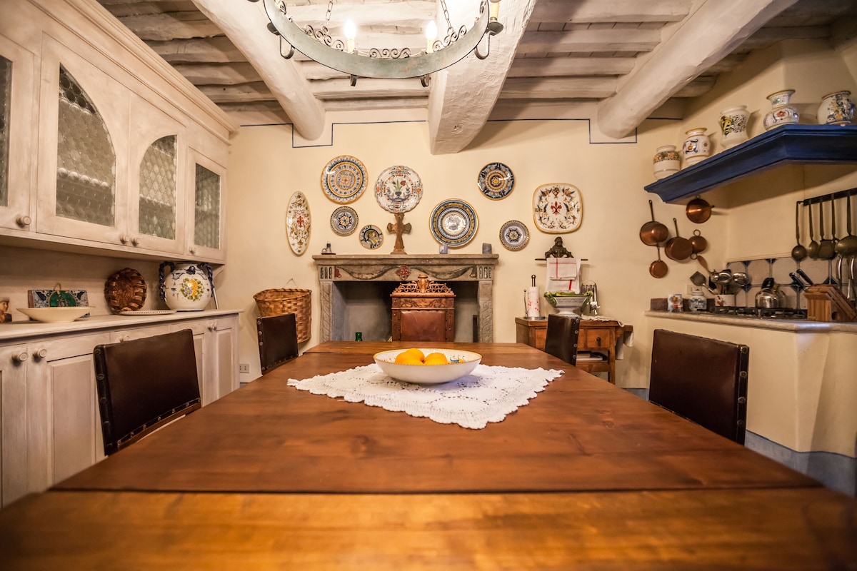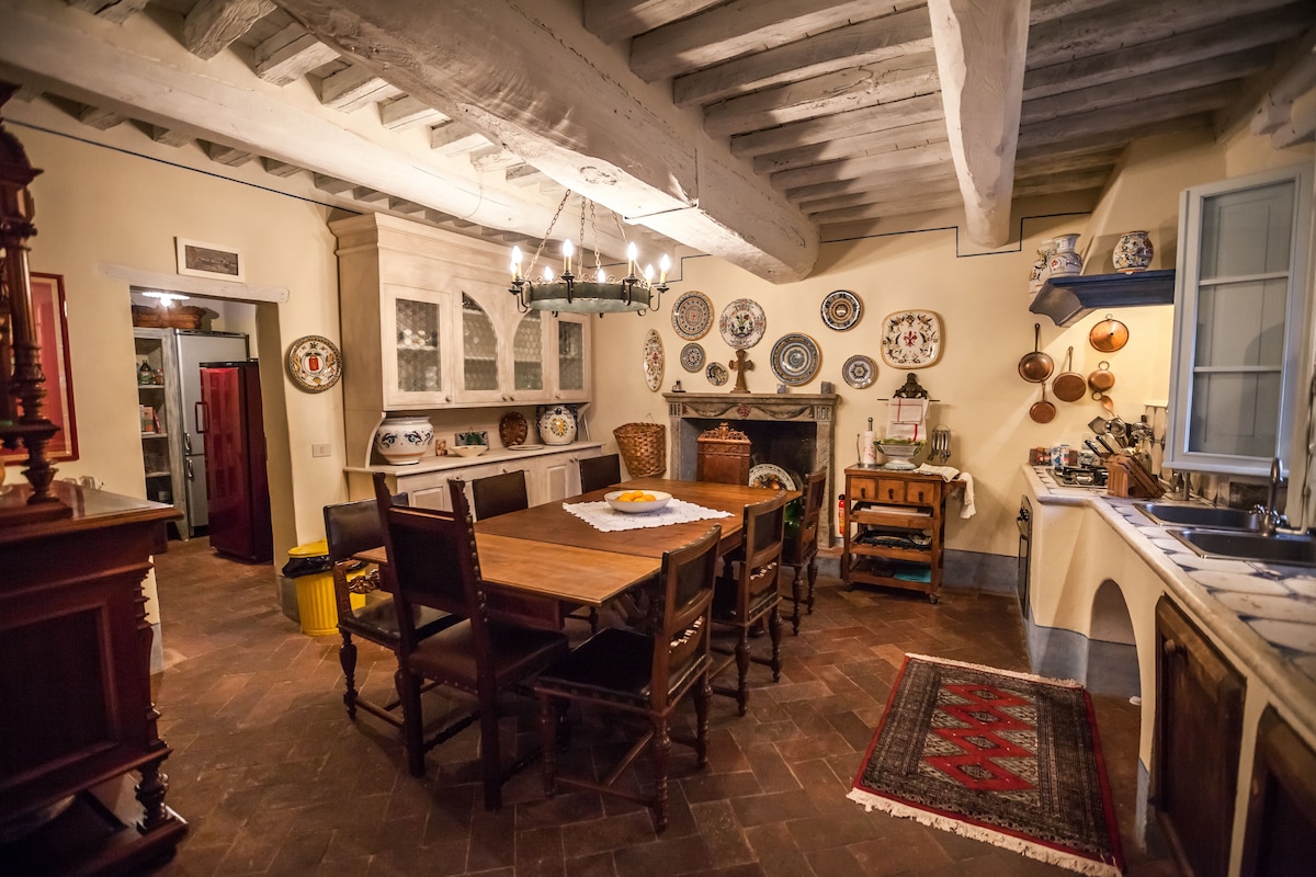 The main house has large kitchen, dining area ( inside and outside). Living room, 4 bedrooms and four bathrooms. There also is a wood-burning pizza oven located outside of house. Three refrigerators in the kitchen and running water throughout the houses. The second house (Casalina) has kitchen, dining area, living room, 1 bedroom and two bathrooms.