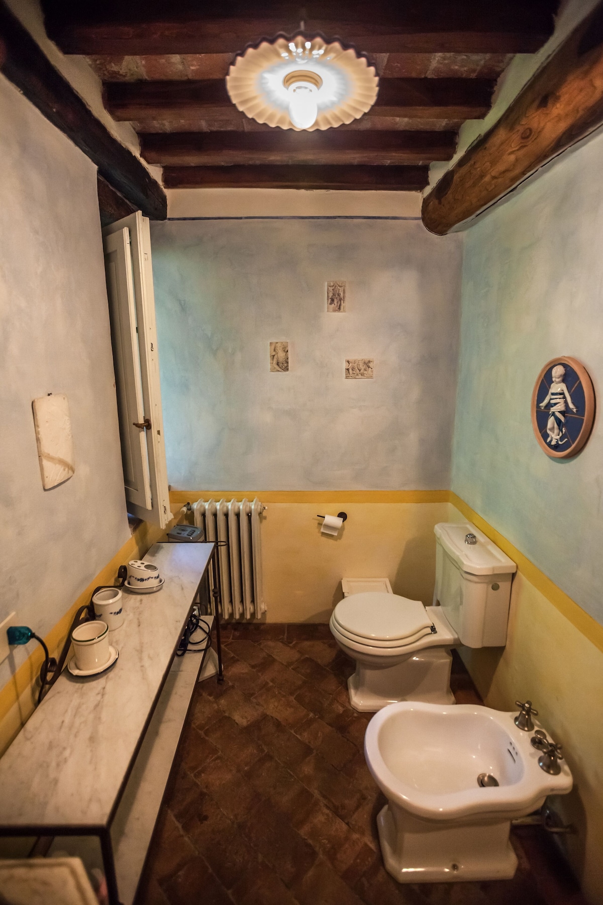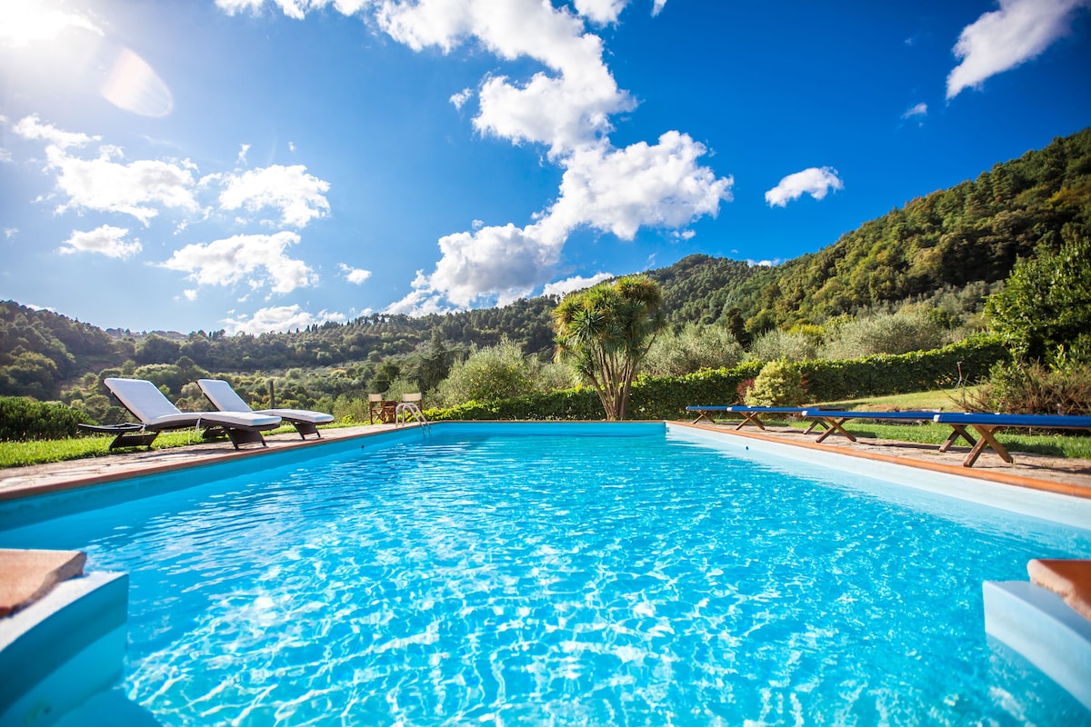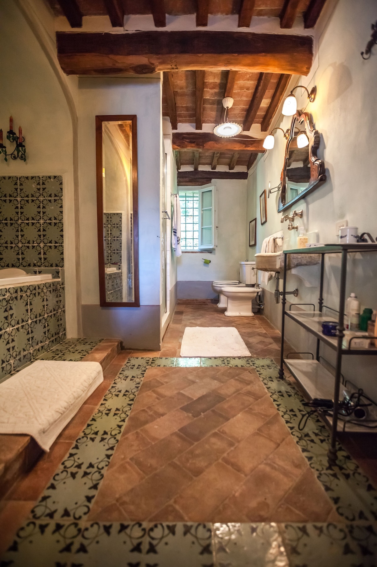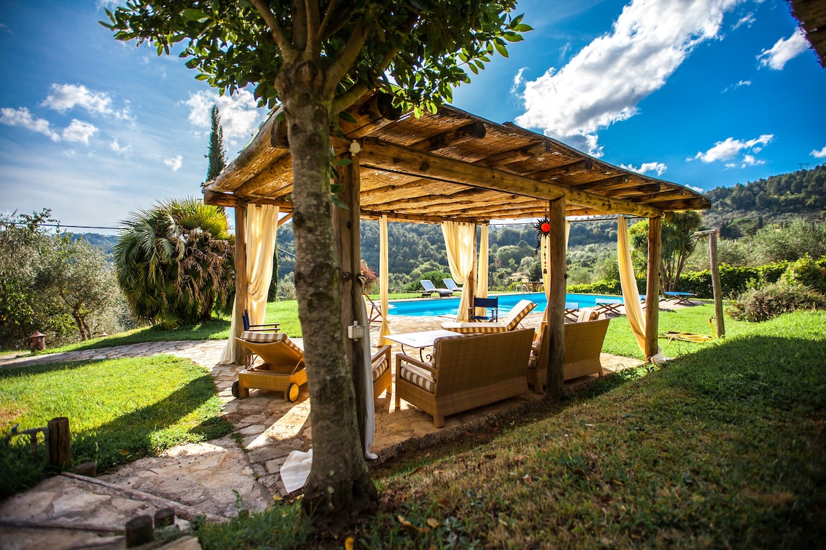 The main house has large kitchen, dining area ( inside and outside). Living room, 4 bedrooms and four bathrooms. There also is a wood-burning pizza oven located outside of house. Three refrigerators in the kitchen and running water throughout the houses. The second house (Casalina) has kitchen, dining area, living room, 1 bedroom and two bathrooms.