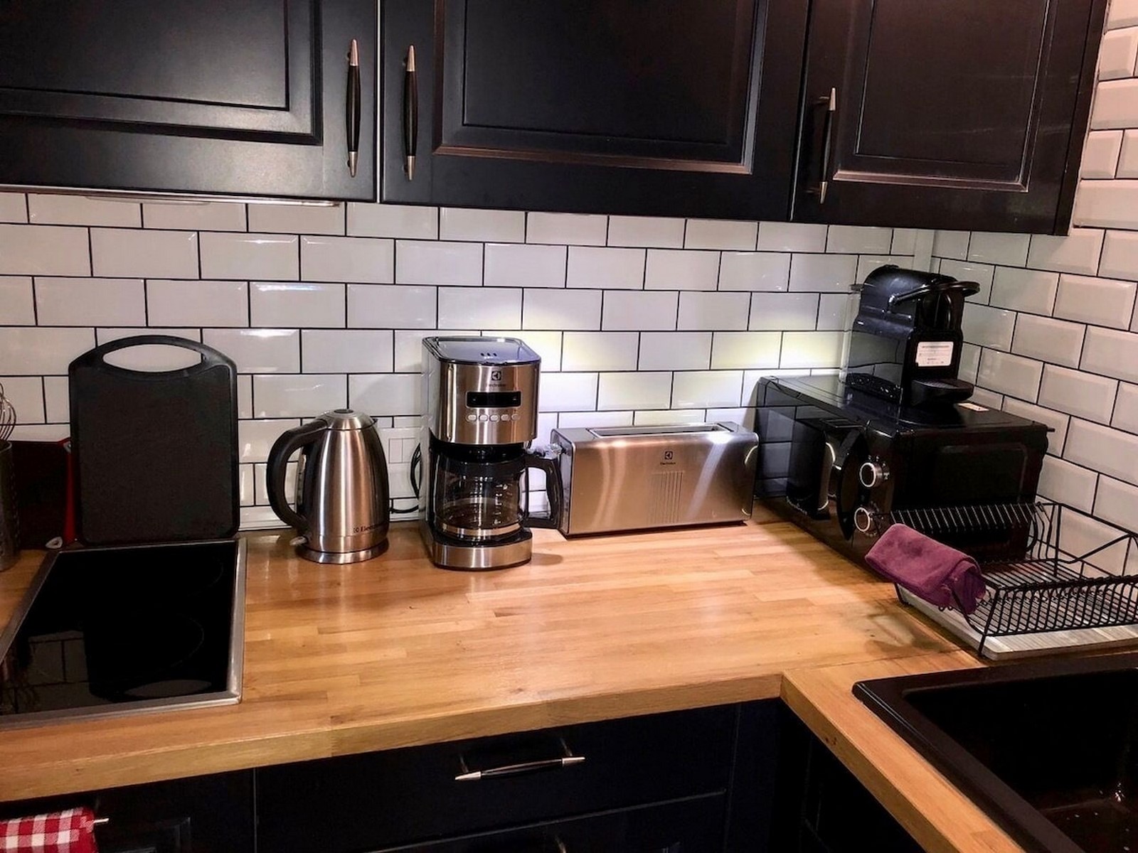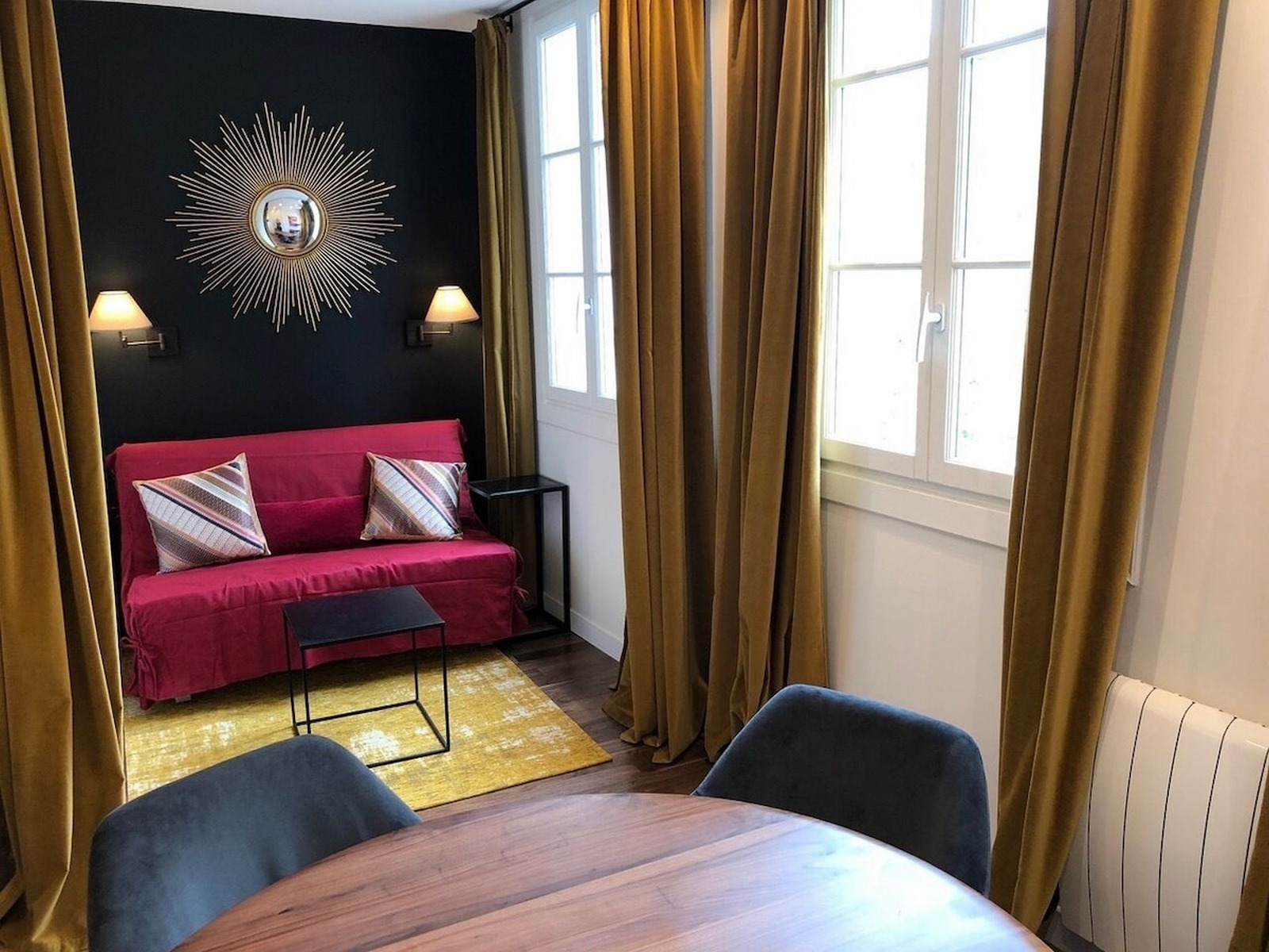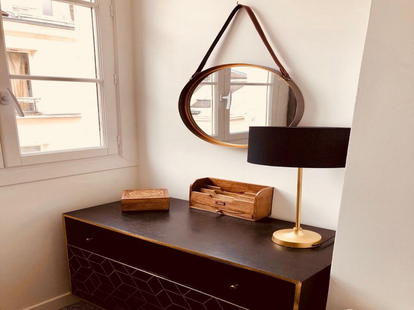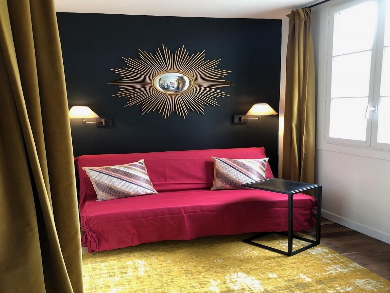 The bedroom, facing a quiet side street has a comfortable queen-sized bed with memory foam, perfect for a good night’s sleep after a day of enjoying all of the wonders of Paris. The bedroom also boasts plenty of storage space with a full closet and a beautiful chest of drawers. The Living room also has a comfortable convertible sofa bed in the quaint alcove and can be separated by a curtain for added privacy.