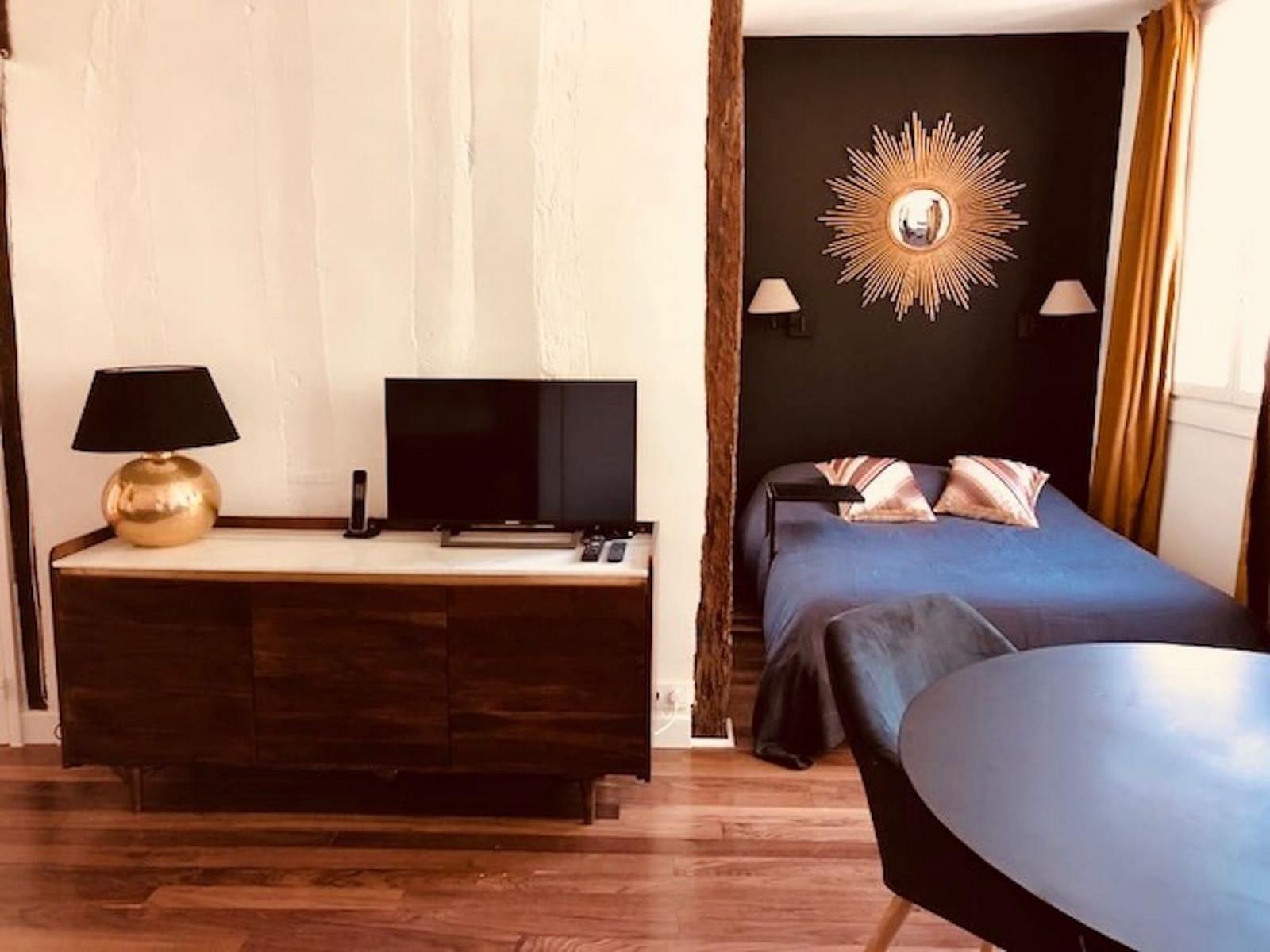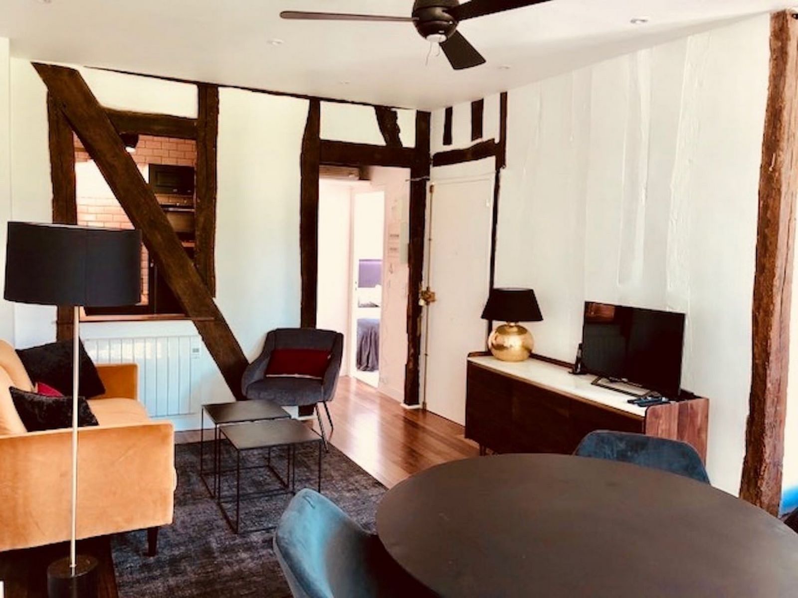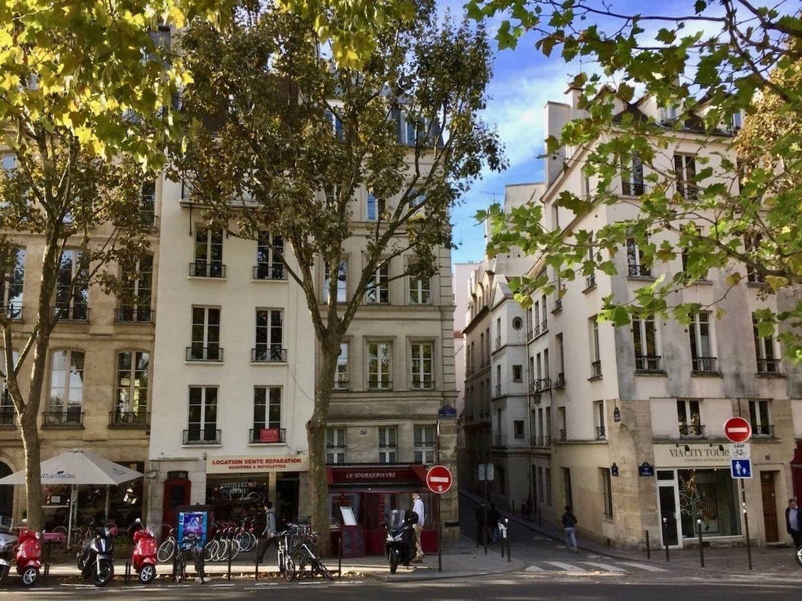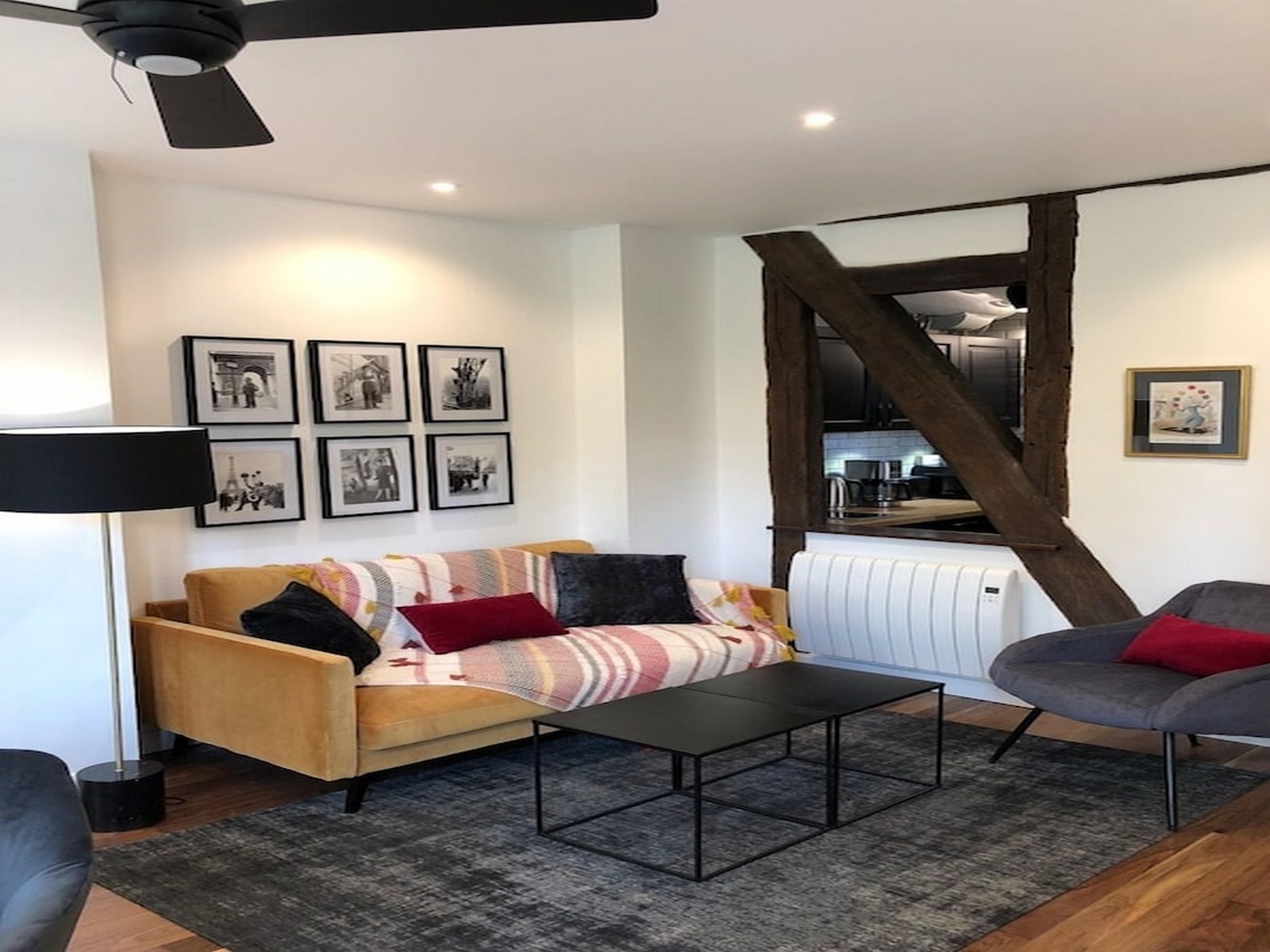 This lovely fourth-floor apartment is on one of the oldest Parisian streets, in a beautiful 16th Century corner building. Stepping in from the gentle bustle of restaurants and the museum of St Michel and the Marais just across the bridge, you are welcomed by a beautifully appointed apartment, with original wood wall beams. The Seine river, just out of your doorstep, is a rare convenient addition, offering places to dine or drink on the boats, visit Paris by water bus, enjoy romantic strolls along the water, or keep in shape with a beautiful morning run.