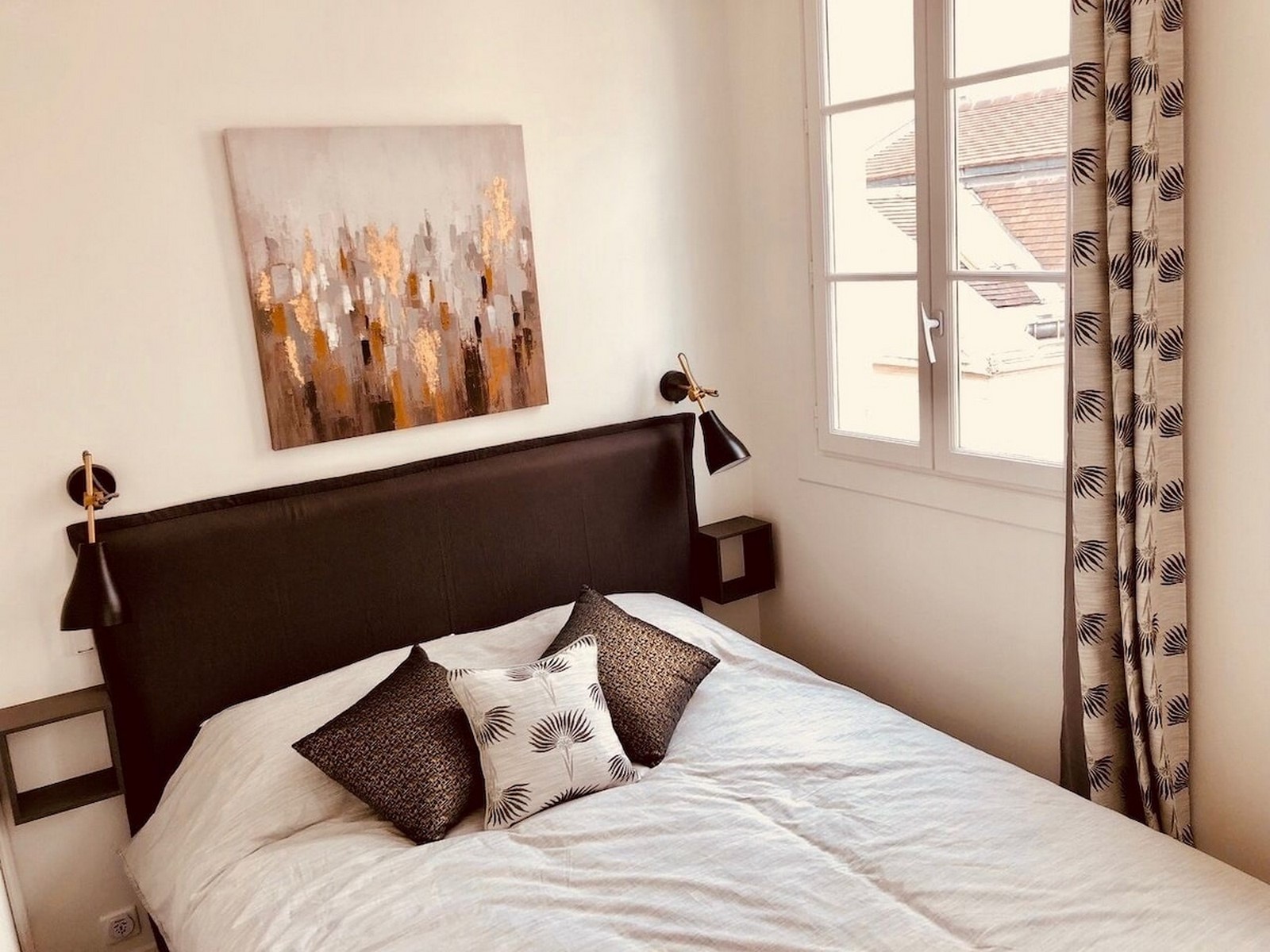 This fresh, light-filled apartment has everything you need to relax after a day in the city. Step into the elegant living room, decorated with stylish furniture; you can let yourself unwind on the comfortable furnishings. The well-equipped kitchen with a refrigerator, dishwasher, convection oven, microwave as well as a Nespresso machine, and a traditional coffee maker is a perfect area to prepare breakfast with delicious fare from the local French bakery. Likewise, you can make a gourmet evening meal you would have gathered from the local artisanal food stores or the outdoor market just one block away. You will undoubtedly enjoy the unique atmosphere of the neighborhood and the exquisite view of Notre Dame from your dining table.