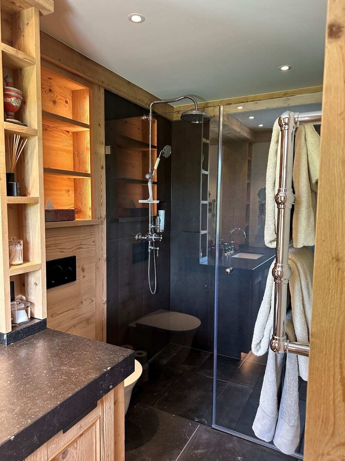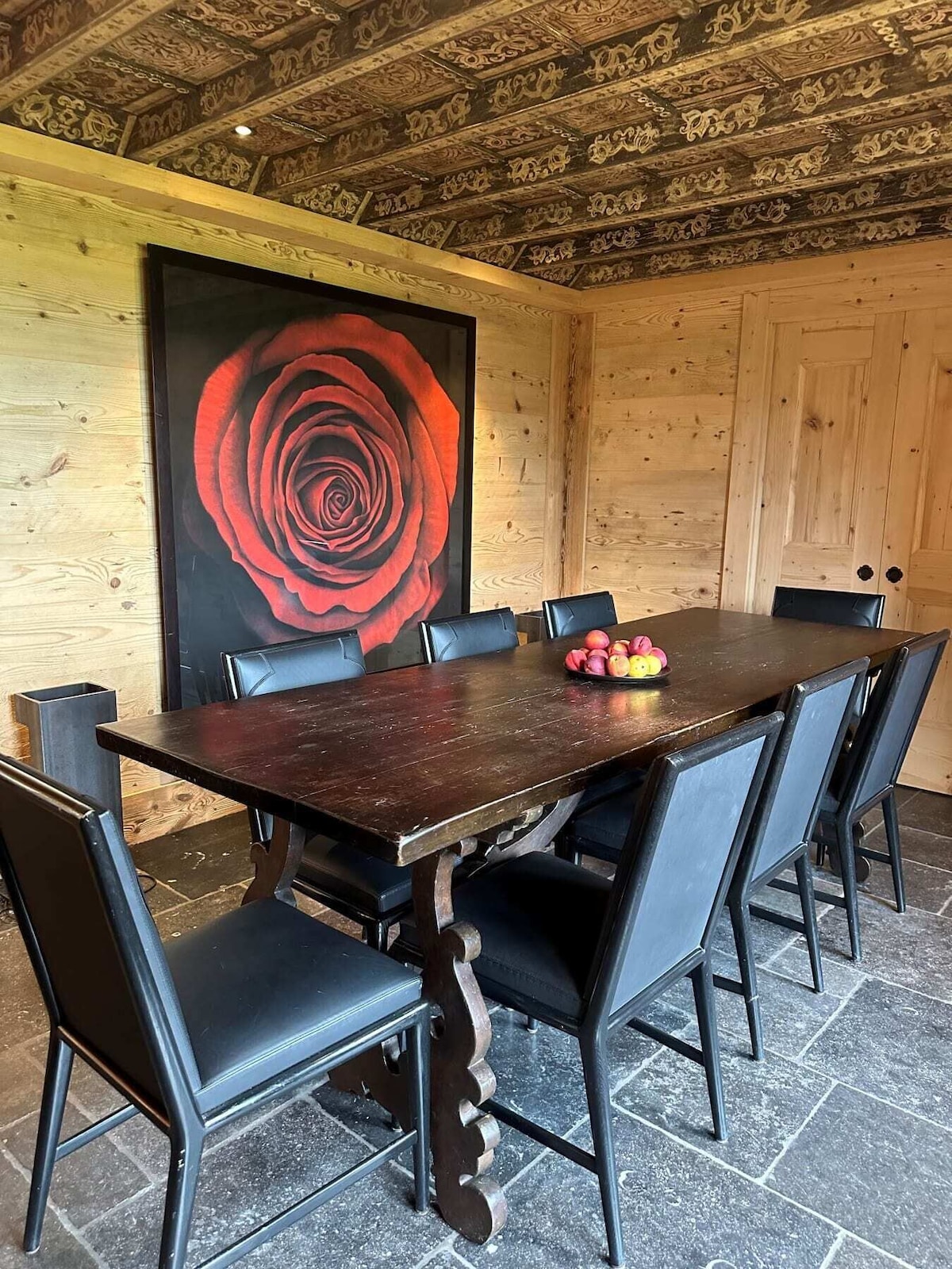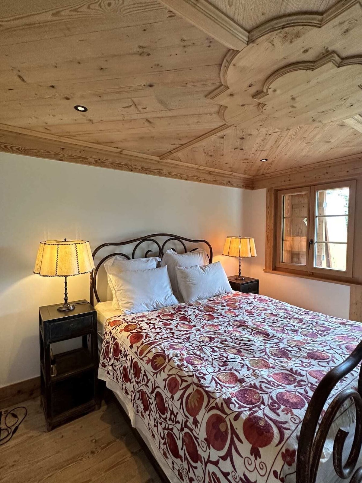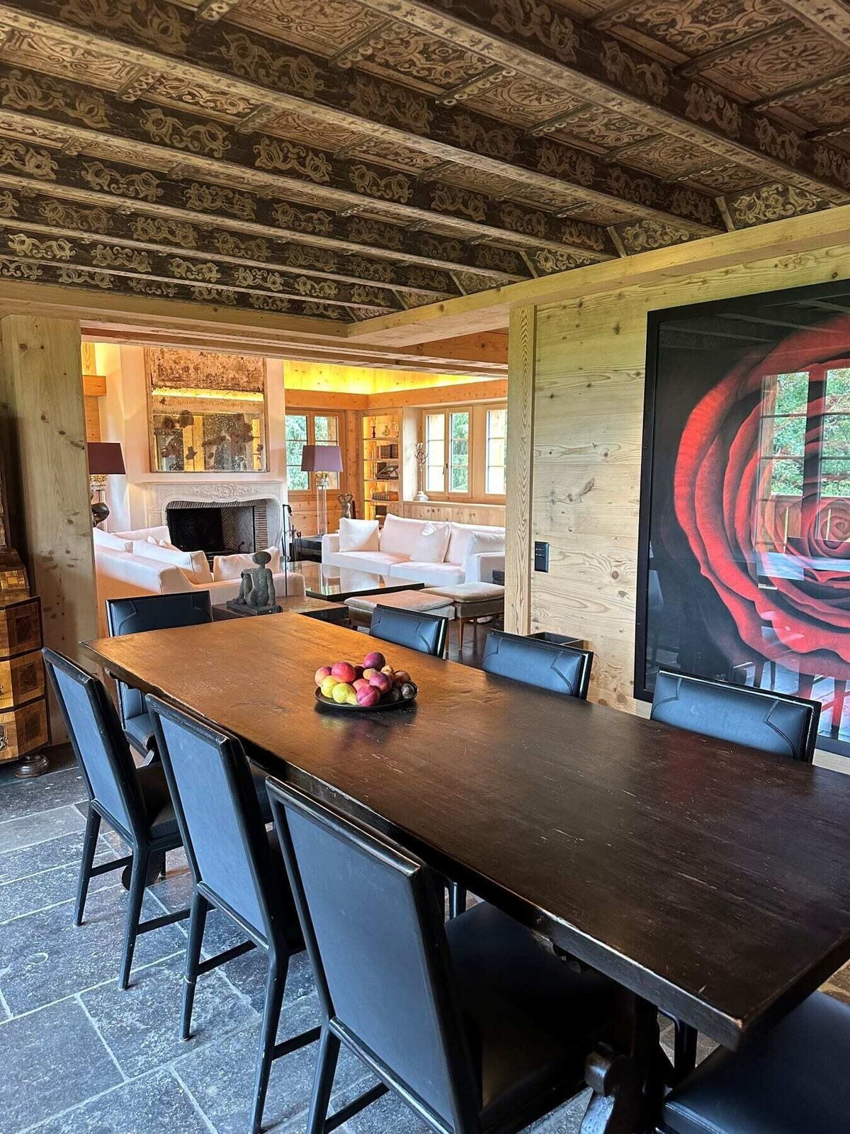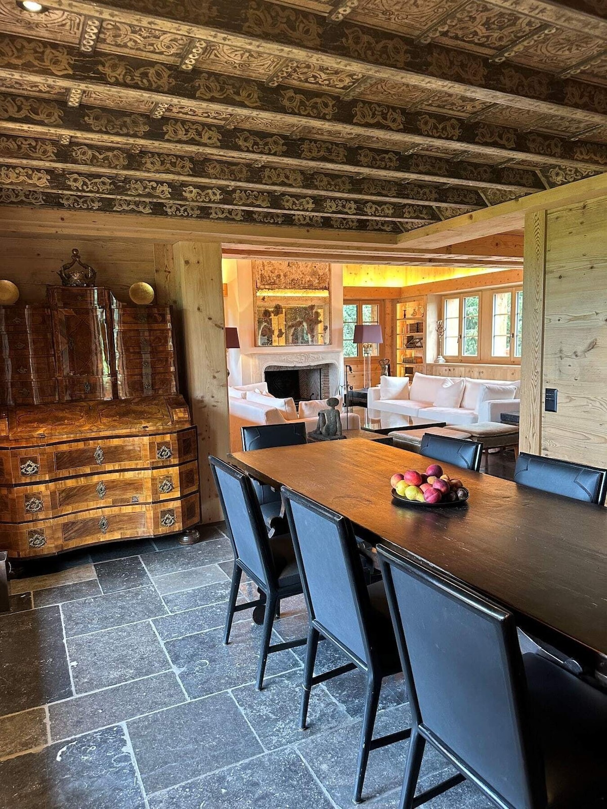 It features 4 spacious bedrooms, each with its own ensuite bathroom, comfortably sleeping 8 guests. The expansive living room and dining area provide a perfect setting for memorable gatherings. For relaxation, indulge in the authentic Norwegian wood-fired hot tub or rejuvenate in the Turkish Bath. Parking is a breeze with 5 available spots, including 2 covered. Experience the perfect blend of nature’s beauty and modern luxury in Gstaad.