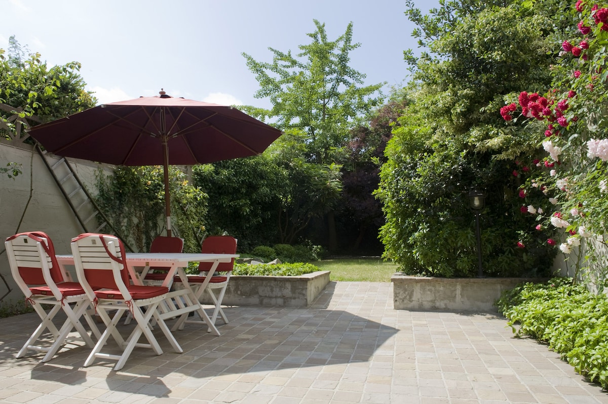 A cosy south-facing garden, beautiful sunny and spacious terrace with garden furniture