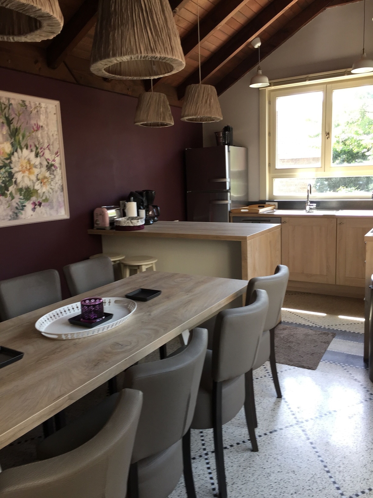 Kitchen fully equipped with dishwasher, oven, microwave, induction hob, fridge-freezer, coffee machine, Senseo coffee machine, Nespresso coffee machine, toaster, kettle.