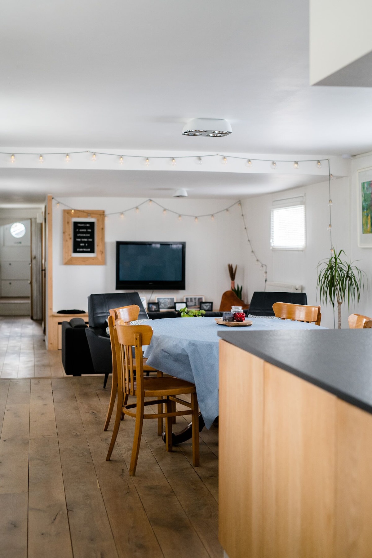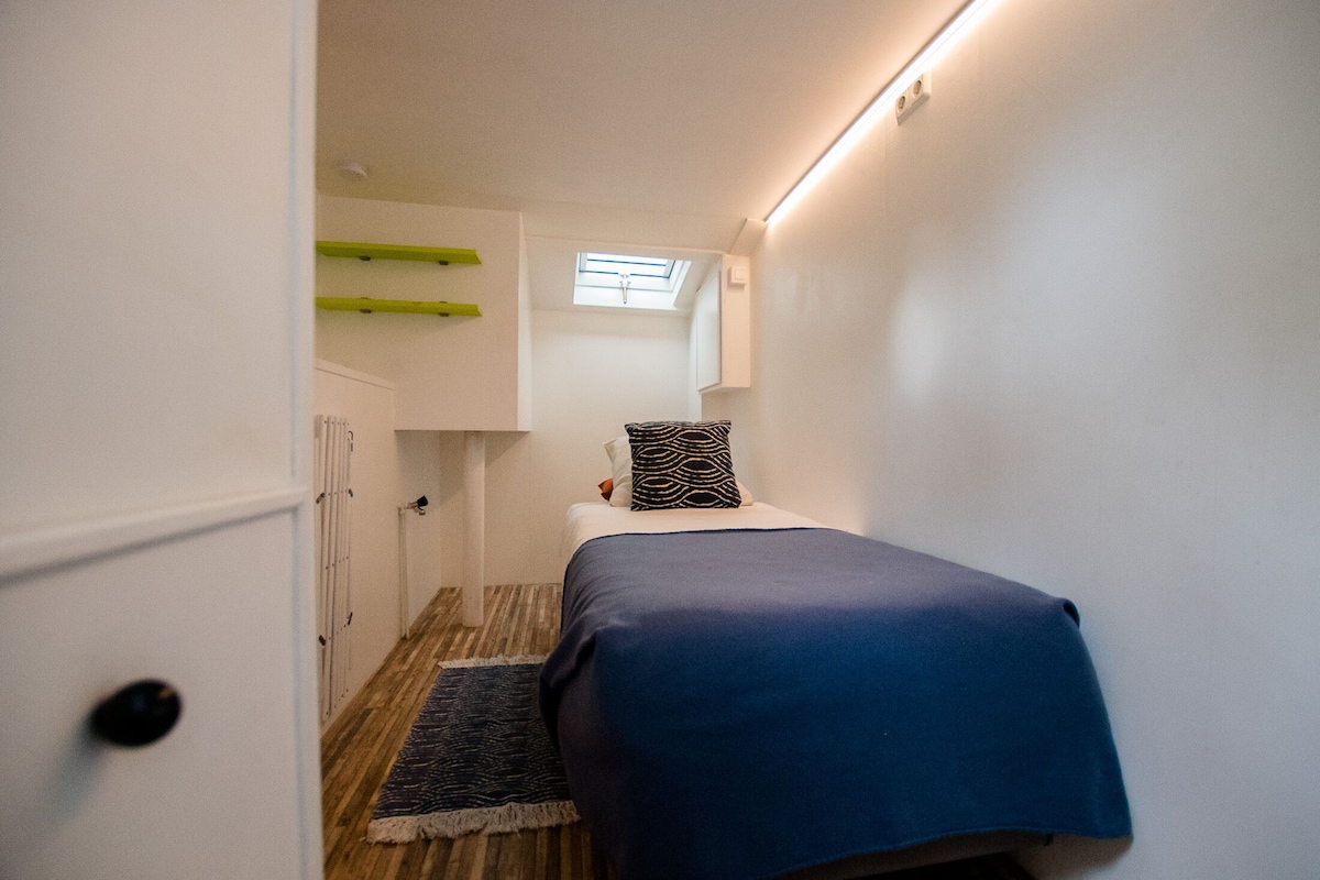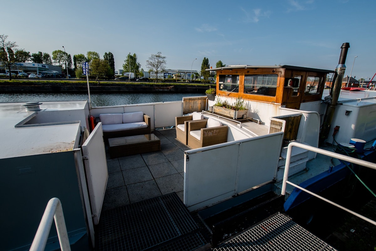 The cargo ship has been renovated into an open loft-style houseboat. The freedom of the water enters in the open and bright living space . After a long day of discovering, you can relax in the sauna or on the terrace.