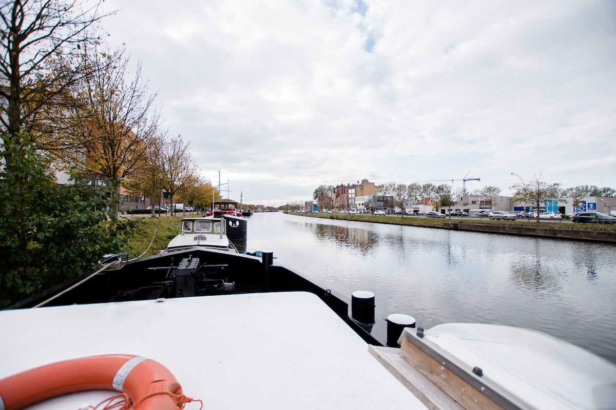 The boat is located on the canal “Oostende-Brugge”, at a glance from the city centre. It’s a quite calm area along a biking path.