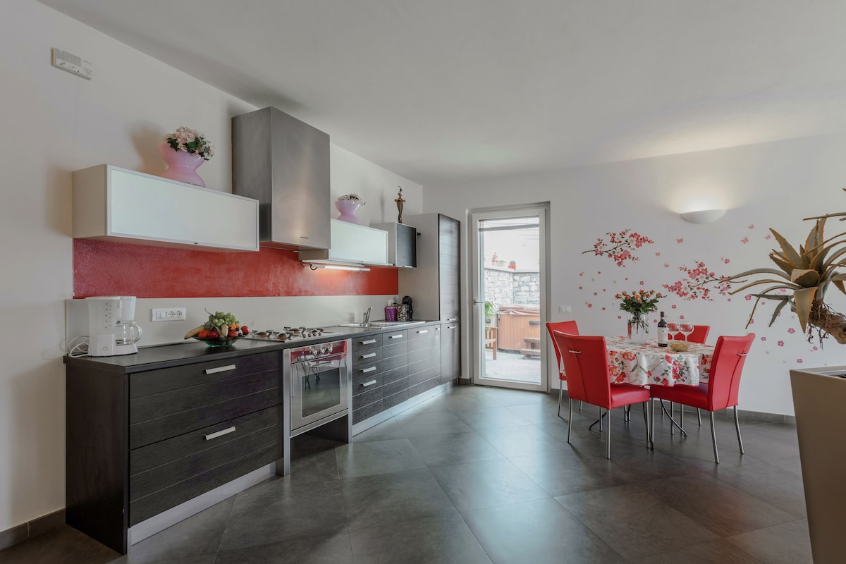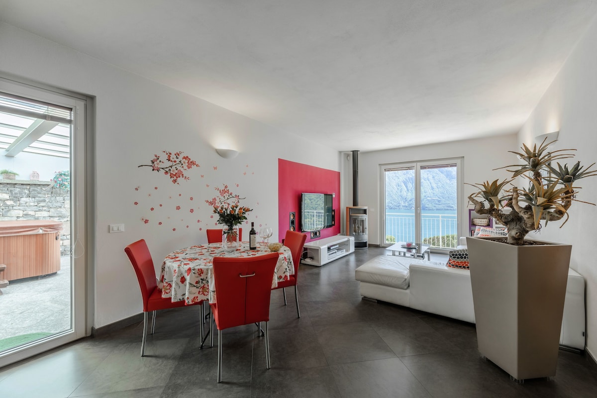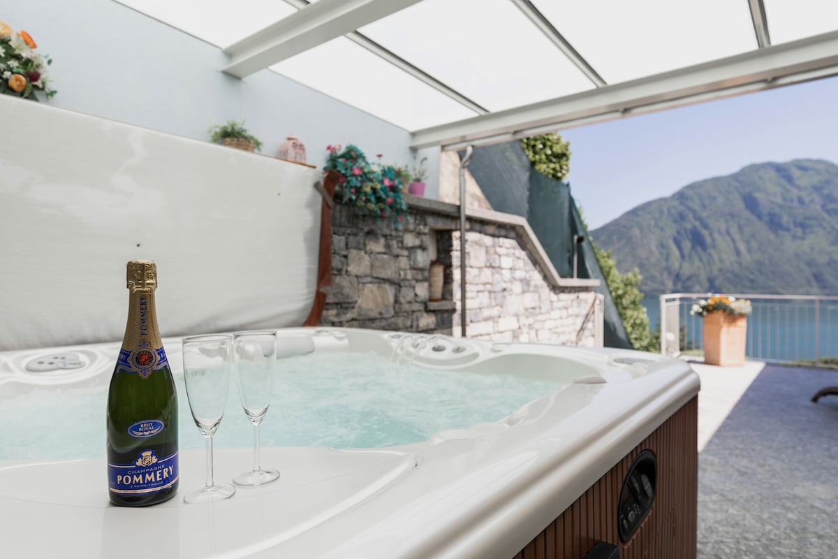 Our wonderful Bungalow, located on the hill in Mezzegra / Lenno, enjoys a breathtaking view from every corner of the house, measuring 90sqm and consists of two elegantly furnished double bedrooms; a private bathroom with shower and toilet is located in the master bedroom while the other bathroom is complete with shower and bathtub. The living room is made up of a comfortable leather sofa, TV with satellite TV, DVD, CD; a beautiful open kitchen and the dining table complete the living area. On the large terrace outside, in addition to a dining table, a bench and deck chairs, there is a Jacuzzi