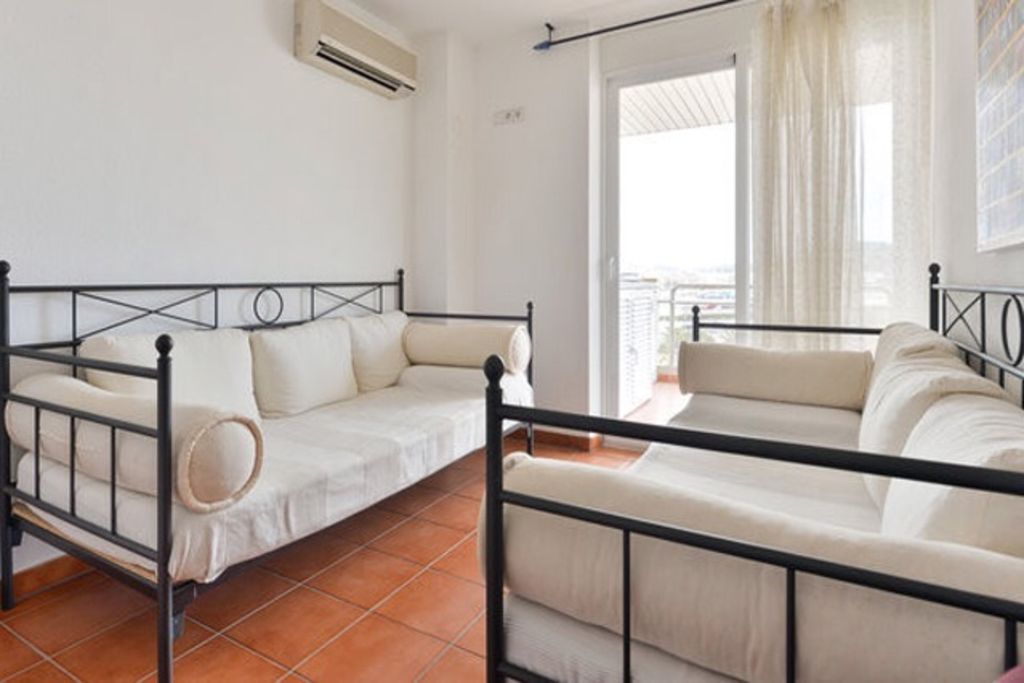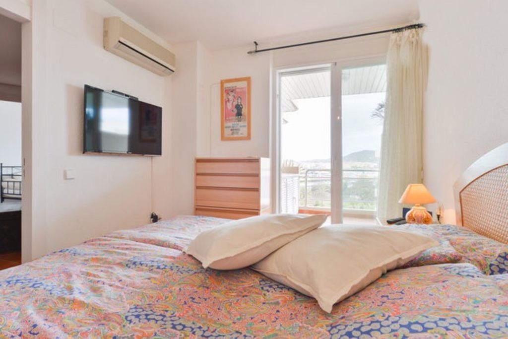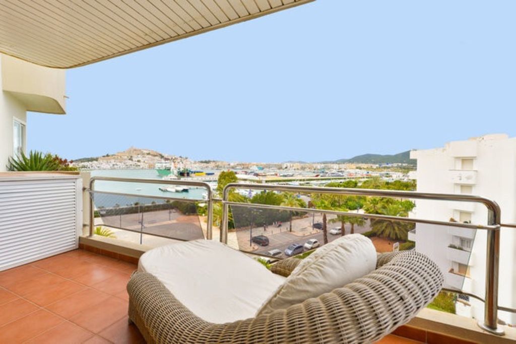 This appartment WELL FURNISHED AND EQUIPPED and VERY CONFORTABLE is ideally situated at the heart of everything in theVIP area of town near the CASINO, the GRAND HÔTEL of IBIZA, the LUXURY SHOPS along the Harbours MARINA BOTAFOCH and PERTO EIVISSA NOVO, the BEACH OF TALAMANCA, the centre of Town and the discothèques (PACHA, CIPRIANI, LIO) but nevertheless quiet (top floor). Very finely DECORATED (VERSACE furniture),VERY LARGE EQUIPPED TERRASSE (table, chairs, hamac) + 2 other individual small TERRASSES, 3 NICE BRIGHT BEDROOMS all with VIEW OVER THE HARBOUR, 2 LARGE BATHROOMS + toilet room, FULLY EQUIPPED KITCHEN.