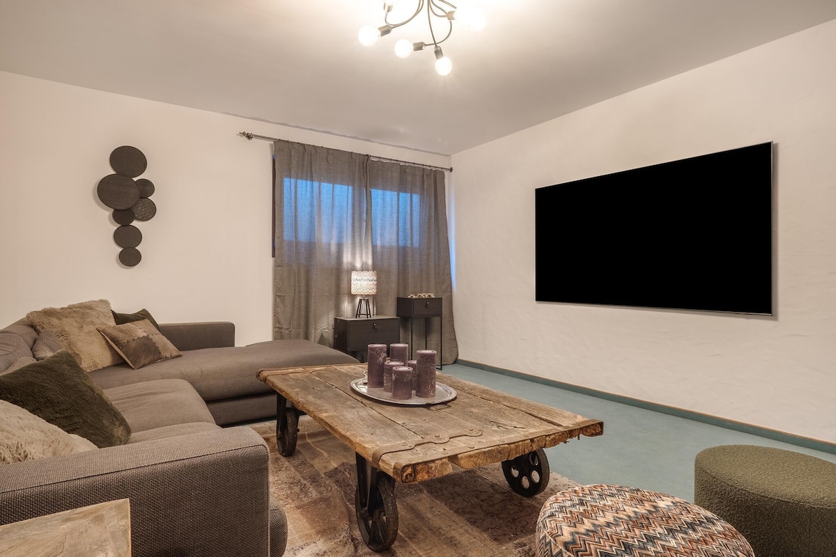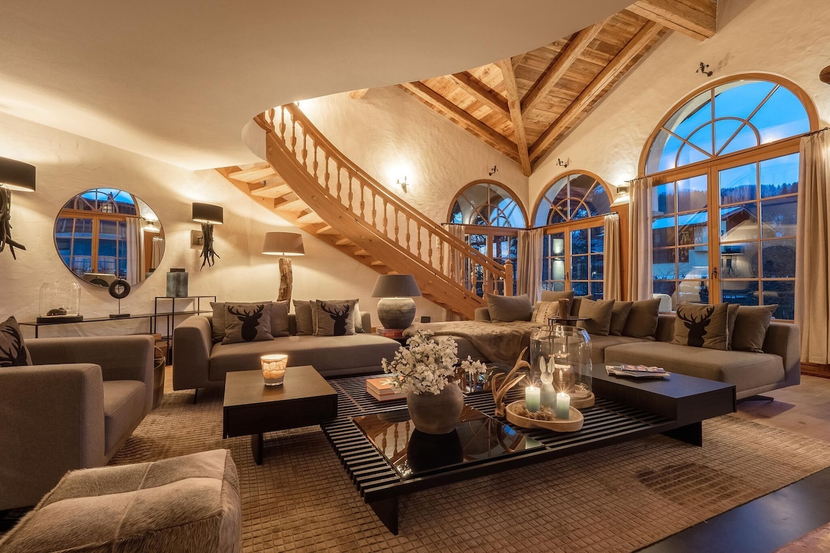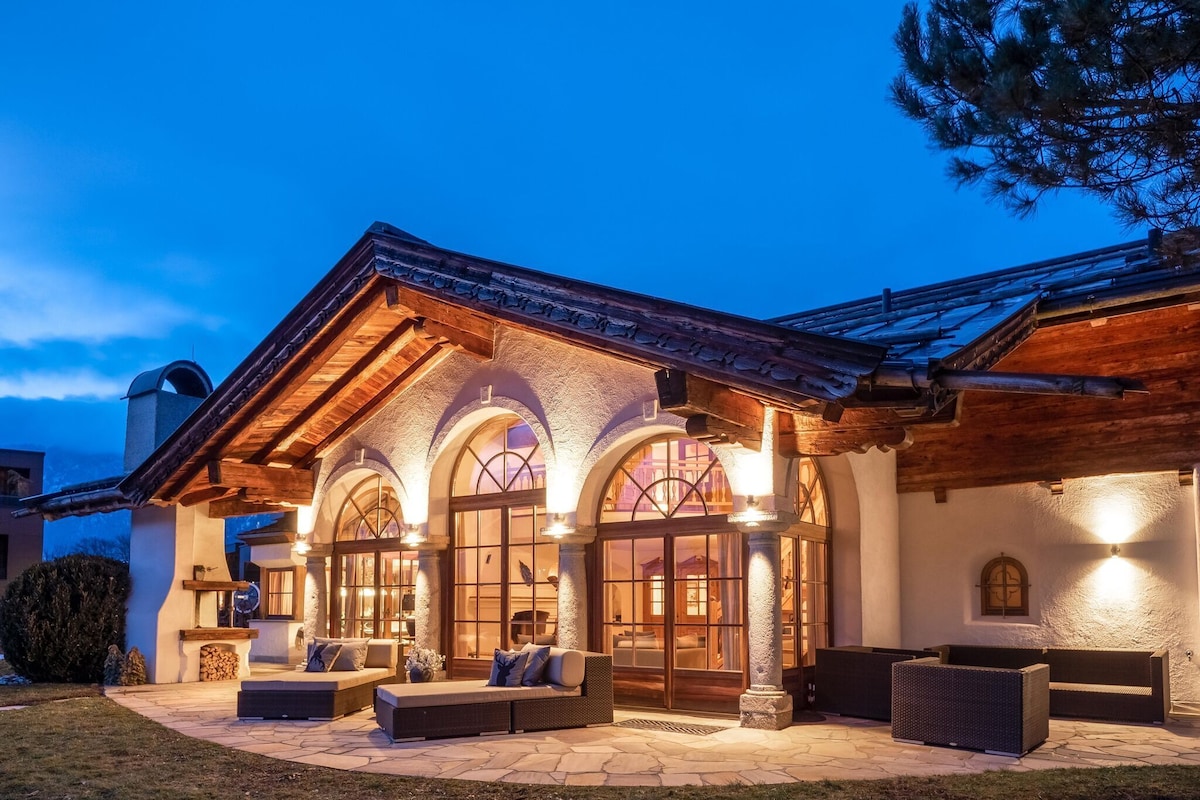 The villa, which is spacious in every respect, offers a bright living room with a large glass front facing southwest and a fireplace, a fantastic country kitchen and adjoining living room with tiled stove and several suites with a large bathroom including a whirlpool and steam sauna. A particularly nice spot is the patio with an outdoor fireplace.