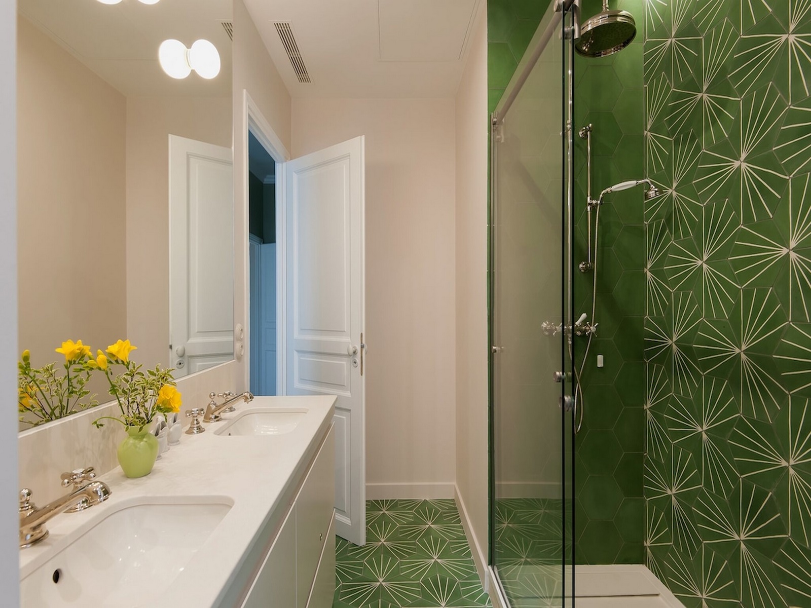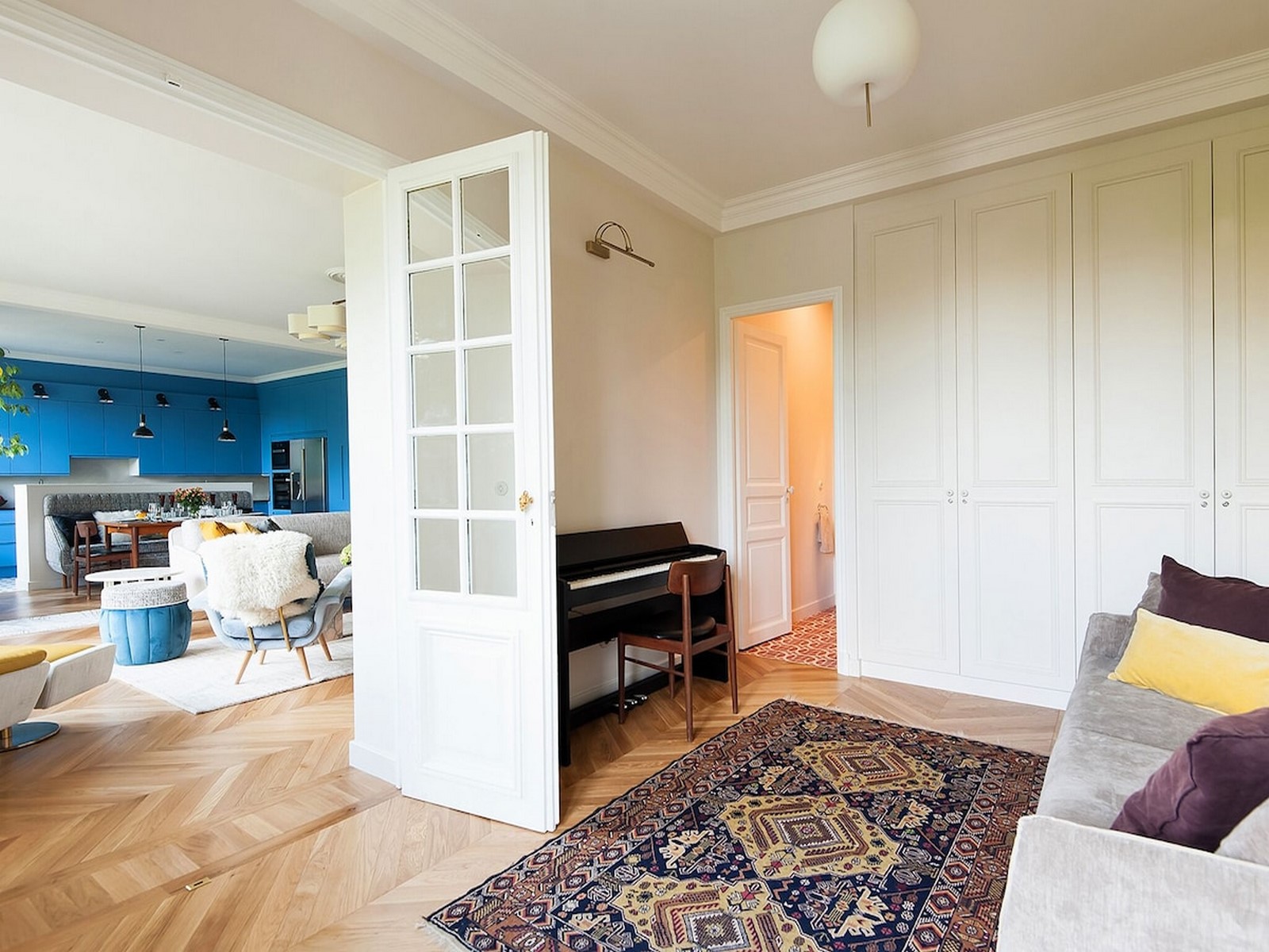 The apartment is located on the 3rd floor with elevator which is rare in the Marais. It’s very spacious with 140 sq meters/ 1500 sq feet : 3 bedrooms, each with queen bed. Bedroom 2 can be converted to have 2 singles instead of a queen and all bedroom have en suite bathroom with toilet. There is also a guest toilet.