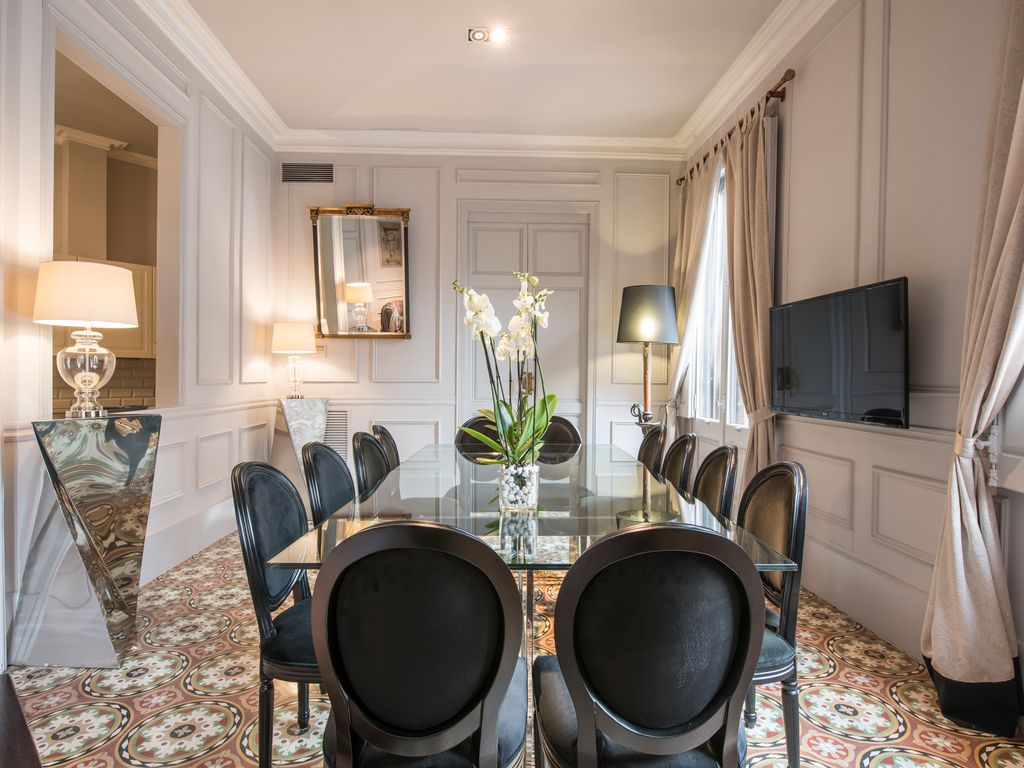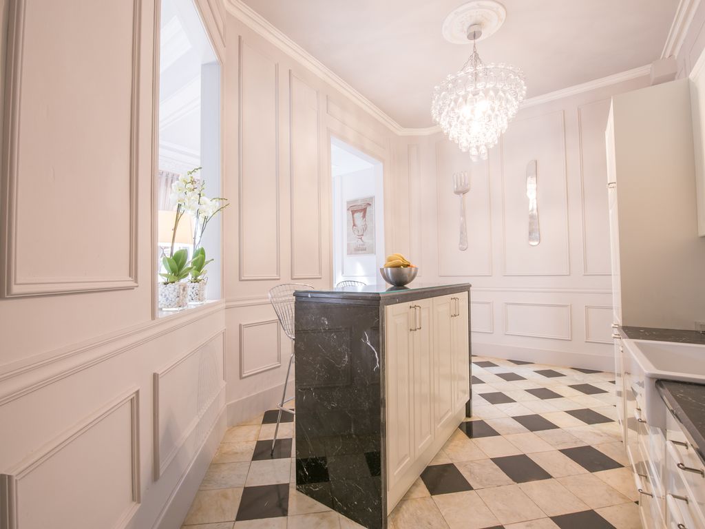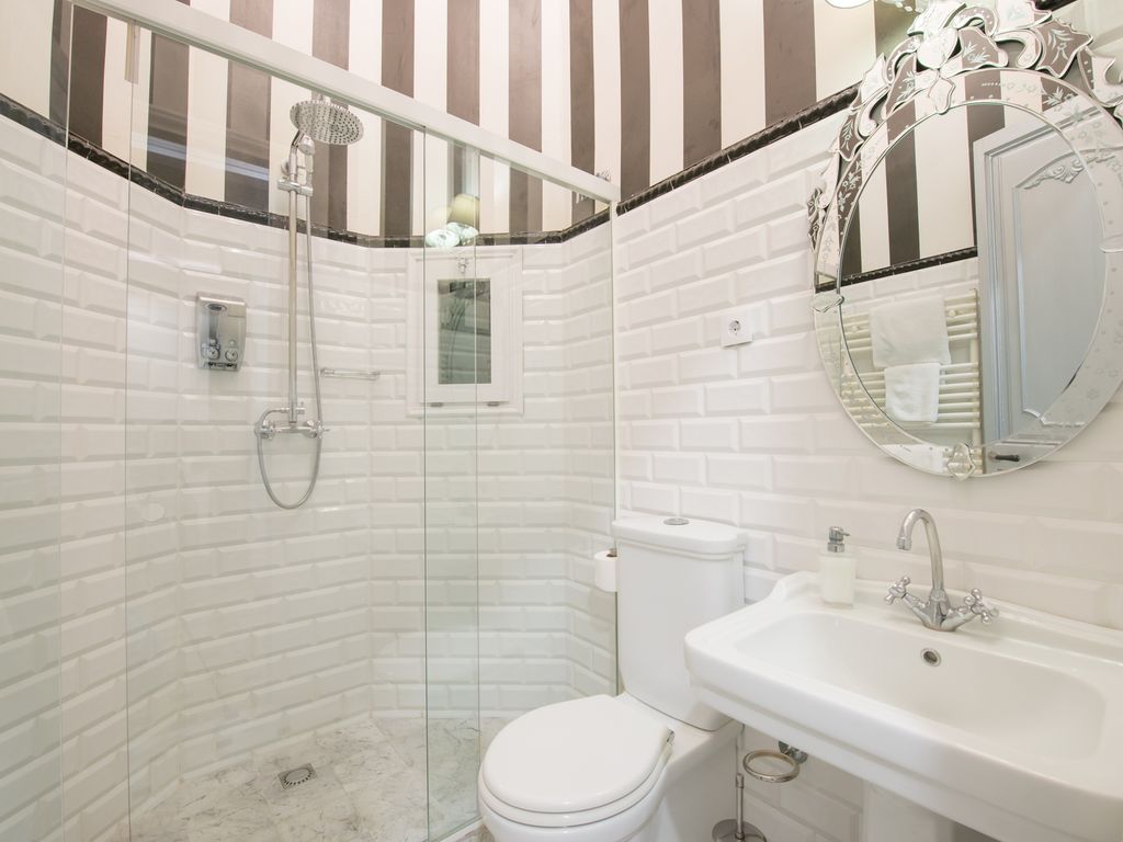 The apartment has been decorated respecting XIXth century urban architecture: high ceilings and restored typical tile floors. The apartment is 2690 square feet divided in sleeping quarters, living and dining room and kitchen.