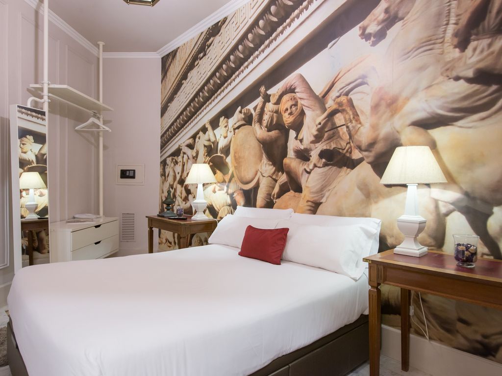 The rooms are four suites, each with their bathroom, and two king size with external bathroom. In all, six independent rooms equipped with king size beds (premium viscoelastic mattresses, 100% cotton bedding, geese feather comforters and 4 pillows for each bed: two made out of viscoelastic and two of geese feather). In case you would like to Book the flat for more than 12 people you have at your disposal two extra individual beds( depending on the number of guests).