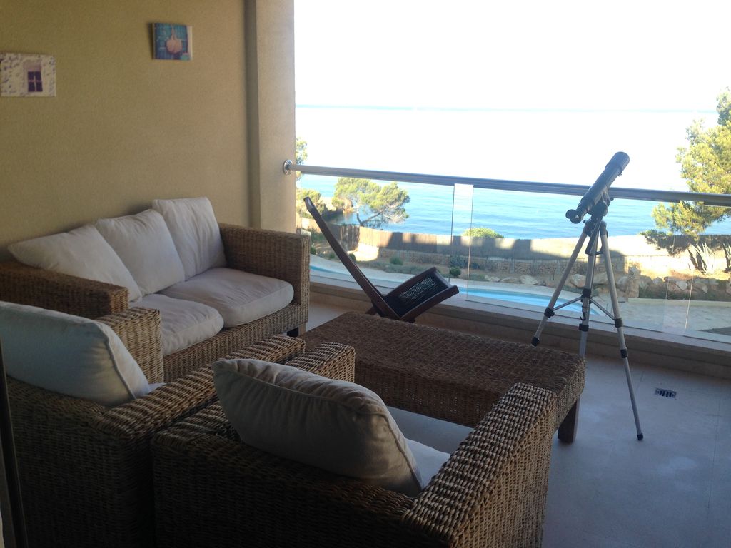 Large terrace with table for 8 people and sofas to watch the sunset. Incredible views of the sea, direct access to private beach.