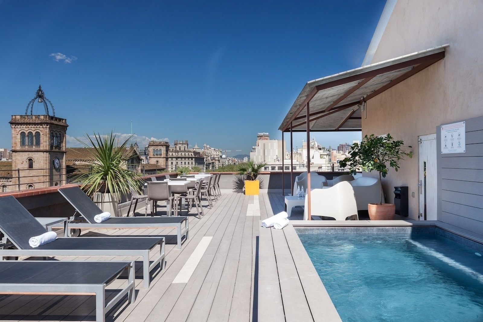 A superb, spacious apartment, perfect for accommodating large groups of up to 10 people. It enjoys an exceptional location, just a stone’s throw from elegant Passeig de Gràcia and Plaça de Catalunya. The apartment has been tastefully refurbished with high-quality finishes and is beautifully decorated in a warm, modern style. What’s more, there is a chill-out terrace with a swimming pool and solarium: a magical spot in which to enjoy the warm Mediterranean sun.