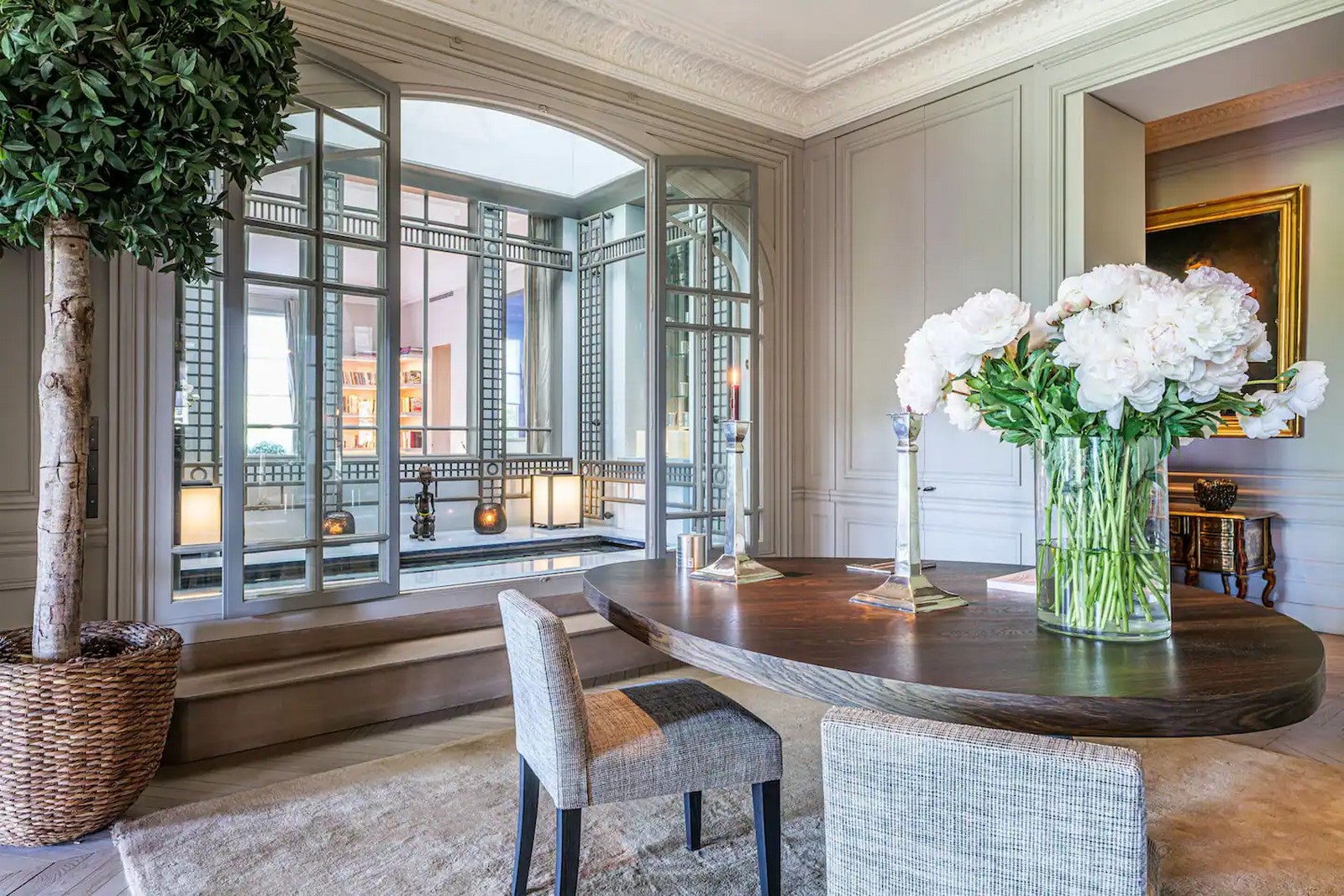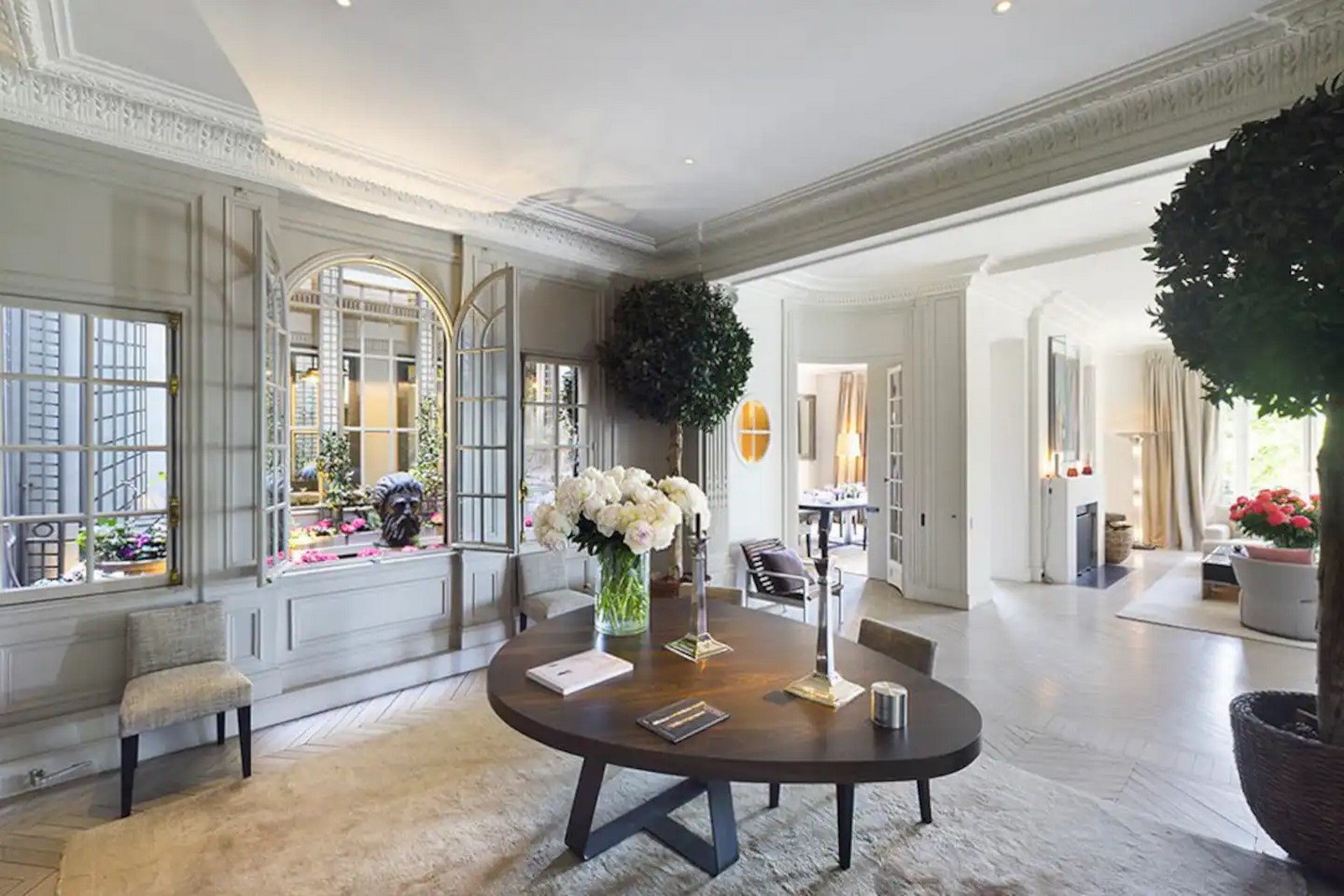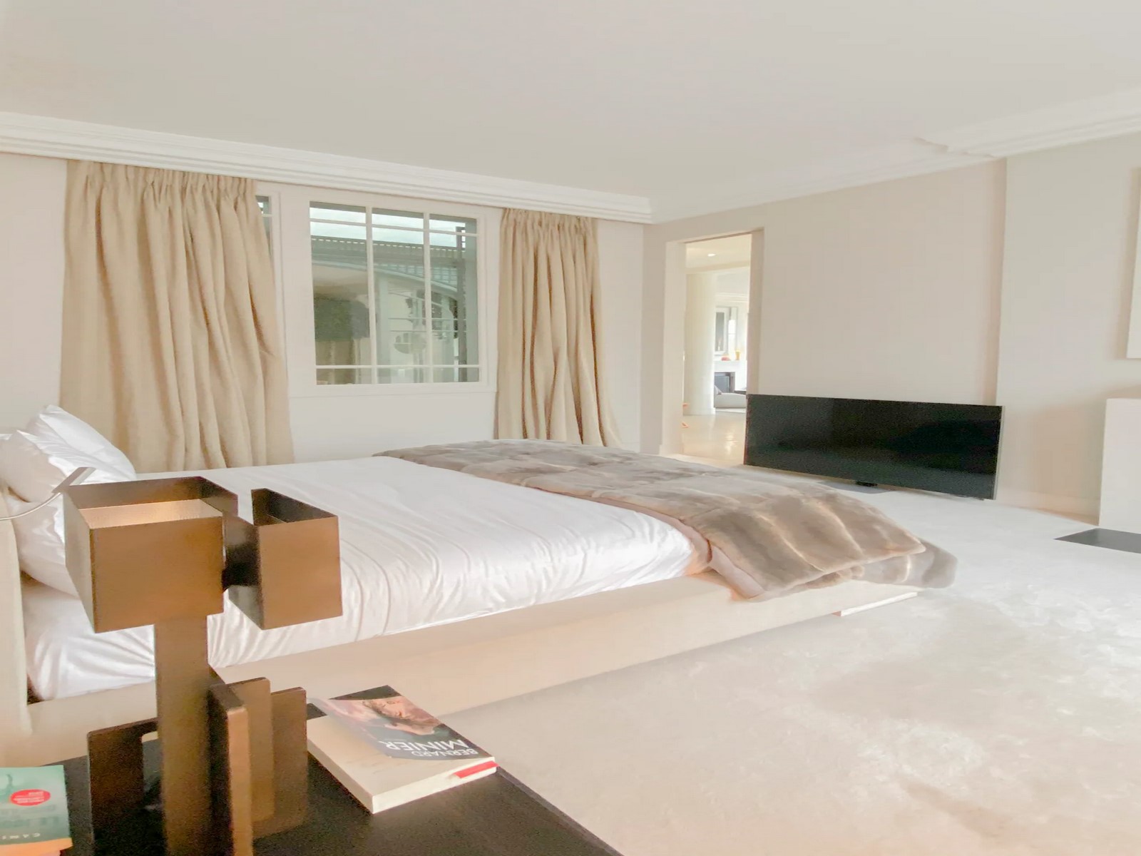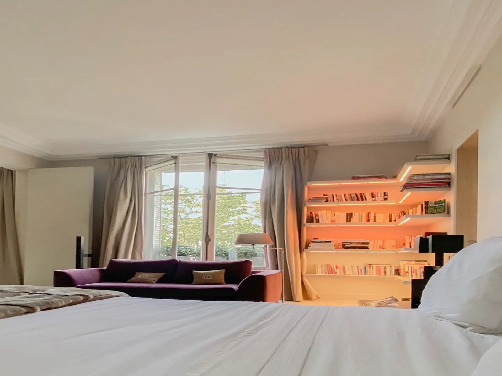 This 280m² apartment is located in a particularly calm environment in a privileged area of the capital. Its large living spaces and windows directly overlooking the Champ de Mars offer this corner apartment an exceptional luminosity and perfect calmness. With its vast living room, beautiful dining room and fully equipped kitchen, this apartment is ideal for small receptions or for a couple to relax in. An interior decorative pond and a flowered patio allow for a very peaceful and pleasant atmosphere. Set just a few meters from the Champs de Mars Park, this luxurious corner flat enjoys a prestigious location in Paris with views of the Eiffel Tower. Start your mornings with a stroll through the park, fresh pastries and a nice coffee in front of the Eiffel Tower. Now that you’re feeling refreshed, head out for an exciting day of sightseeing, museum tours, and incredible French cuisine.