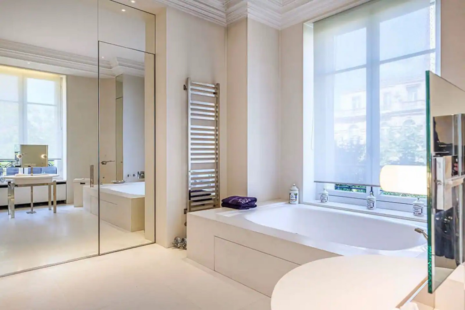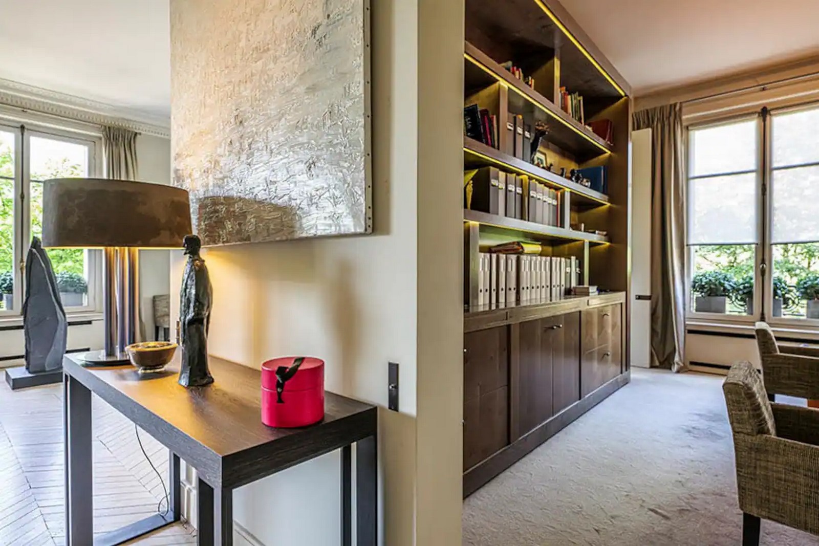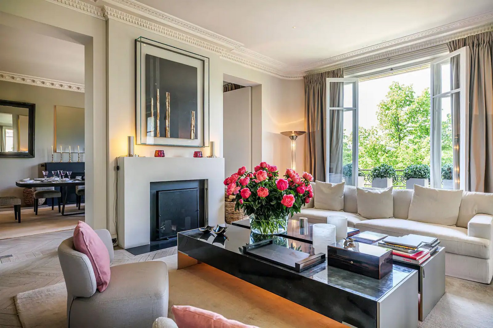 This 280m² apartment is located in a particularly calm environment in a privileged area of the capital. Its large living spaces and windows directly overlooking the Champ de Mars offer this corner apartment an exceptional luminosity and perfect calmness. With its vast living room, beautiful dining room and fully equipped kitchen, this apartment is ideal for small receptions or for a couple to relax in. An interior decorative pond and a flowered patio allow for a very peaceful and pleasant atmosphere. Set just a few meters from the Champs de Mars Park, this luxurious corner flat enjoys a prestigious location in Paris with views of the Eiffel Tower. Start your mornings with a stroll through the park, fresh pastries and a nice coffee in front of the Eiffel Tower. Now that you’re feeling refreshed, head out for an exciting day of sightseeing, museum tours, and incredible French cuisine.