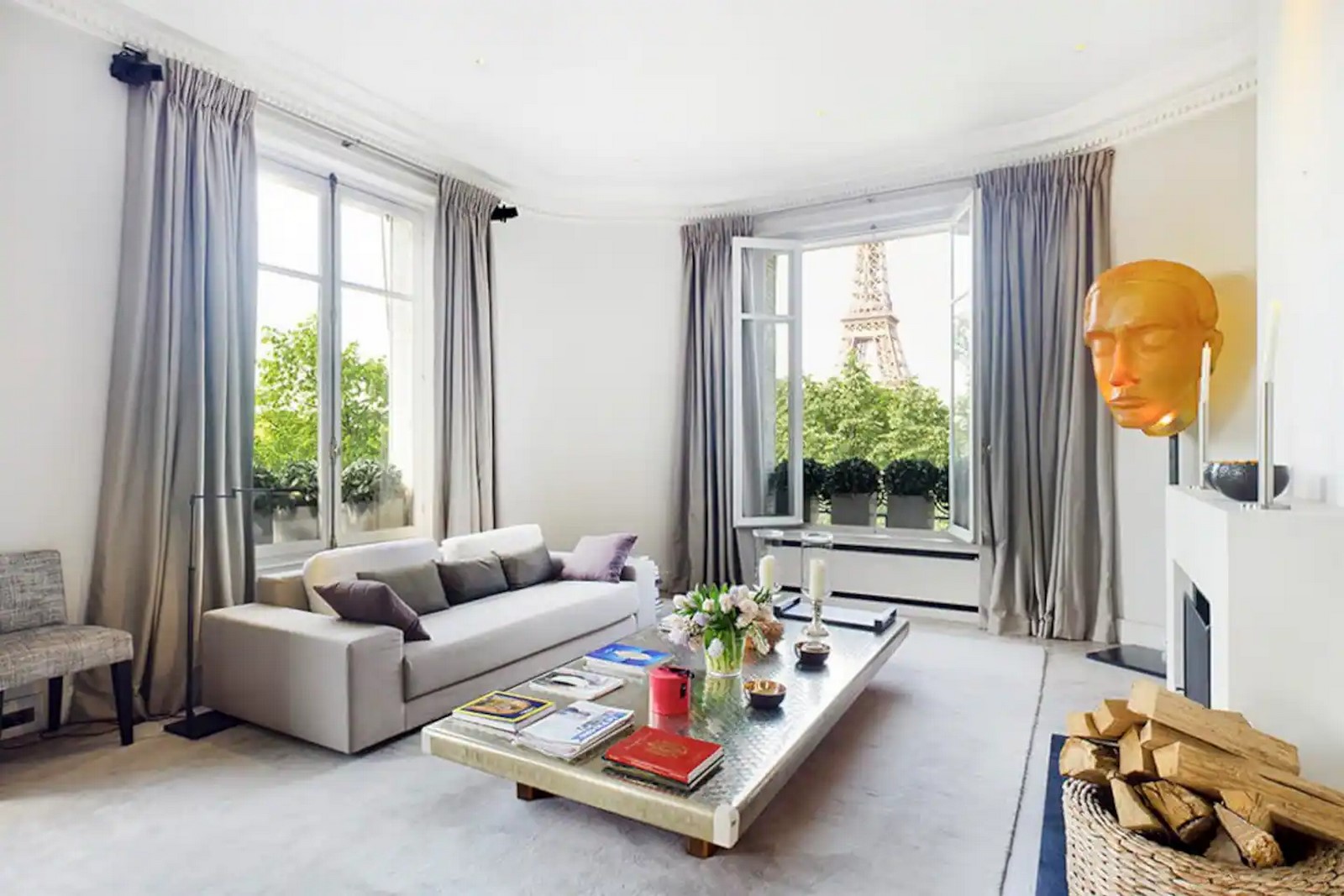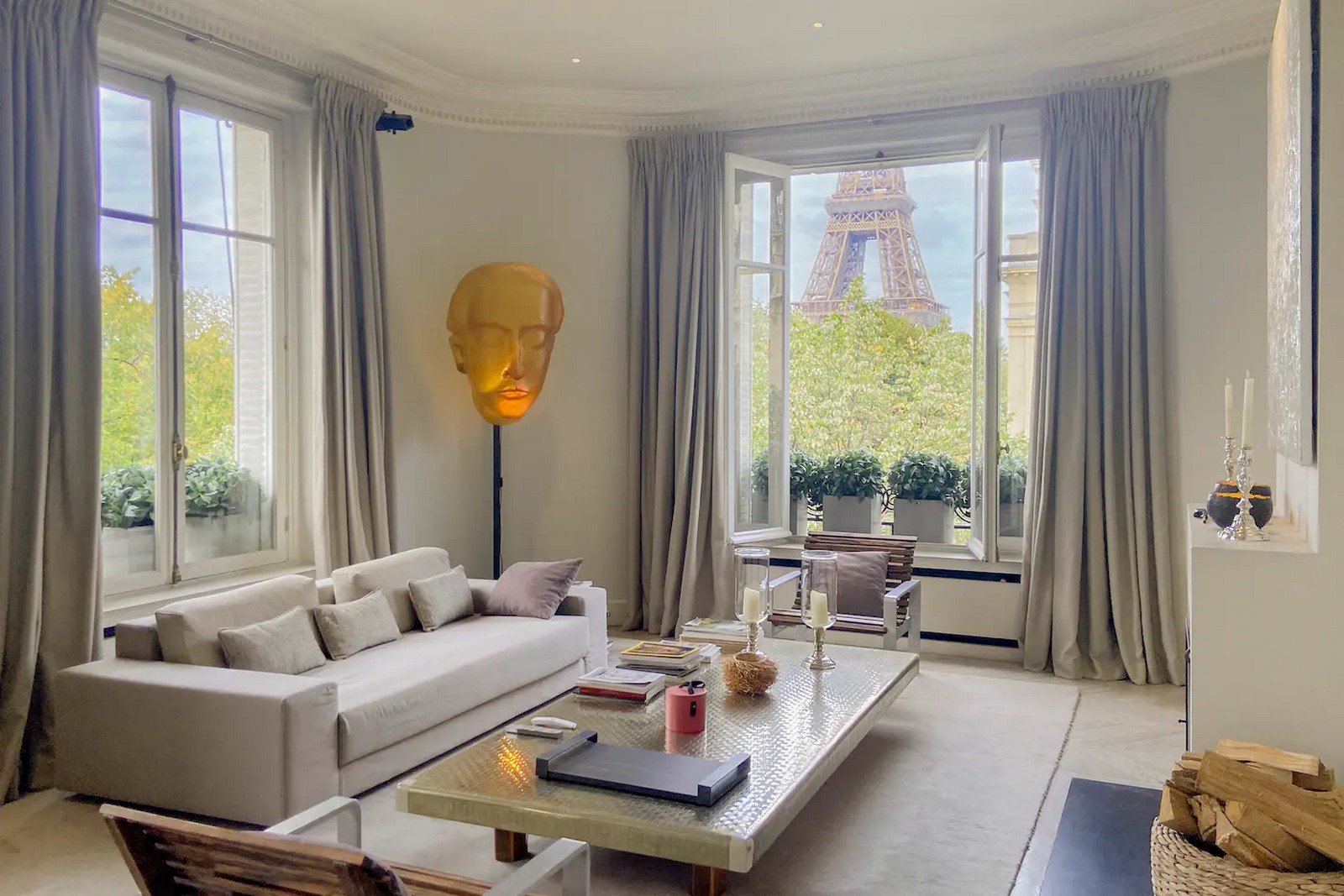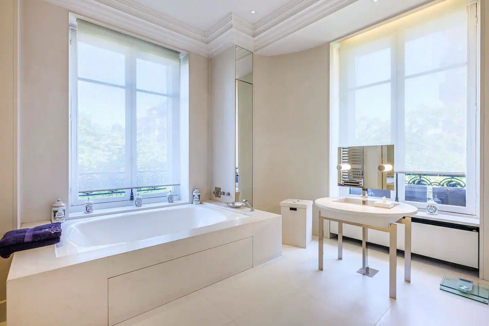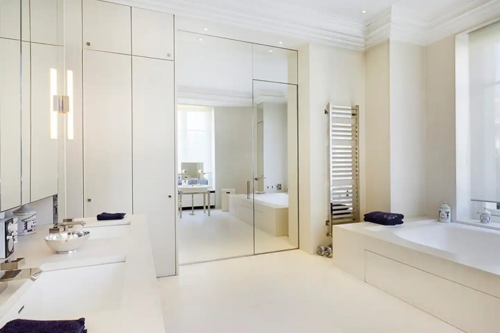 This 280m² apartment is located in a particularly calm environment in a privileged area of the capital. Its large living spaces and windows directly overlooking the Champ de Mars offer this corner apartment an exceptional luminosity and perfect calmness. With its vast living room, beautiful dining room and fully equipped kitchen, this apartment is ideal for small receptions or for a couple to relax in. An interior decorative pond and a flowered patio allow for a very peaceful and pleasant atmosphere. Set just a few meters from the Champs de Mars Park, this luxurious corner flat enjoys a prestigious location in Paris with views of the Eiffel Tower. Start your mornings with a stroll through the park, fresh pastries and a nice coffee in front of the Eiffel Tower. Now that you’re feeling refreshed, head out for an exciting day of sightseeing, museum tours, and incredible French cuisine.
