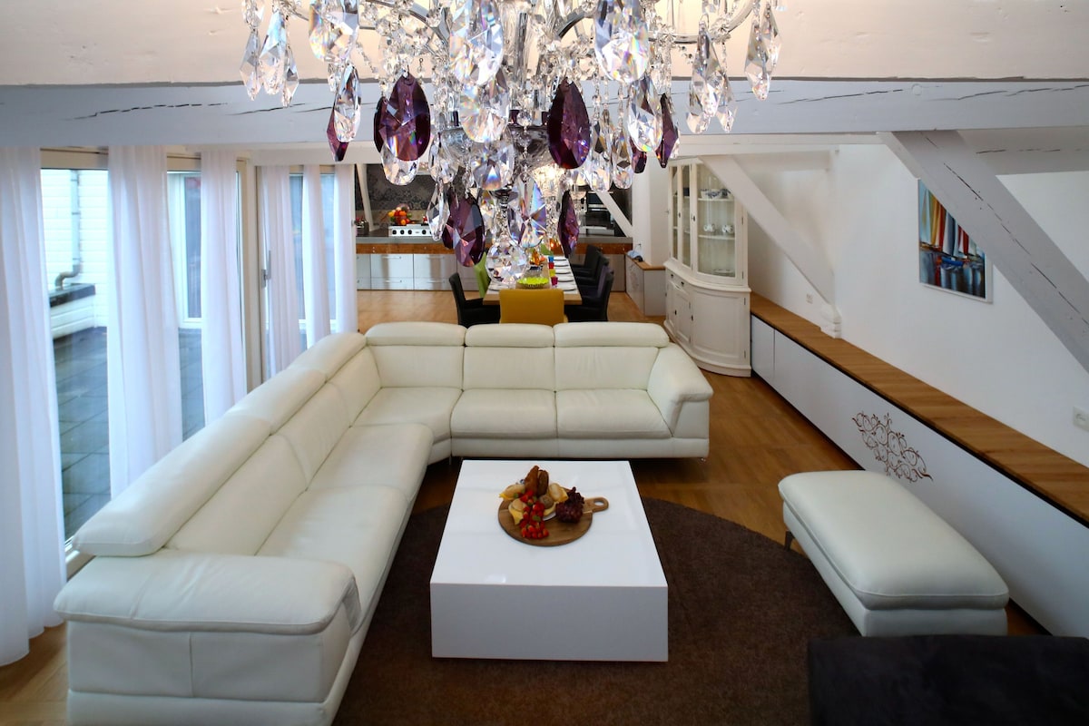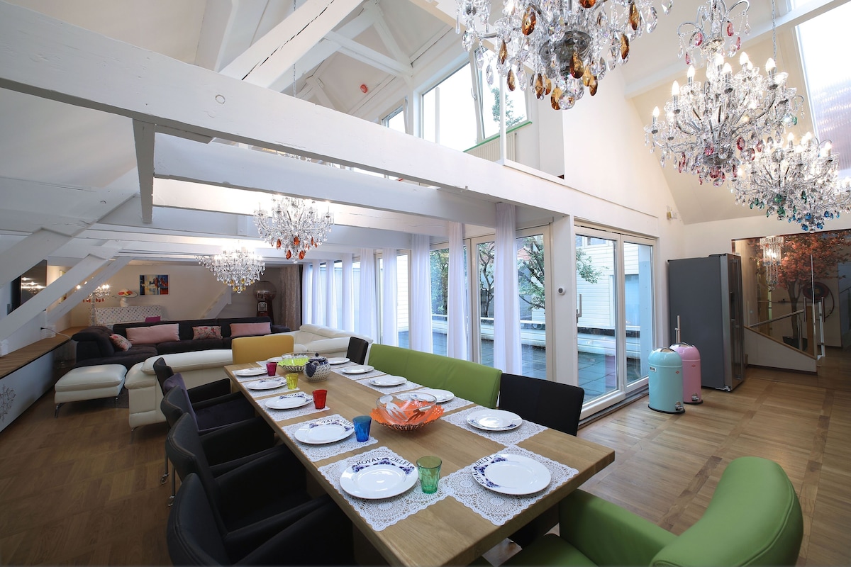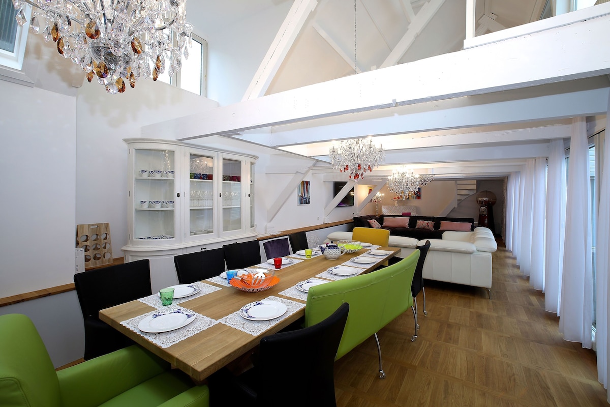The House has 6 bedrooms with each a private bathroom. A large living/dining area of more then 250 square meters. The total surface is 450 square meters.