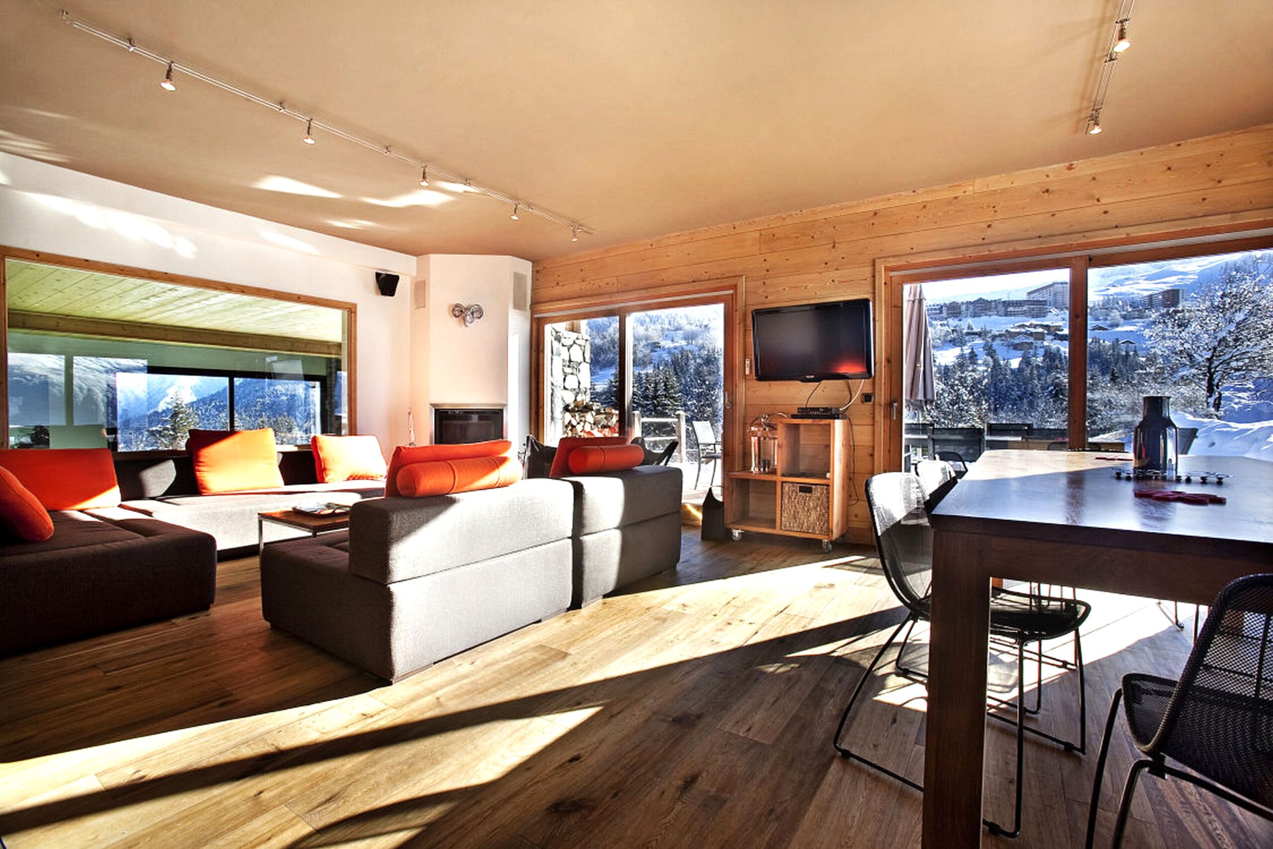 Chalet Elista enjoys views over the Dent du Villard from the large sitting area, which also has an open fireplace to curl up next to after a hard day on the slopes or in the shops. The chalet has a large South-facing terrace, which is a fantastic suntrap and ideal for open-air late lunches.