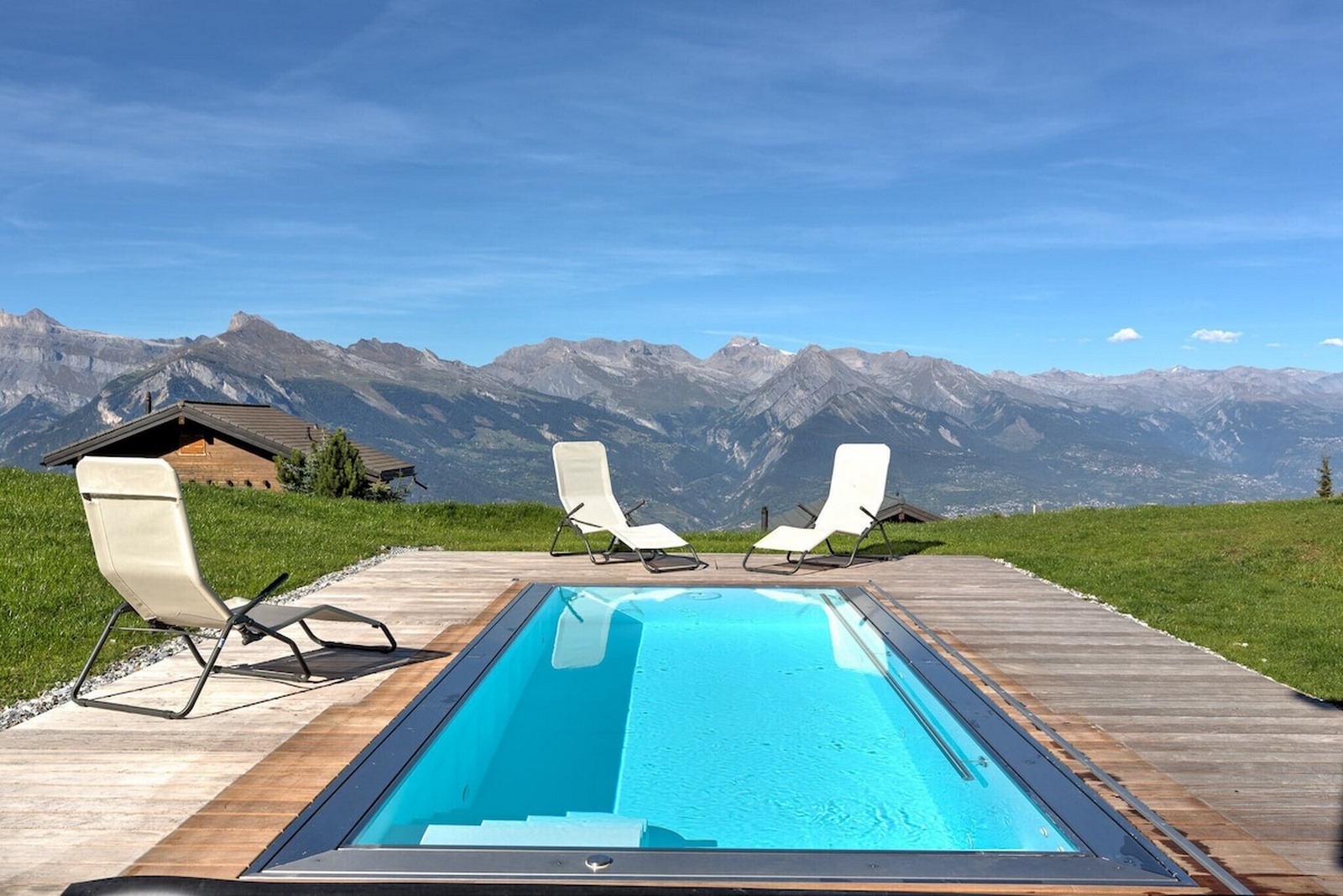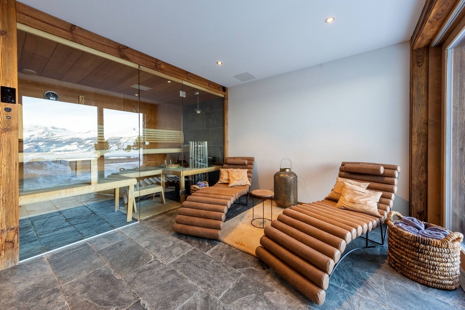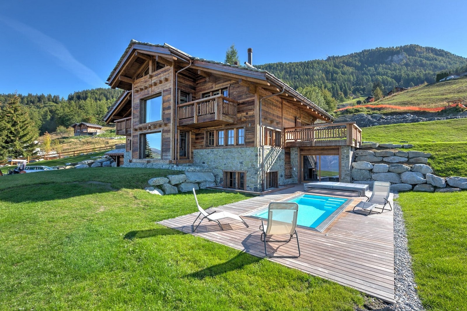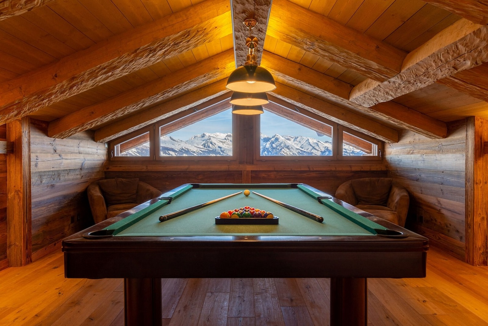 his Chalet is a luxury Swiss alpine retreat located in the exclusive “les Cleves” neighbourhood of Haute-Nendaz, 200m above the village centre. It borders the “Jean-Pierre” ski slope, boasting easy ski-in, ski-out access and only a short ski to the resort’s main telecabin.