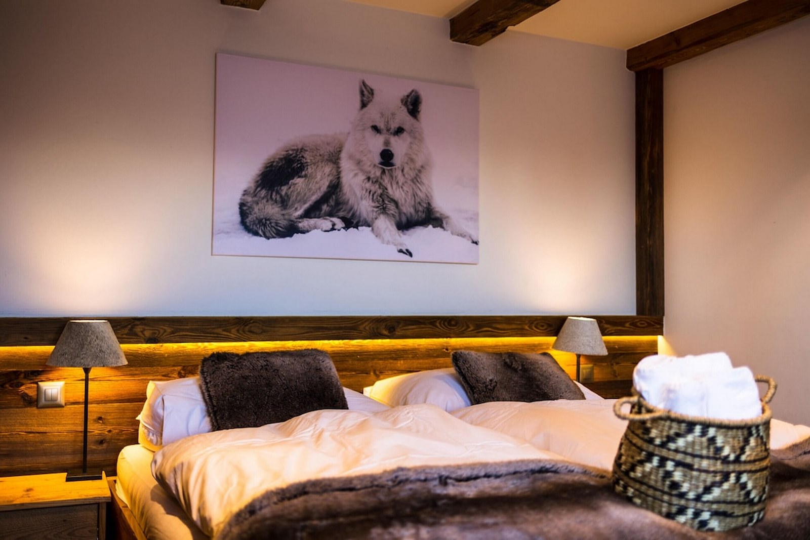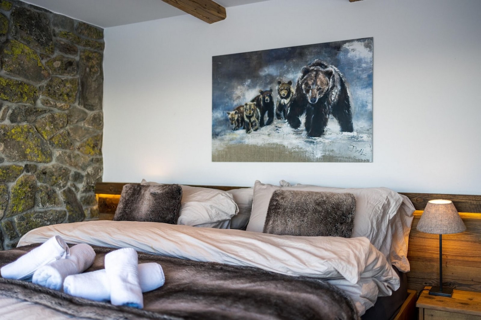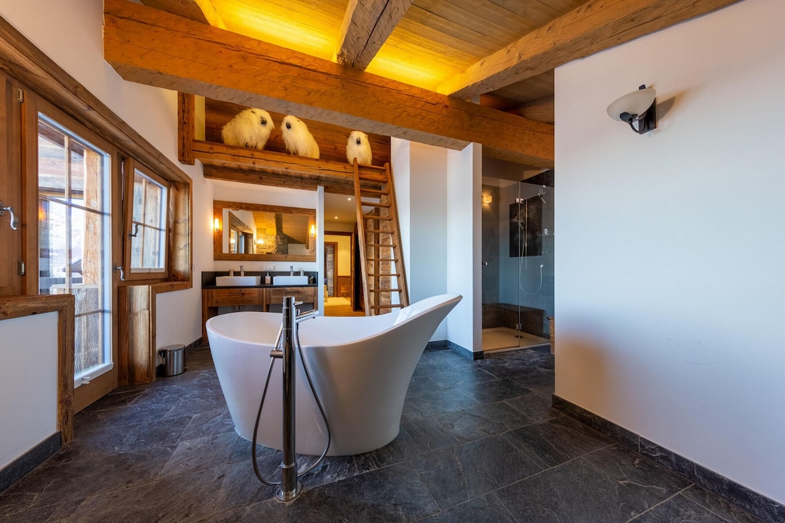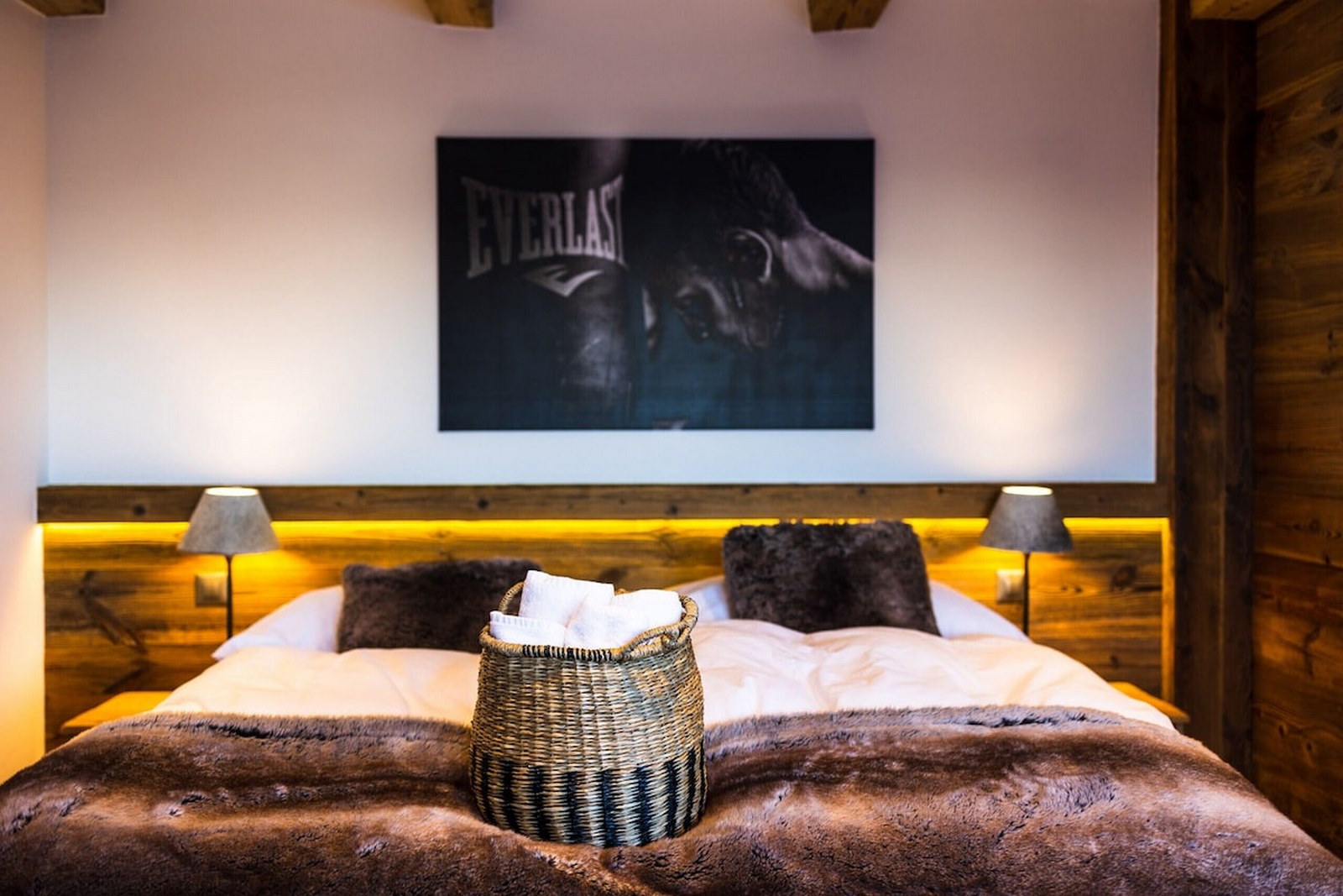 The chalet is generously sized with 7 bedrooms and bathrooms providing accommodation for up to 14 guests. Stunning design features and modern amenities perfectly compliment the traditional building. Open plan design, sizeable picture windows and stone fireplace combine to give a spacious yet welcoming and homely atmosphere. Chalet Yolo is the ultimate indulgent haven for all to enjoy; family, friends and colleagues alike.