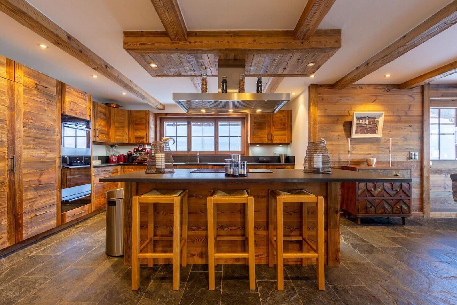 Large living room with a magnificent bay window from which you can admire the view of the surrounding peaks. The kitchen is fully equipped with 2 dishwashers, large fridge and freezer, coffee machine for coffee beans and 2 ovens.