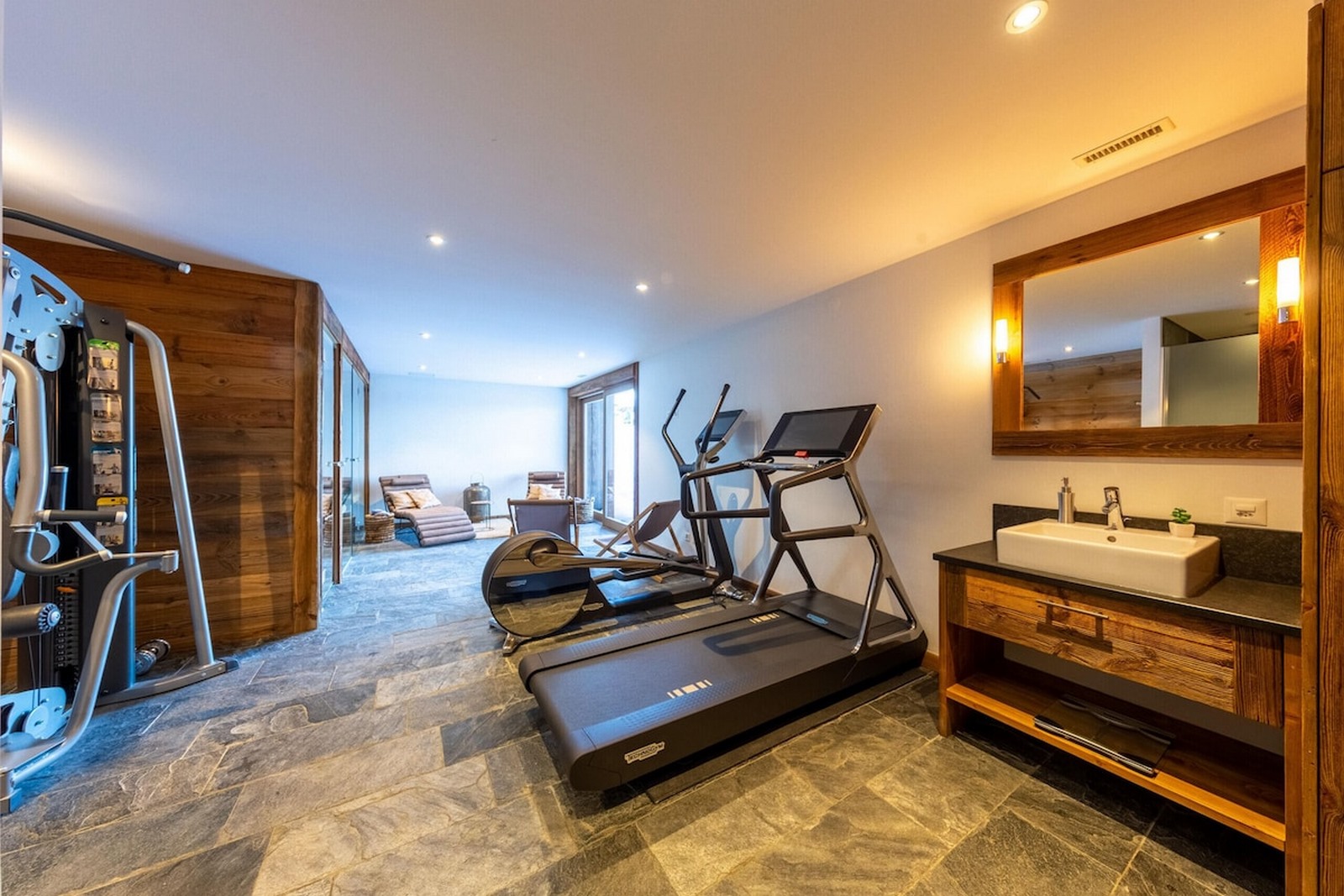 Wellness area: 1 infrared sauna, Swedish sauna, outdoor swimming pool counter-current heated all year round, jacuzzi and smart fitness and bodybuilding equipment.
