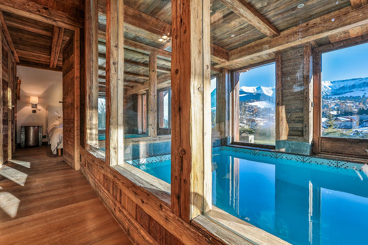 This attractive luxury chalet is situated at the bottom of the Jaillet slopes, only a few minutes walk from the center of the village. Perched on a hill in a quiet area of the resort with easy access to the thriving life of the town center. The slopes of Jaillet are accessible by ski, and the domain of Mont d’Arbis and Rochebrune by a short drive or bus ride. The very warm and luxurious chalet has attractive views over Magève and Mont Blanc. It’s architecture is traditional with a slightly more contemporary design paired with art and antiques of superb quality. You will be charmed by the exceptional mountain paintings and ceramics by Sispa-Simonod. There is also an indoor luxury swimming pool.