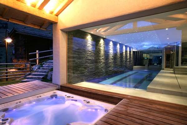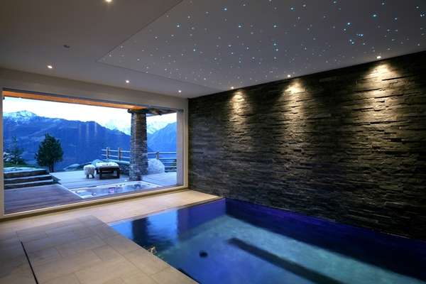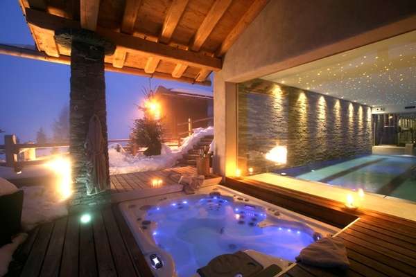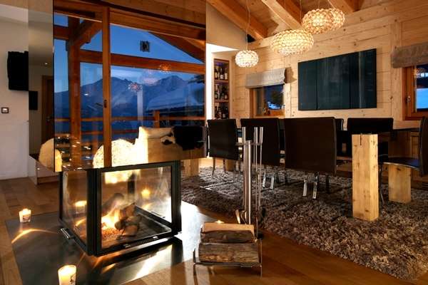 Here is a perfect example of how to combine the charm of wooden chalets with the latest confort and level of ameinities. the living room is very spacious with materials and colors offering the promise of complete relaxation. The central fireplace, an important architectural element underlining the rooms contemporary atmospherehas a hearth level with the floor. Around you you will find access the 100 m² barbecue sitting area providong the ideal setting in which to relax in supreme comfort and take in the remarkable panorama. A handmade canadian cedar wood mountain hot tub offers guests the chance take it easy and have some fun. Aslo offering a spa and its majestic swimming pool with the oustside Jacuzzi, the latest hifi / tv home cinema equiment, this luxury chalet is a dream come true.