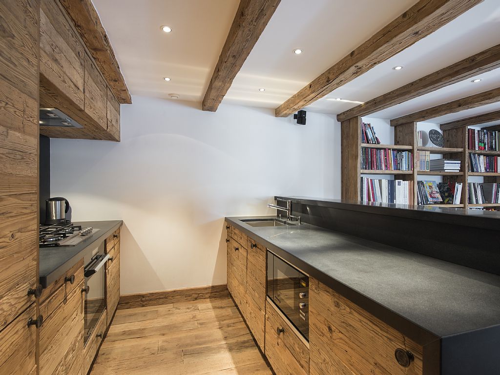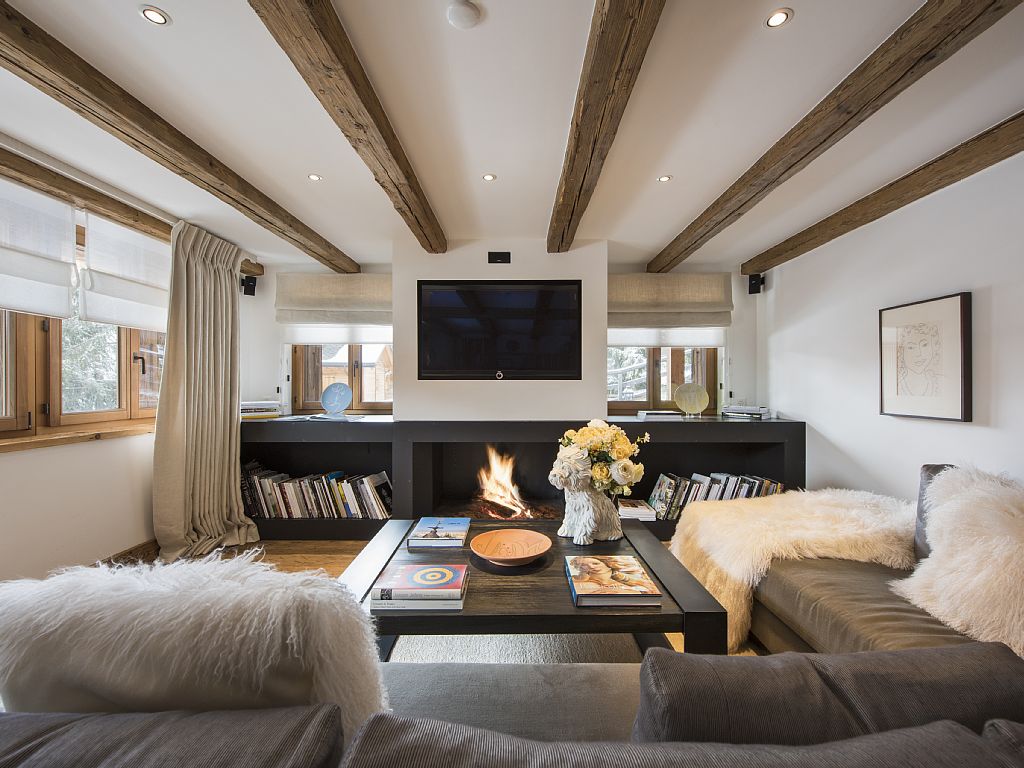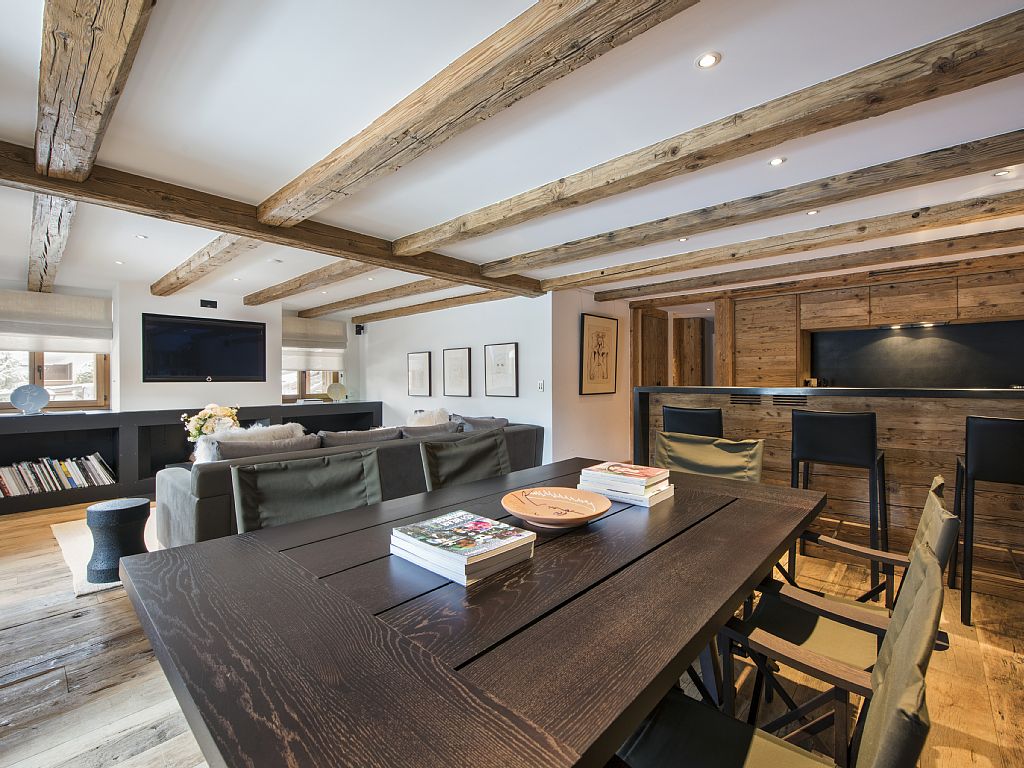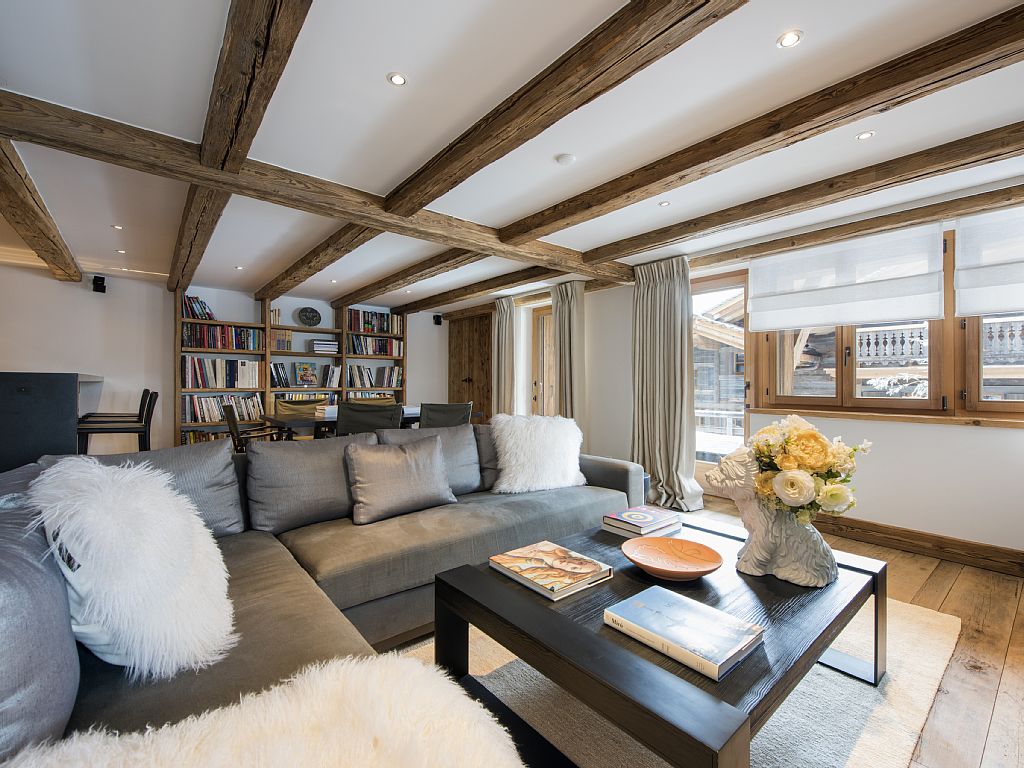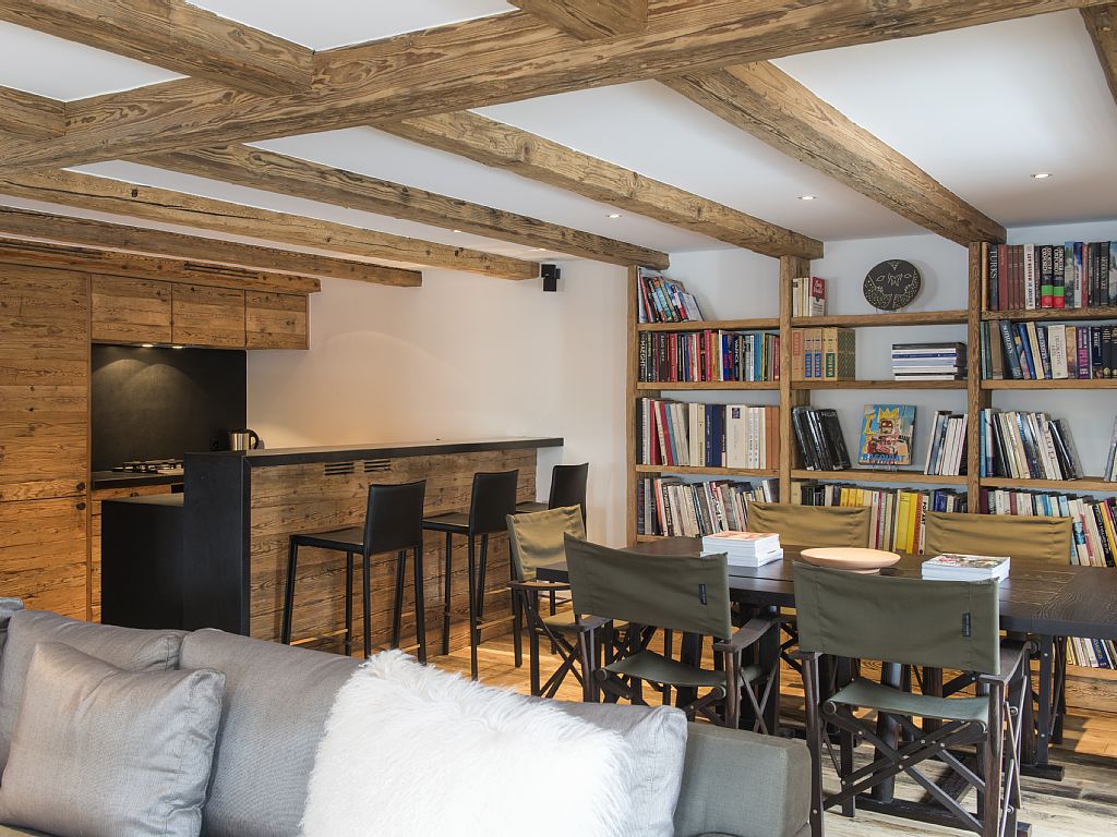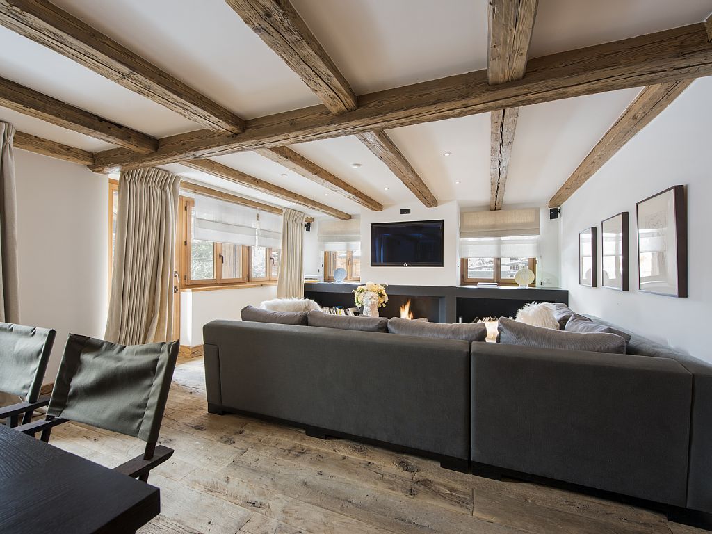 Accommodation: This two bedroom apartment has beautifully exposed wooden beams and sumptuous furnishings by Christian Liagre giving it the feel of a cozy home. The large living space comprises an elegant sitting room with lined with books on one side, an open fireplace on the other and a comfortable L-shaped sofa by Christian Liaigre. Behind the sitting area is the dining room with seating for six and an open kitchen with breakfast bar.