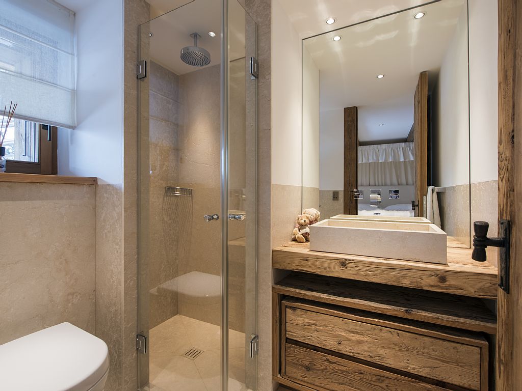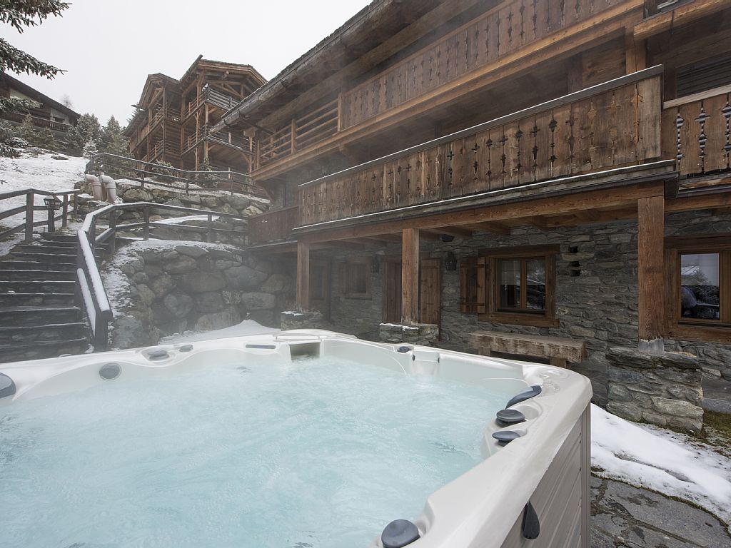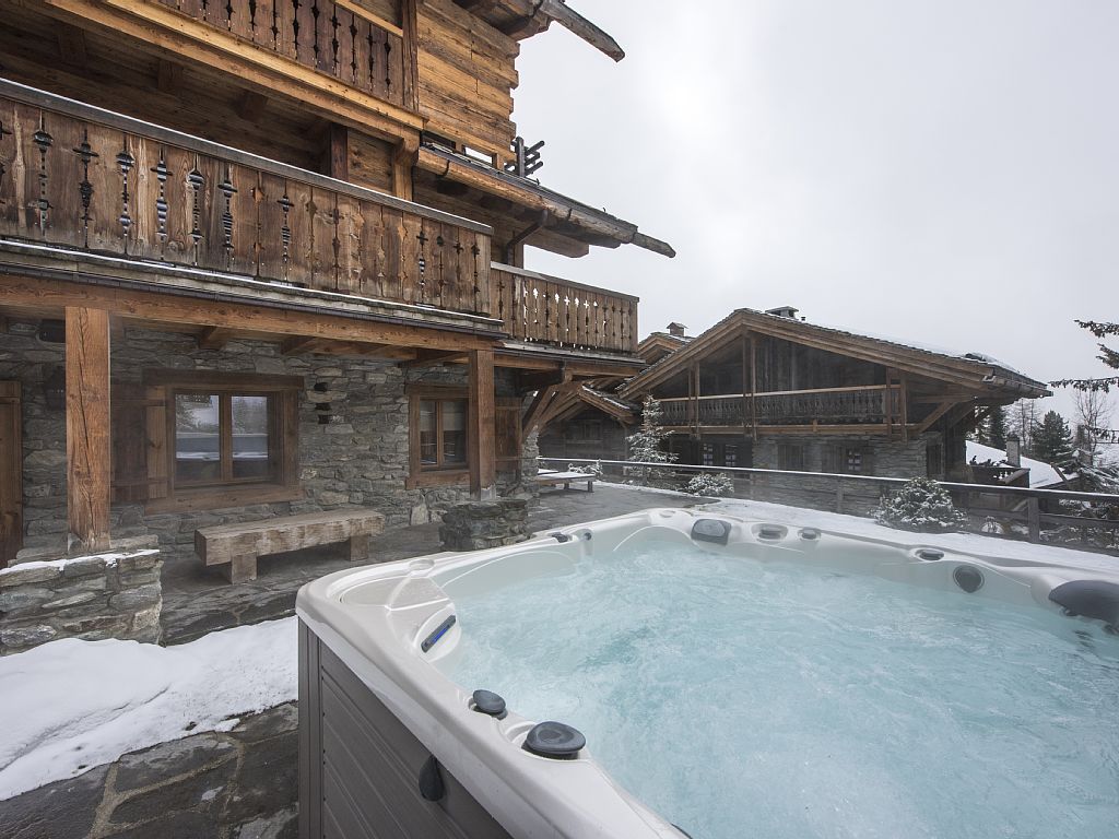 Spa: This elegant private SPA in white granite is wonderful way to relax after day on the slopes. Equipped with a steam room, plunge pool, shower and fridge, the glorious four poster bed can also serve as an extra double bed. The spa is stocked with plastic glasses for wine and champagne as well as washing machine, dryer and linen cupboard.