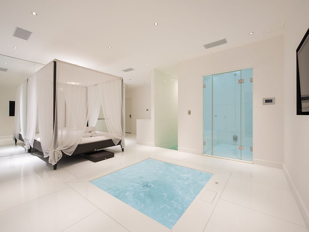 Main Bedroom: The main bedroom boasts a king size bed decorated with French canopy in white linen with ensuite bathroom. All the bedrooms are equipped with VIspring mattresses from Harrods and have Peter Reed 100% cotton linens.