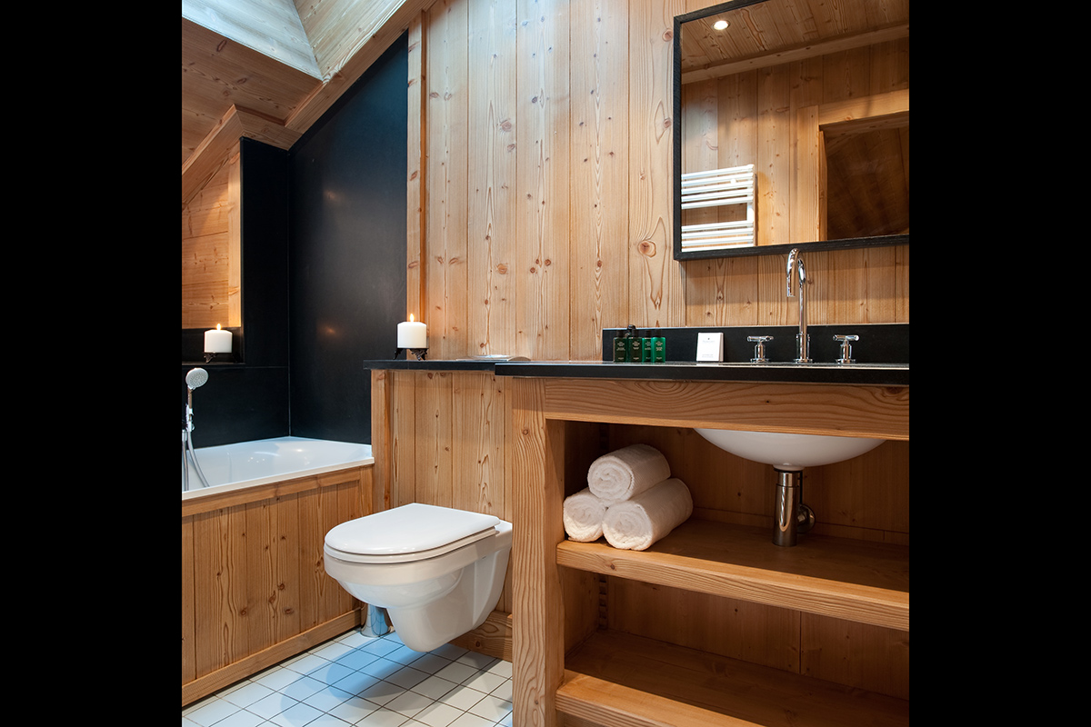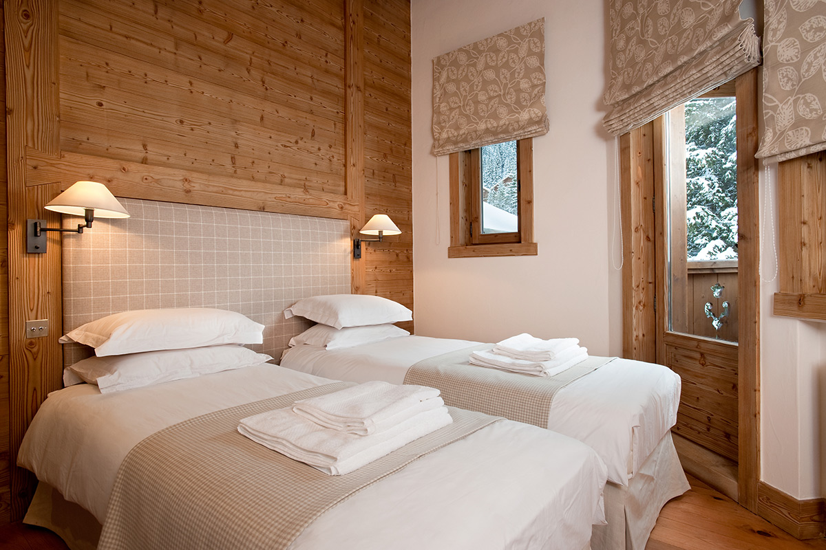 Chalet Trois Ours can comfortably sleep up to twelve guests across its five bedrooms with en-suite bathrooms stocked with luxury toiletries as well as bath robes and slippers. Four of the bedrooms have balconies or direct access to a terrace with awe-inspiring mountain views. Each room contains two twin size beds which can come together to form a king, with the exception of the children’s room that has a twin bunk bed.