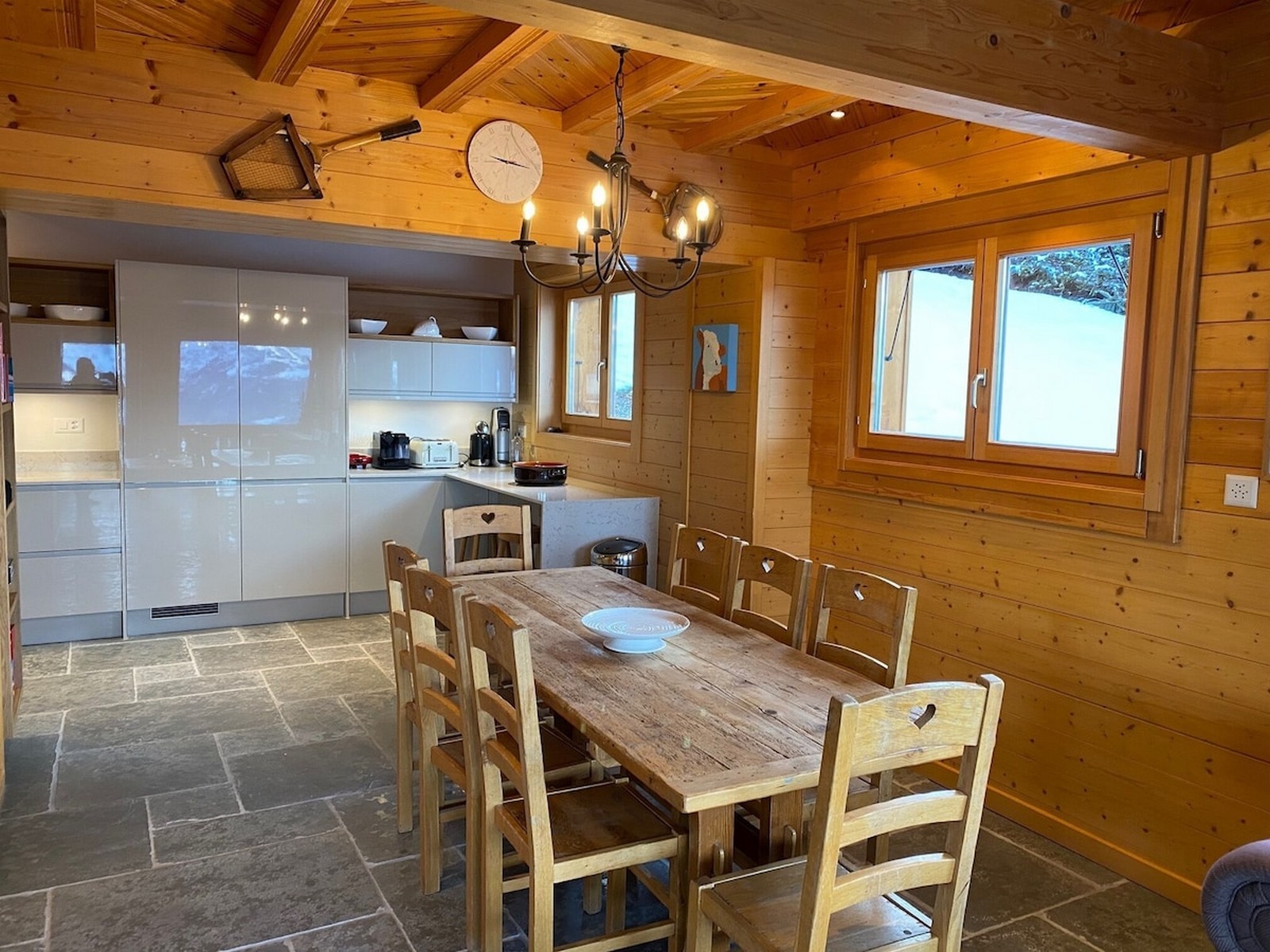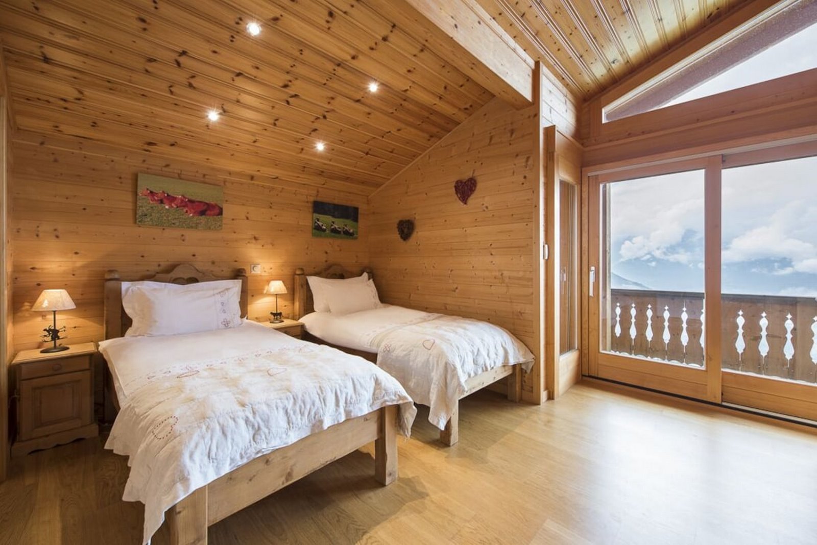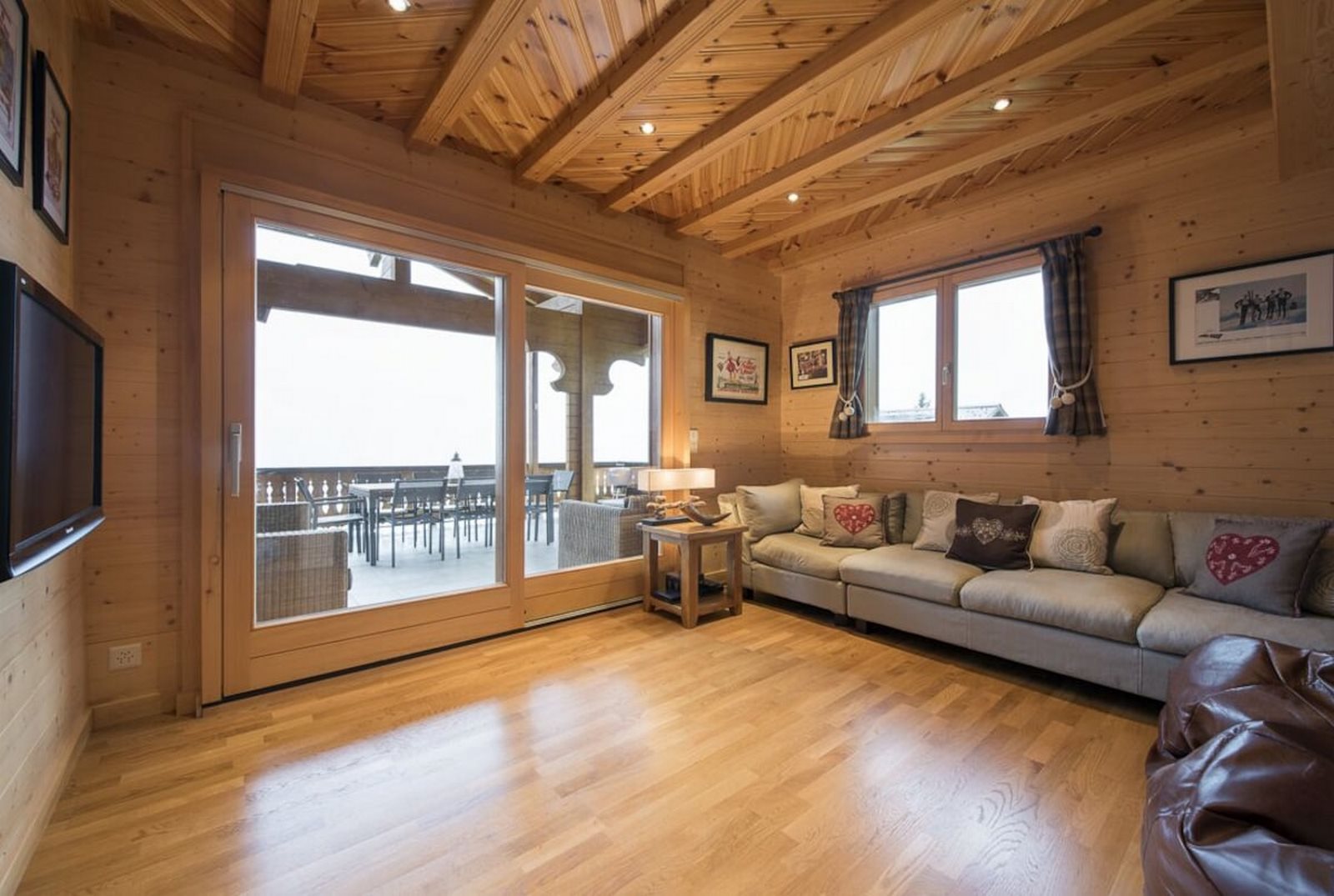Les Hirondelles is a luxury self-catering chalet completed in 2009. It sits on the south facing slopes with stunning mountain views. Direct piste access 50m away. A 5 min. drive to local amenities. The chalet is set out over 3 floors and sleeps up to 10 people. Three double bedrooms, two twin bedrooms, four bathrooms, TV room, games room and well equipped kitchen. It combines both contemporary and antique alpine furnishings. Spa has a hot tub and sauna/steam-room with a panoramic view of the mountains. Linen, towels and end of stay professional cleaning included. Option of daily cleaning and catering.