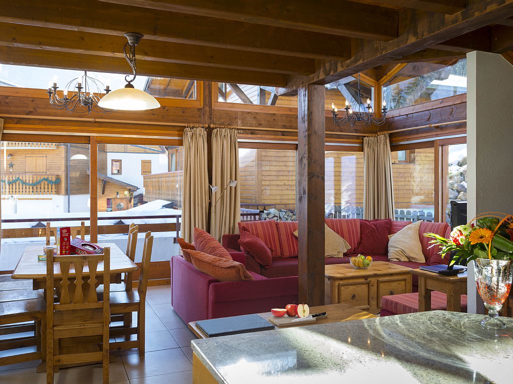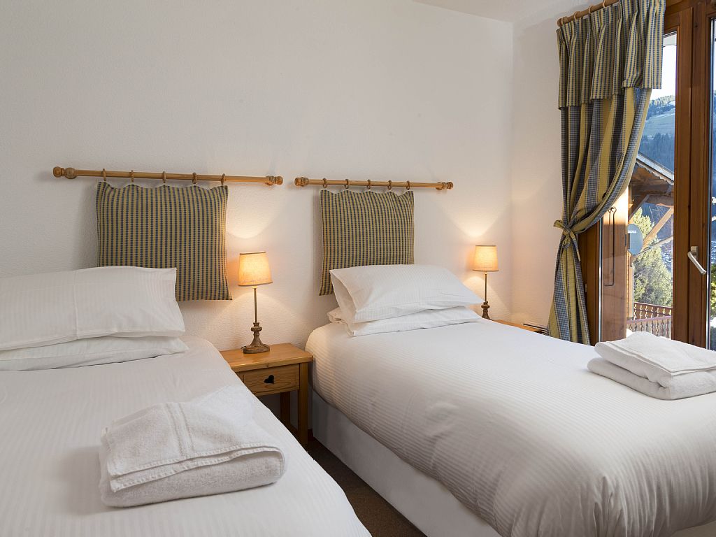 Ideal for a group of families or friends, the chalet accommodates 10-12 people in 5 bedrooms plus a mezzanine area, each with private bathroom. 4 bedrooms have zip/link beds to make either a twin or king-sized double, with the remaining room having a double bed.