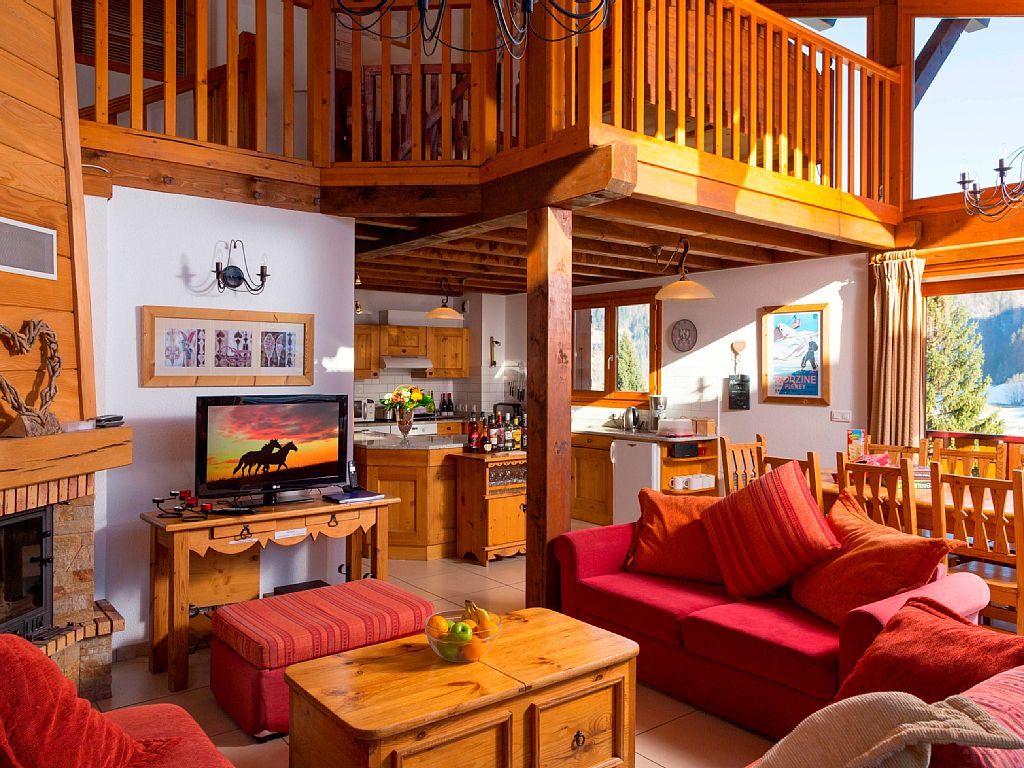 Opening onto a balcony and sun terrace, the fabulous open-plan kitchen, lounge and dining area with TV, DVD, wireless music system and log fire lends itself perfectly to groups wishing to spend quality time together for a dream holiday in the mountains. The mezzanine can be used as a separate small living space, TV room, children’s play area or an extra bedroom to increase capacity to 12 people if required.