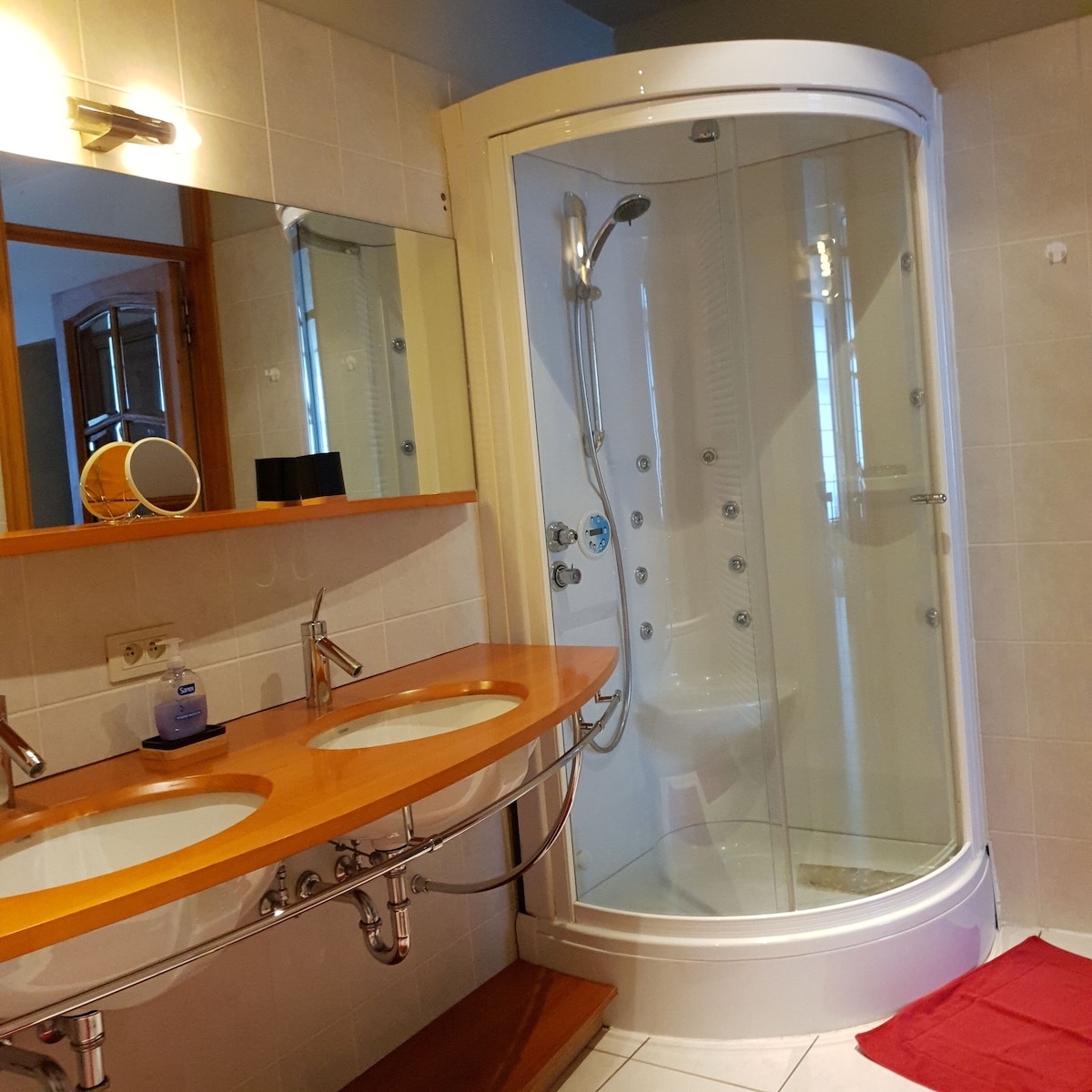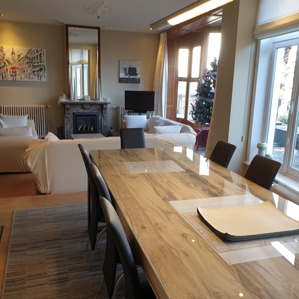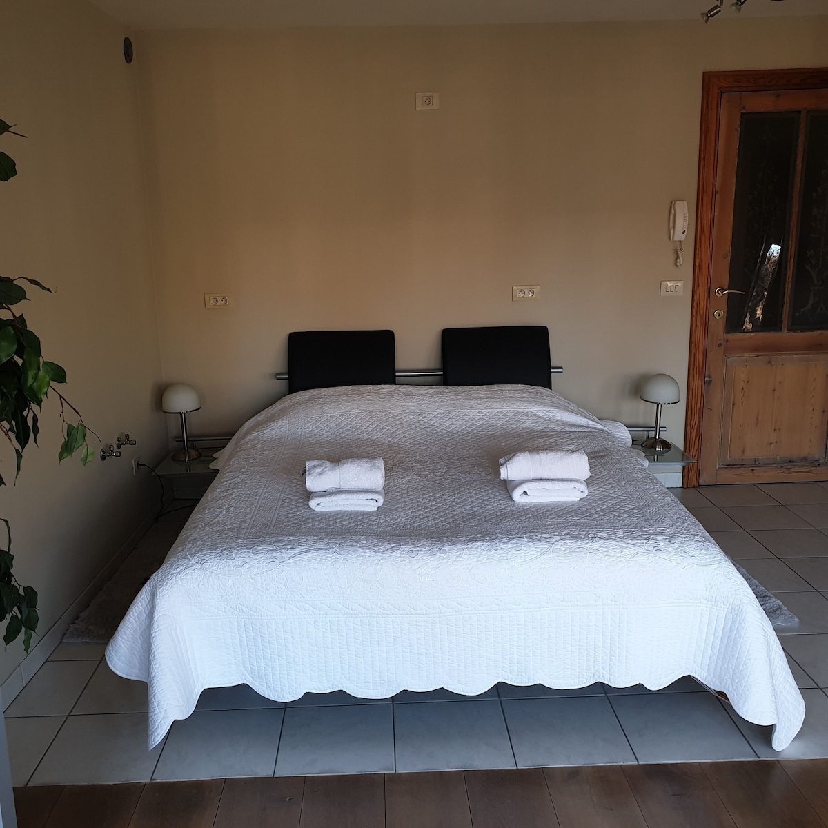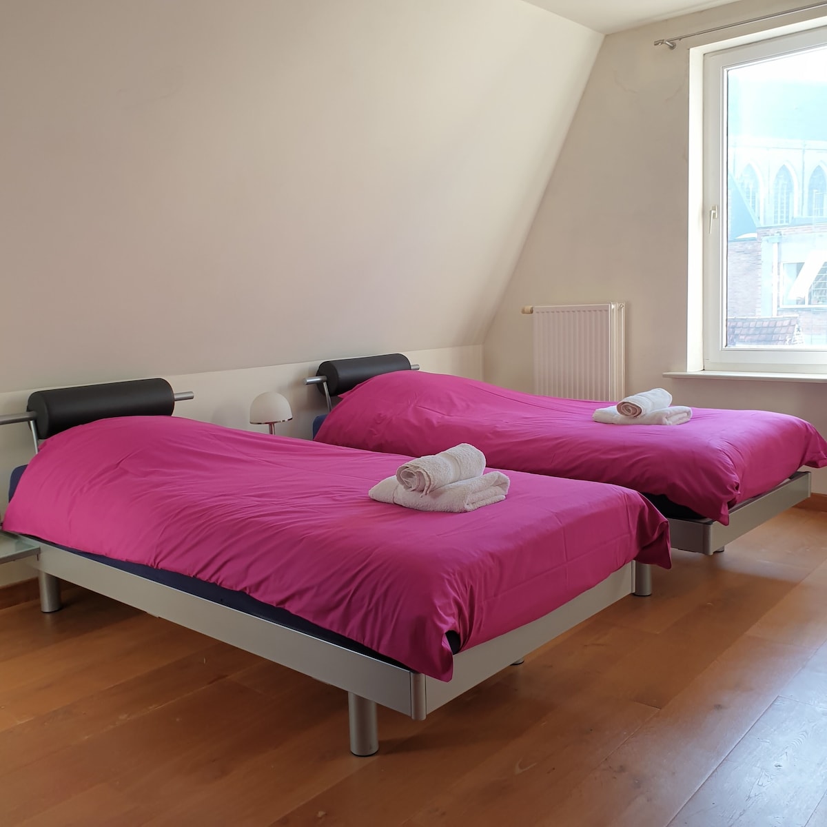 3rd floor (duplex) 25 m2, two bedrooms each with 2 single beds and with unique and fantastic panoramic view over Bruges, with Belfry, 2 churches and the cathedral.