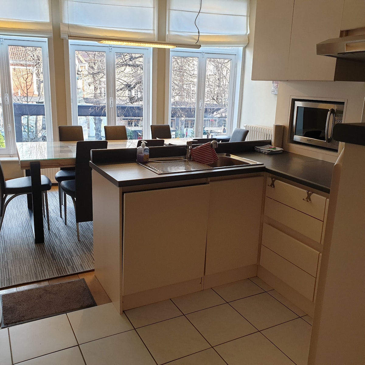 1st floor: 100 m2 furnished, shaded terrace, fitted kitchen, lounge, bedroom with double bed, bathroom and shower cubicle, with separate toilet with panoramic view through a 19th century exterior extension called bay window