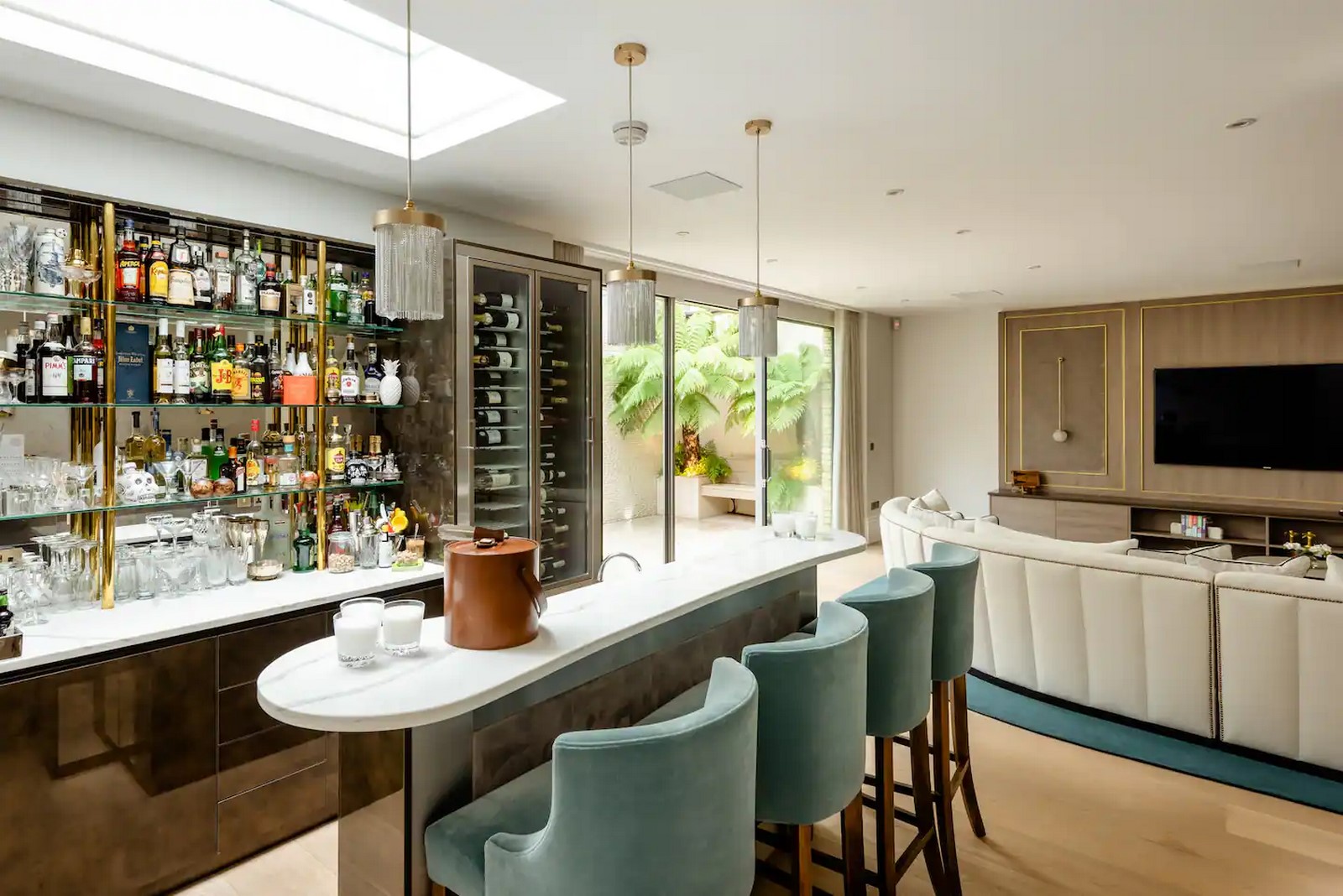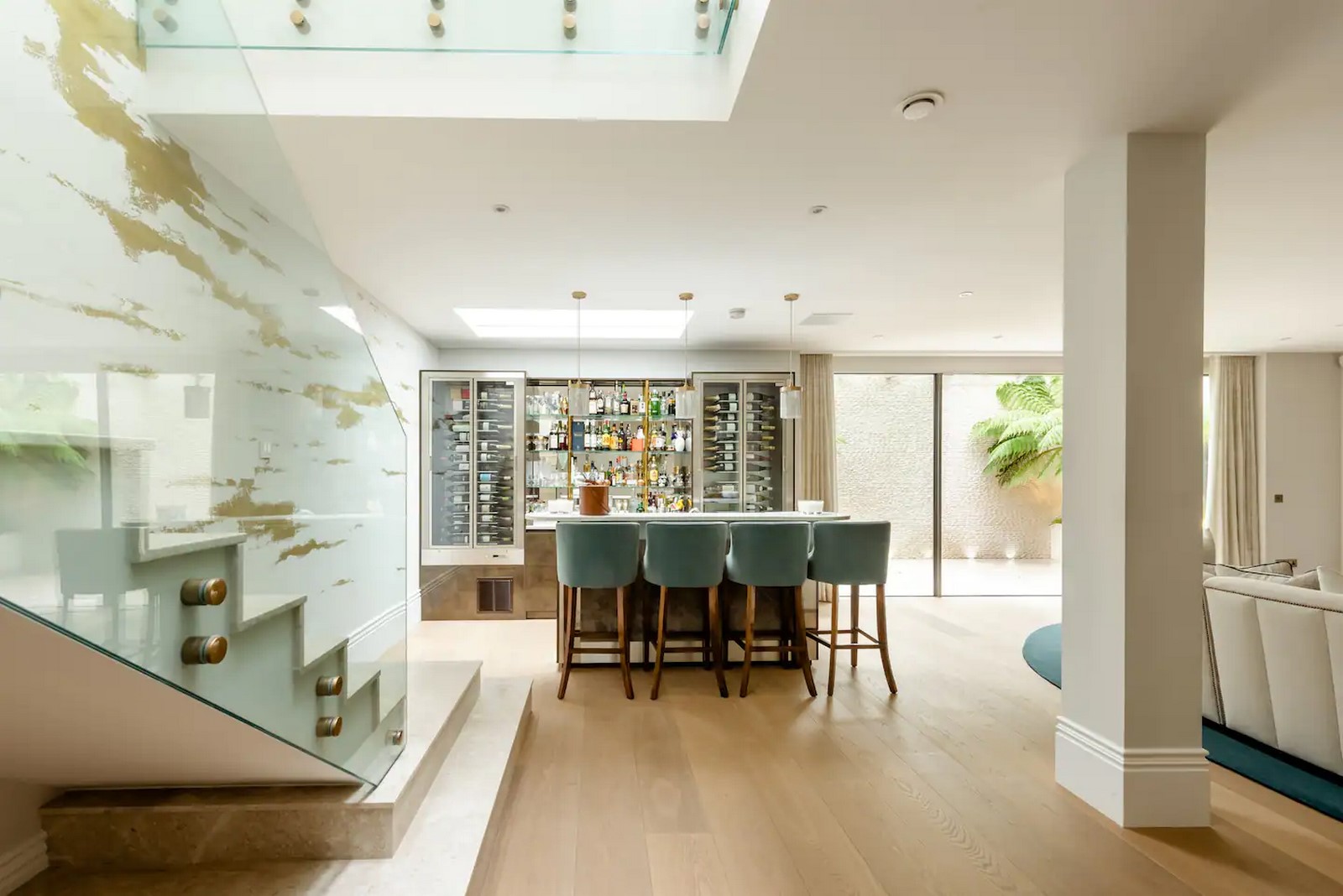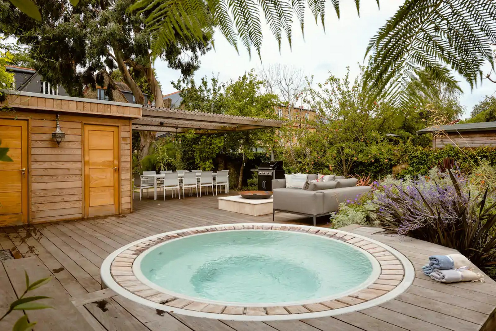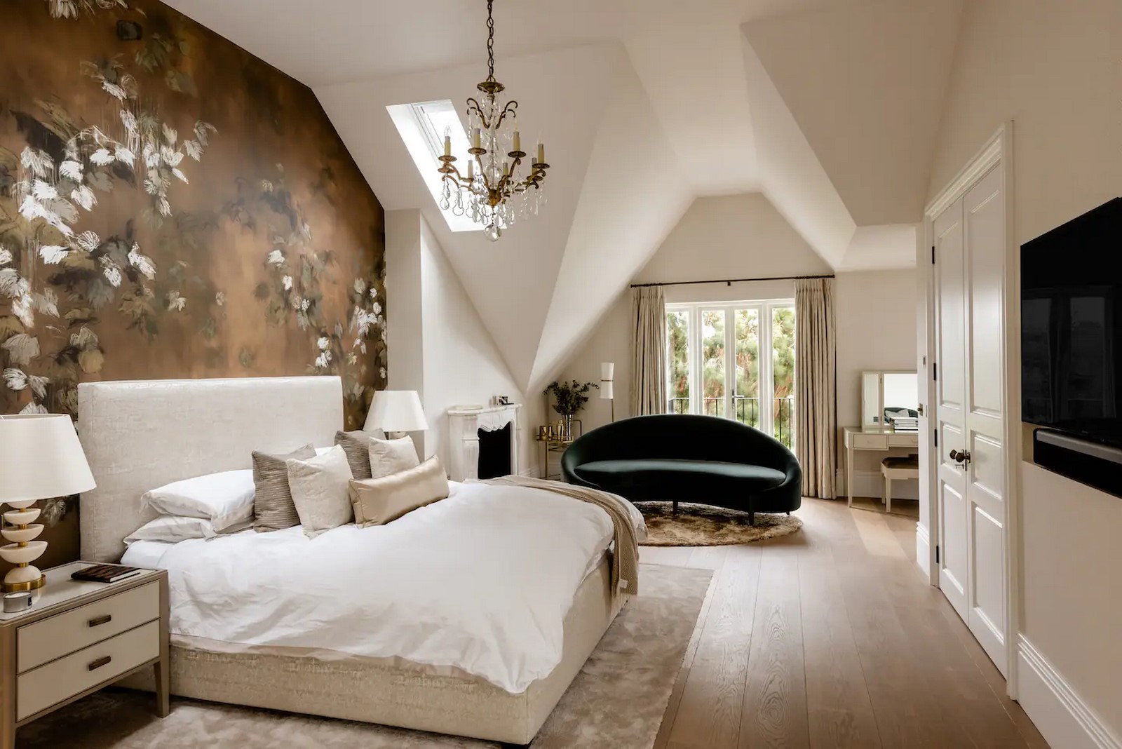 This semi-detached house in the Greater London Area feels like a tranquil getaway from the busy city life, but is still within reach. It’s the epitome of elegance; herringbone flooring in the living room lays the base for luxurious gold-tone metals, dripping chandeliers, and a butterscotch color palette. Hail a cab and set off to see the sights, or enjoy a peaceful soak in the hidden hot tub.