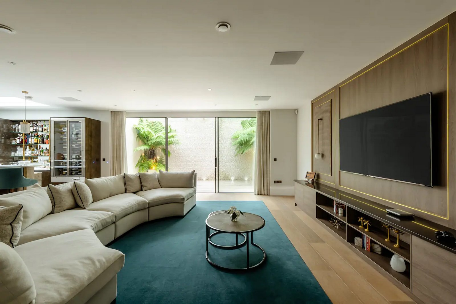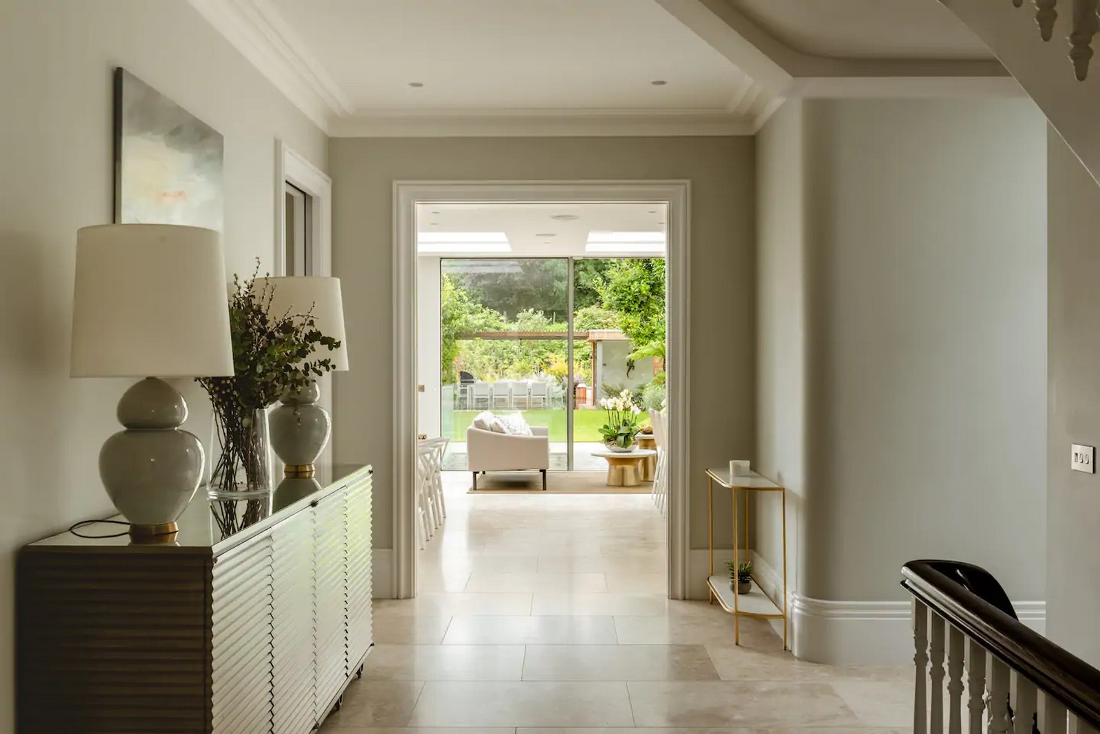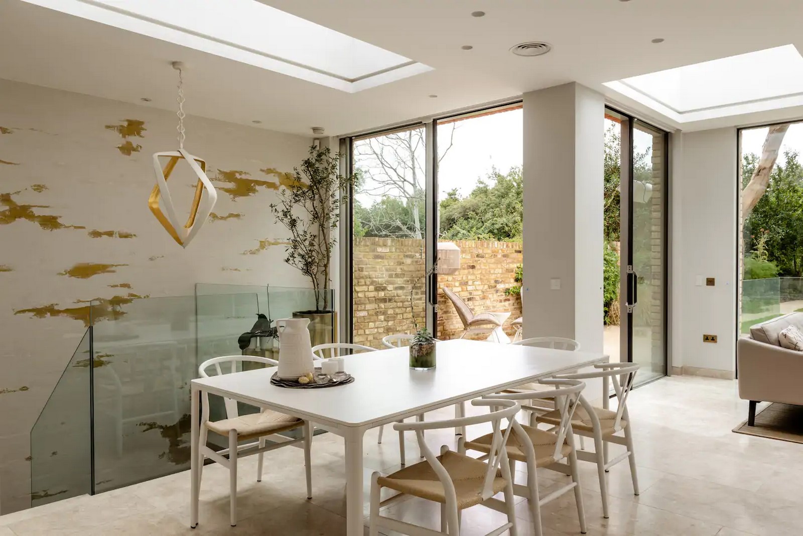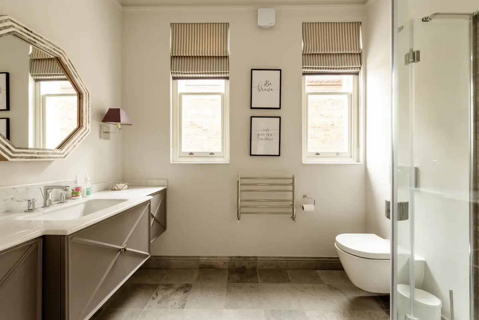 This semi-detached house in the Greater London Area feels like a tranquil getaway from the busy city life, but is still within reach. It’s the epitome of elegance; herringbone flooring in the living room lays the base for luxurious gold-tone metals, dripping chandeliers, and a butterscotch color palette. Hail a cab and set off to see the sights, or enjoy a peaceful soak in the hidden hot tub.