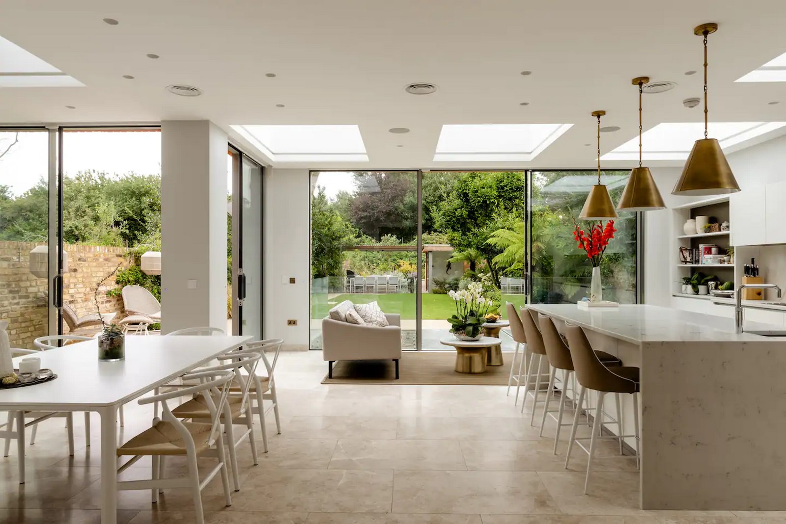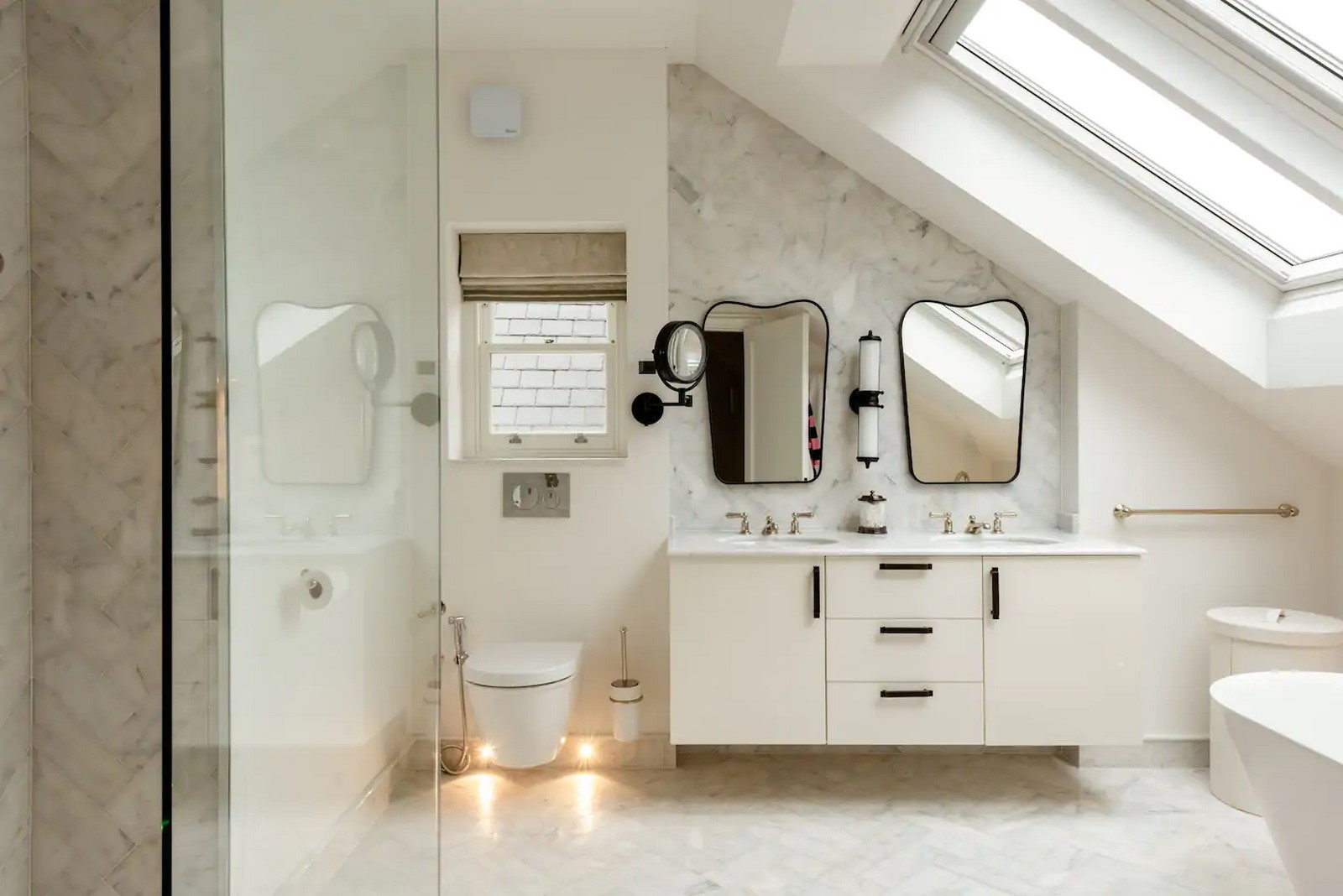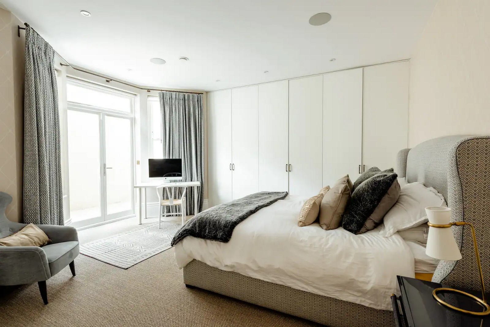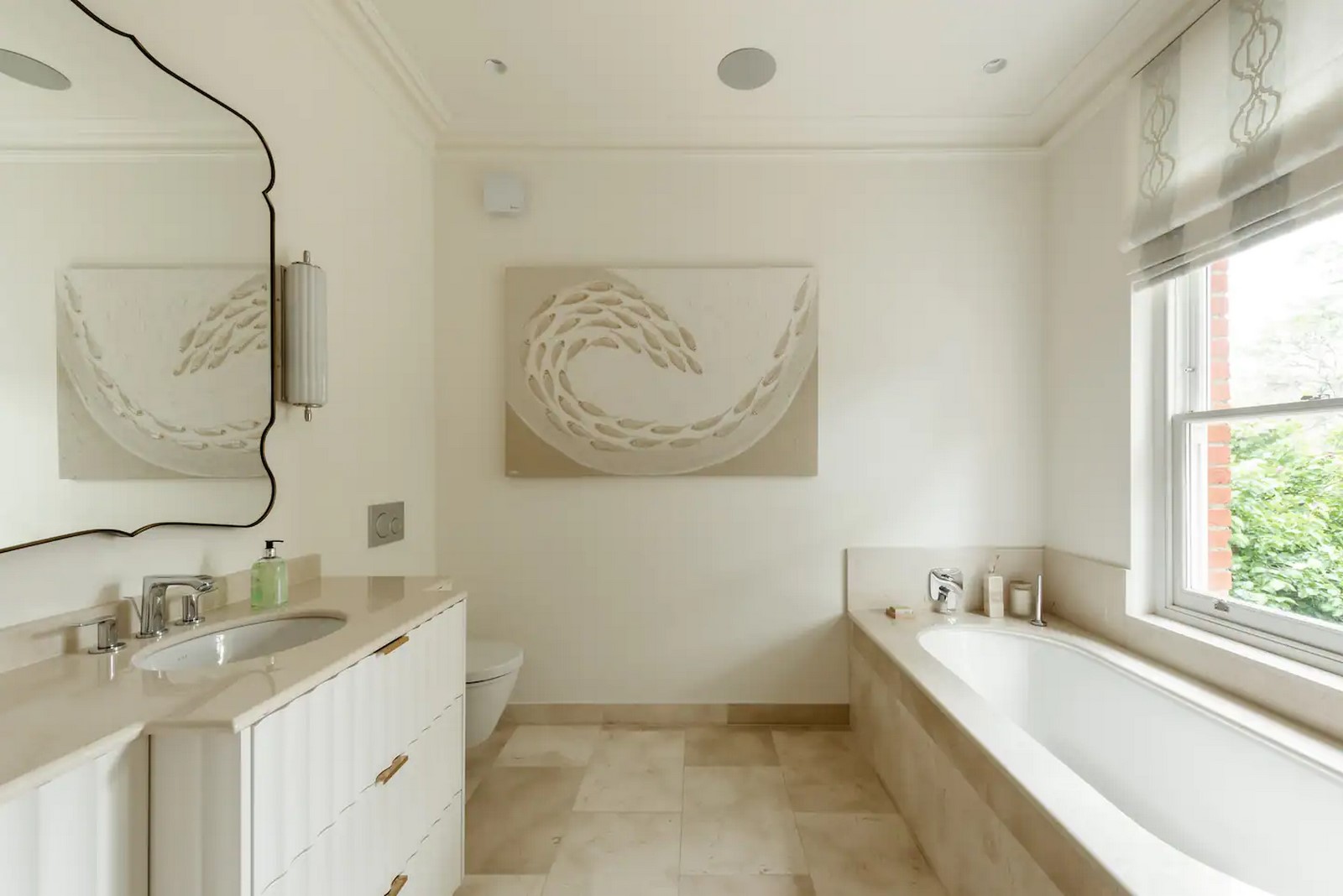 This semi-detached house in the Greater London Area feels like a tranquil getaway from the busy city life, but is still within reach. It’s the epitome of elegance; herringbone flooring in the living room lays the base for luxurious gold-tone metals, dripping chandeliers, and a butterscotch color palette. Hail a cab and set off to see the sights, or enjoy a peaceful soak in the hidden hot tub.
