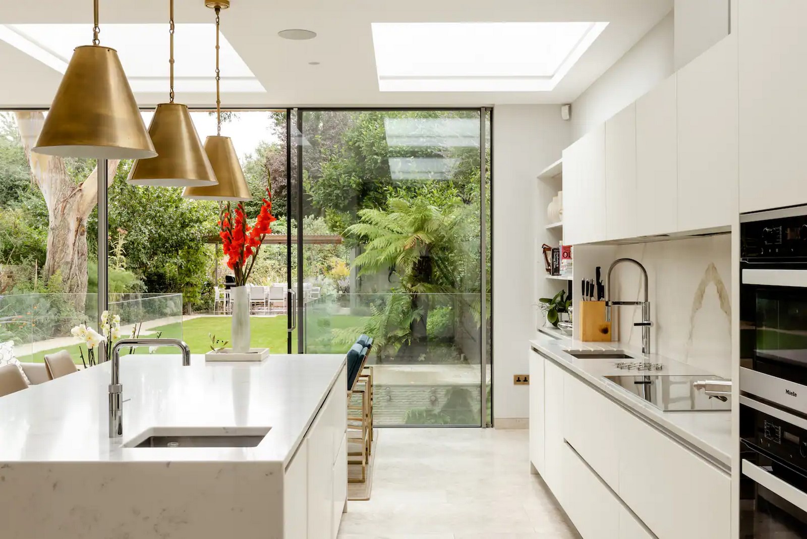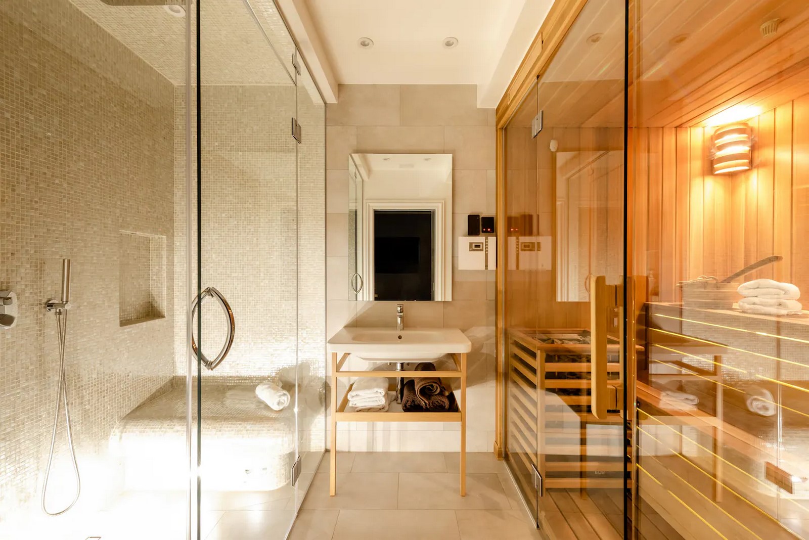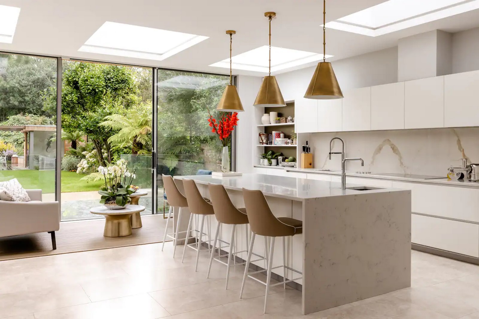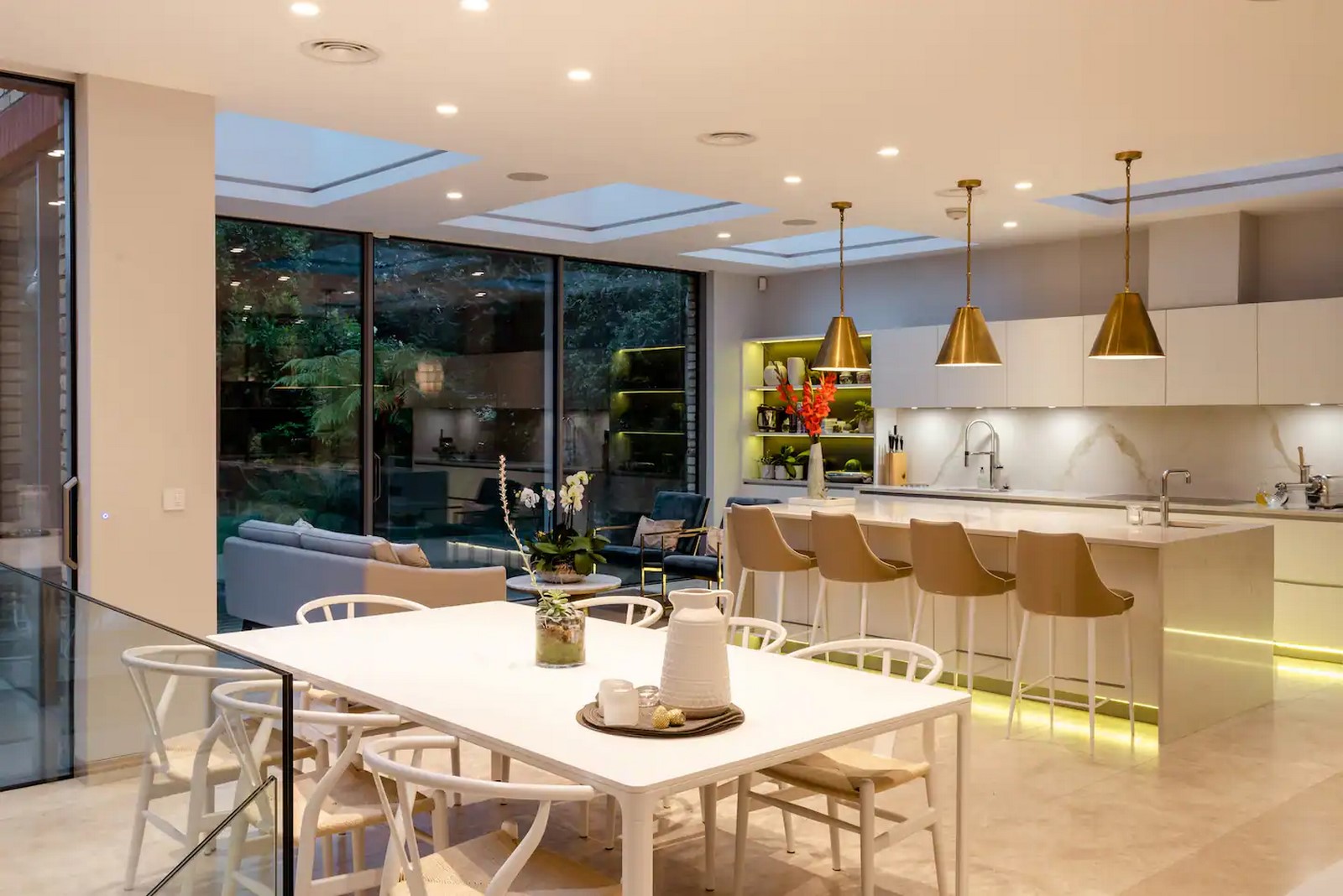 This semi-detached house in the Greater London Area feels like a tranquil getaway from the busy city life, but is still within reach. It’s the epitome of elegance; herringbone flooring in the living room lays the base for luxurious gold-tone metals, dripping chandeliers, and a butterscotch color palette. Hail a cab and set off to see the sights, or enjoy a peaceful soak in the hidden hot tub.